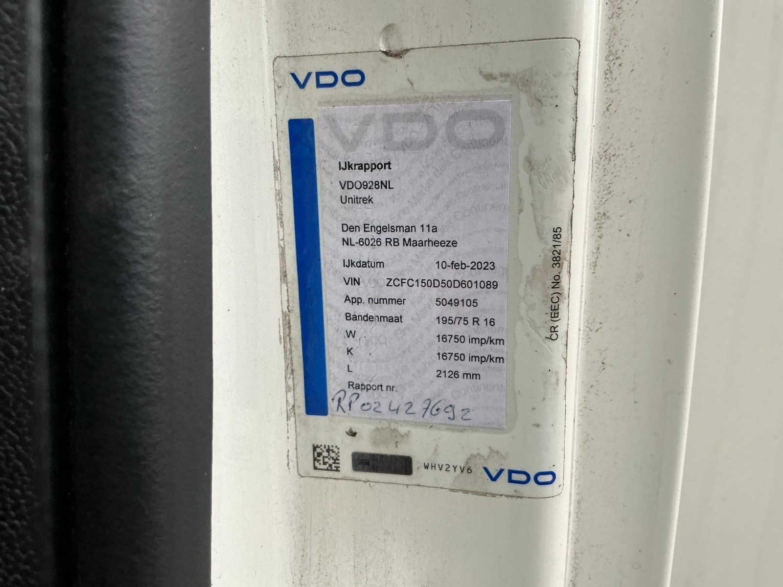 Let op; accu slecht, dient opgestart te worden, apk is verlopen, elektrische ramen, elektrische spiegels, centrale vergrendeling, cruise control, radio/cd speler, digitale tachograaf, camera voor en achter, 360’ camera, lucht geveerd, lucht geremd, dhollandia laadklep 750kg, laadbak 6100x2300x2200mm ledverlichting in bak, afstandsbediening voor laadklep, Kenteken: V-517-LS Merk: Iveco Type: Daily clickstar Model: 50-180 Bouwjaar: 2018 Chassisnummer: ZCFC150D50D601089 Afgelezen kilometerstand: 524812km Cilinderinhoud: 2998cc Vermogen (kW): 132kW Brandstof: diesel Datum eerste toelating: 2018-02-16 Datum eerste toelating (NL): 2018-02-16 APK vervaldatum: 2025-02-16 NAP status: Logisch Transmissie: Handgeschakeld Aantal zitplaatsen: 3 Kleur: niet van toepassing Nationaliteit documenten: Nederland Bruto BPM (NL): 18389 Rest BPM: 0 Aantal sleutels: 2 Ledig gewicht: 2105kg Laadvermogen: 1395kg Vermogen (pk): 179 Aantal cilinders: 4 Velgmaat: 195/75R16 Carrosserie: opleggertrekker Emissieklasse: 6