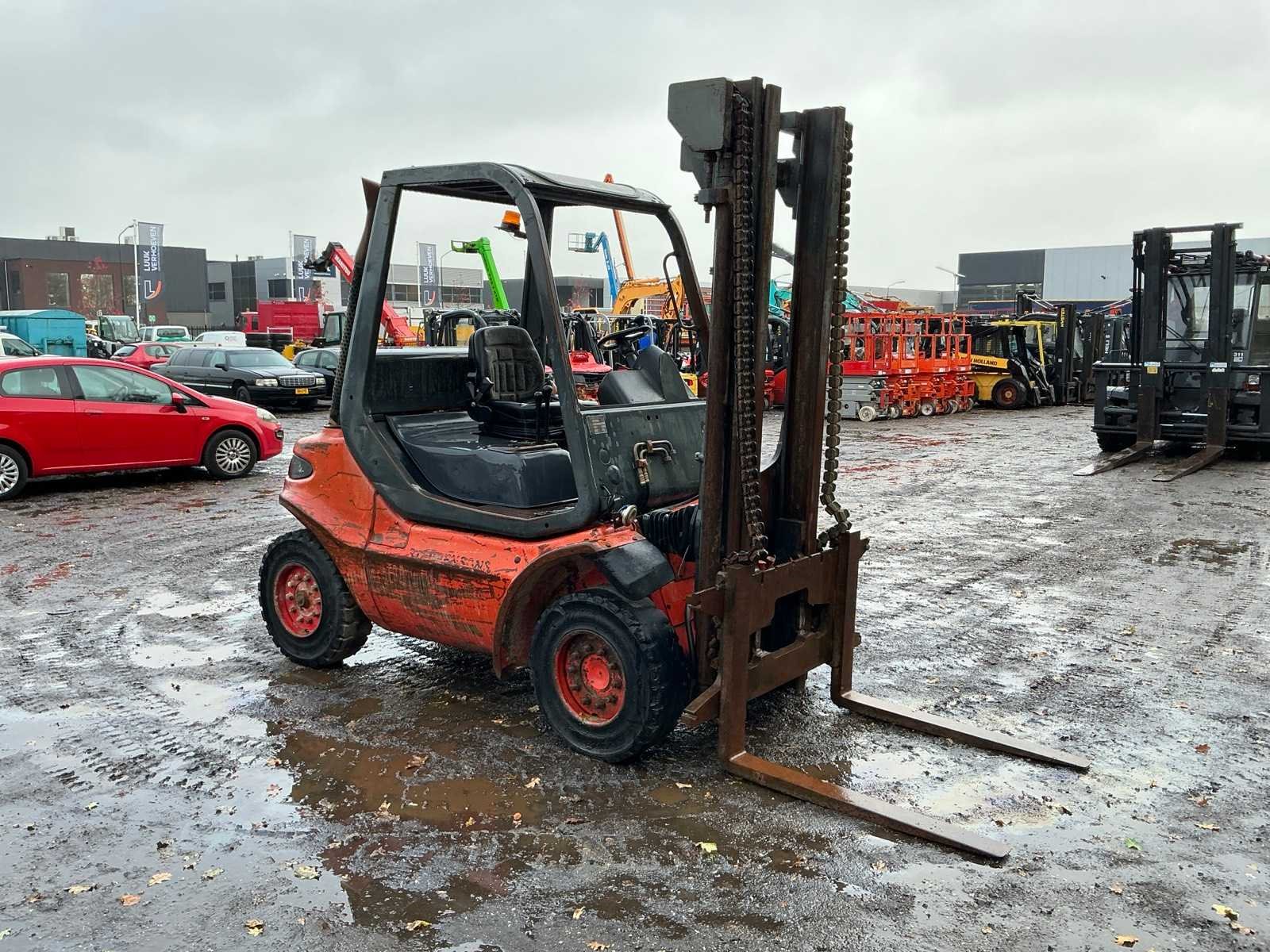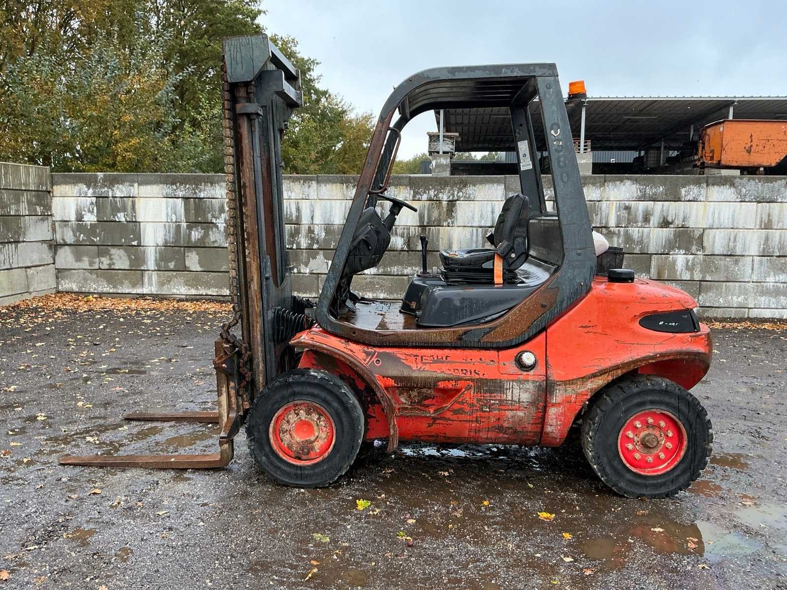 Let op; motor start met starthulp maar maakt tikkend geluid, Lepels 1000mm, lepelbord 1400mm, triplex mast, 3e functie voorbereid, trekoog achter, Merk: Linde Type: H40D Bouwjaar: 1994 Serienummer: 352E11017540 Brandstof: Diesel Mast: Triple Soort band: Volrubber banden Aantal wielen: 4 Afgelezen urenstand: 14648 Triple mast: true Eigen gewicht: 6100kg Hefvermogen: 4000kg Lepellengte: 1000mm Minimale doorrijhoogte: 2650mm Totale afmeting L: 3950mm Totale afmeting Breedte: 1400mm Totale afmeting Hoogte: 2600mm