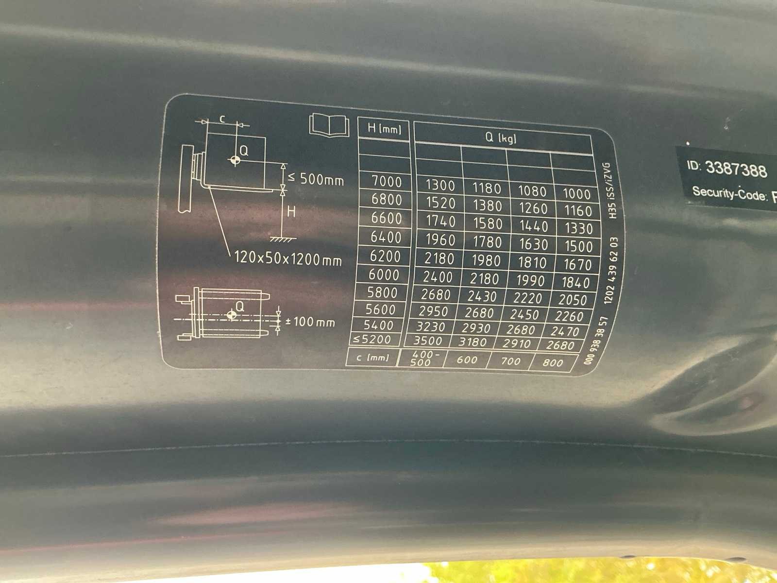 Let op, accu slecht, dient opgestart te worden, Lepels 1000mm, lepelbord 1150mm, duplex mast, Side shift, lepel spreider, lucht geveerde stoel, stoel verwarming, trekoog achter, led werkverlichting, max hefhoogte 5200mm, max hefvermogen 3500kg Merk: Linde Type: H35T-01 evo Bouwjaar: 2020 Serienummer: H21202X00377 Brandstof: LPG Mast: Duplex Soort band: Volrubber banden Aantal wielen: 4 Afgelezen urenstand: 8910 Eigen gewicht: 5488kg Hefvermogen: 3500kg Lepellengte: 1000mm Max. hefhoogte: 5200mm Vol rubber banden: true Minimale doorrijhoogte: 3300mm Totale afmeting L: 3850mm Totale afmeting Breedte: 1250mm Totale afmeting Hoogte: 3260mm
