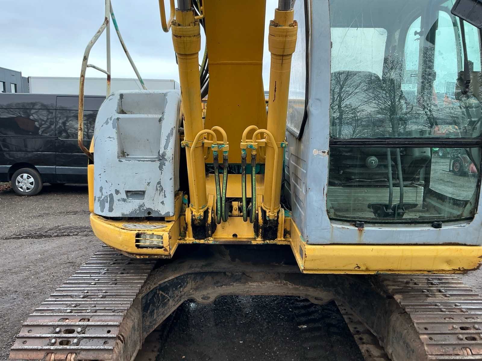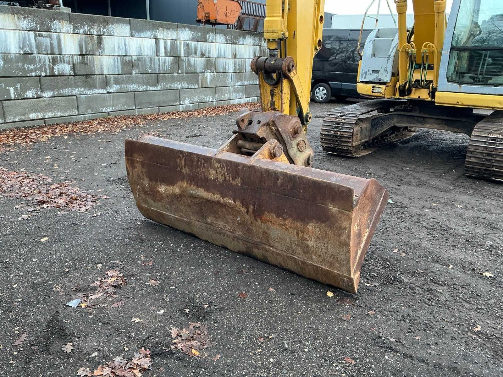 Slotenbak 2000mm, geith snelwissel, werkverlichting, stalen tracks, auto idle, verwarming, airco, radio, dakluik Merk: Kobelco Type: E115SR Bouwjaar: 2010 Serienummer: YV01P0957 Merk motor: Isuzu Motorvermogen (kW): 60kW Aantal cilinders: 4 Brandstof: Diesel Bedrijfsgewicht: 11800kg Gieklengte: 2900mm Met graafbak: true Graafbak afm. b: 2000mm Rups breedte: 500mm Cabine: true Afgelezen urenstand: 8116 Eigen gewicht: 11800kg Totale afmeting L: 9000mm Totale afmeting Breedte: 2500mm Totale afmeting Hoogte: 2700mm