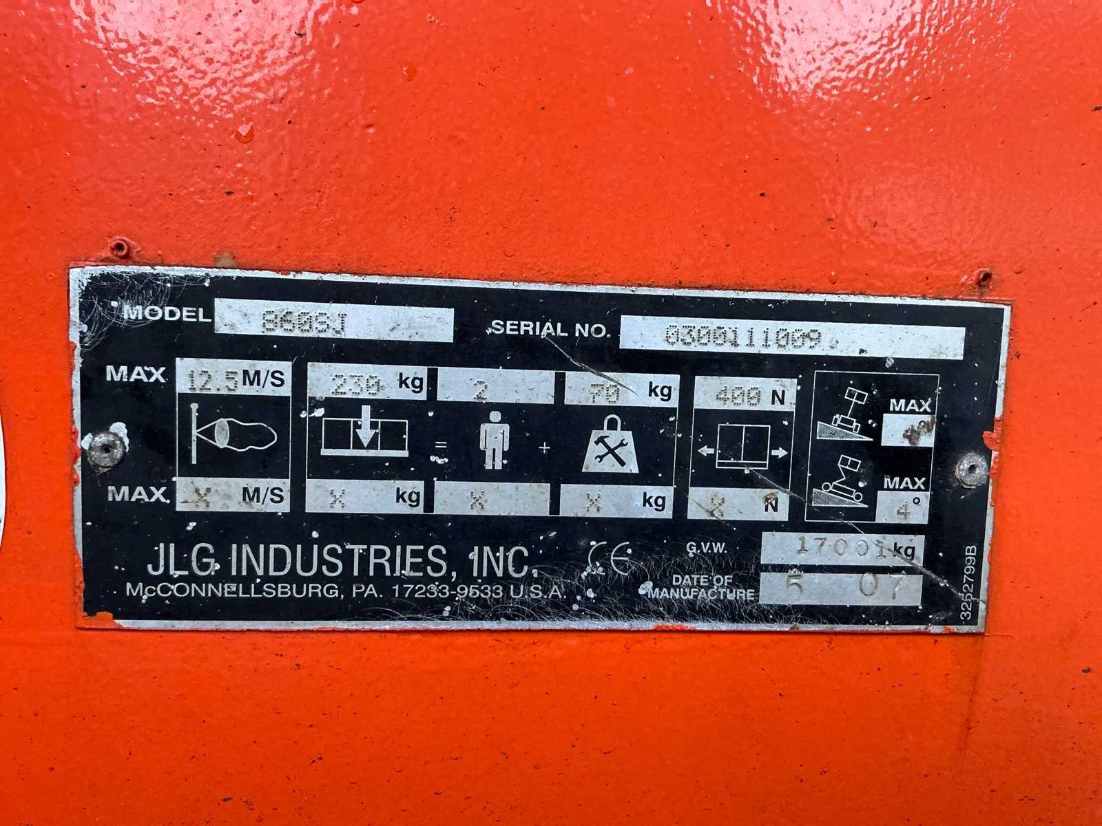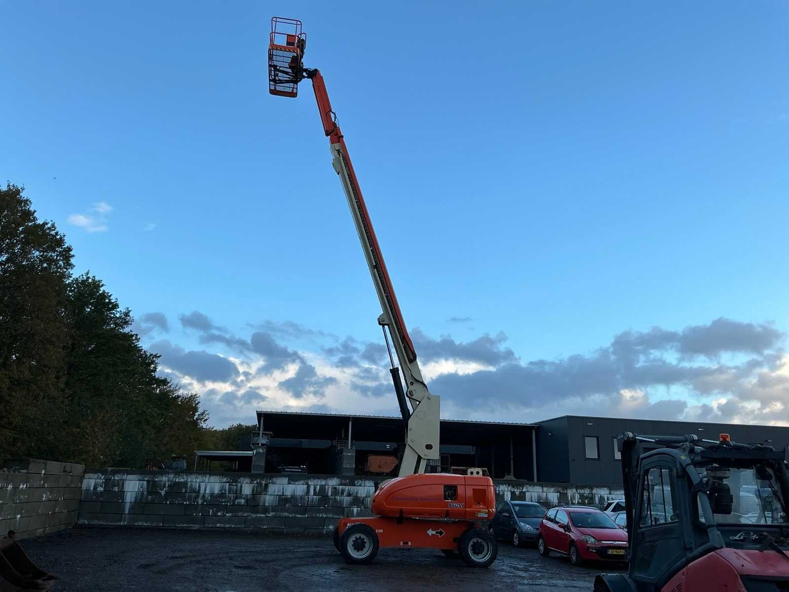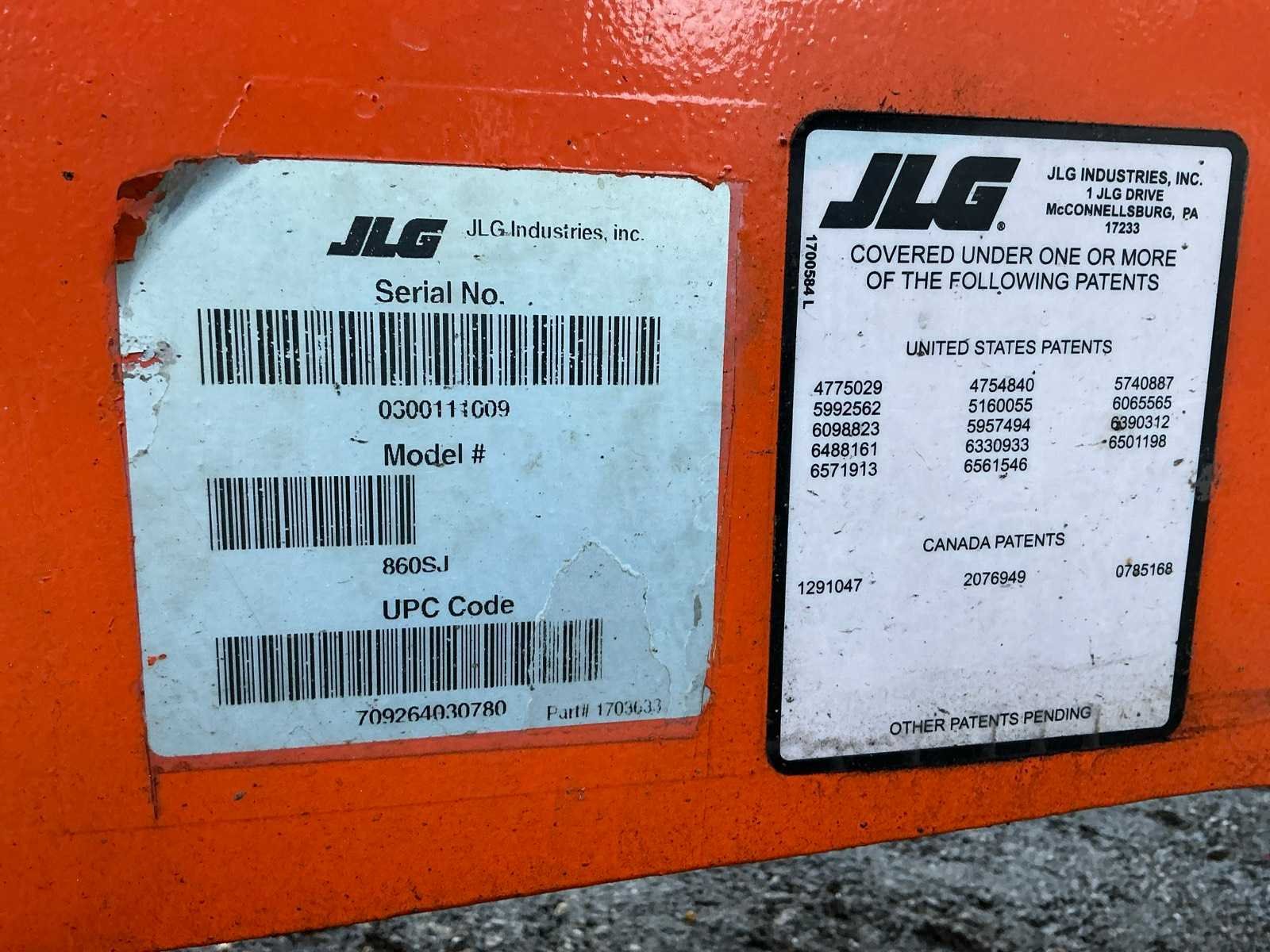 Merk: JLG Type: 860SJ Bouwjaar: 2007 Serienummer: 0300111009 Diesel: true Motorvermogen (kW): 43kW Telescoop hoogwerker: true Werkhoogte: 28200mm Horizontale rijkwijdte: 22860mm Platform capaciteit: 340kg Afgelezen urenstand: 4360 Eigen gewicht: 16710kg