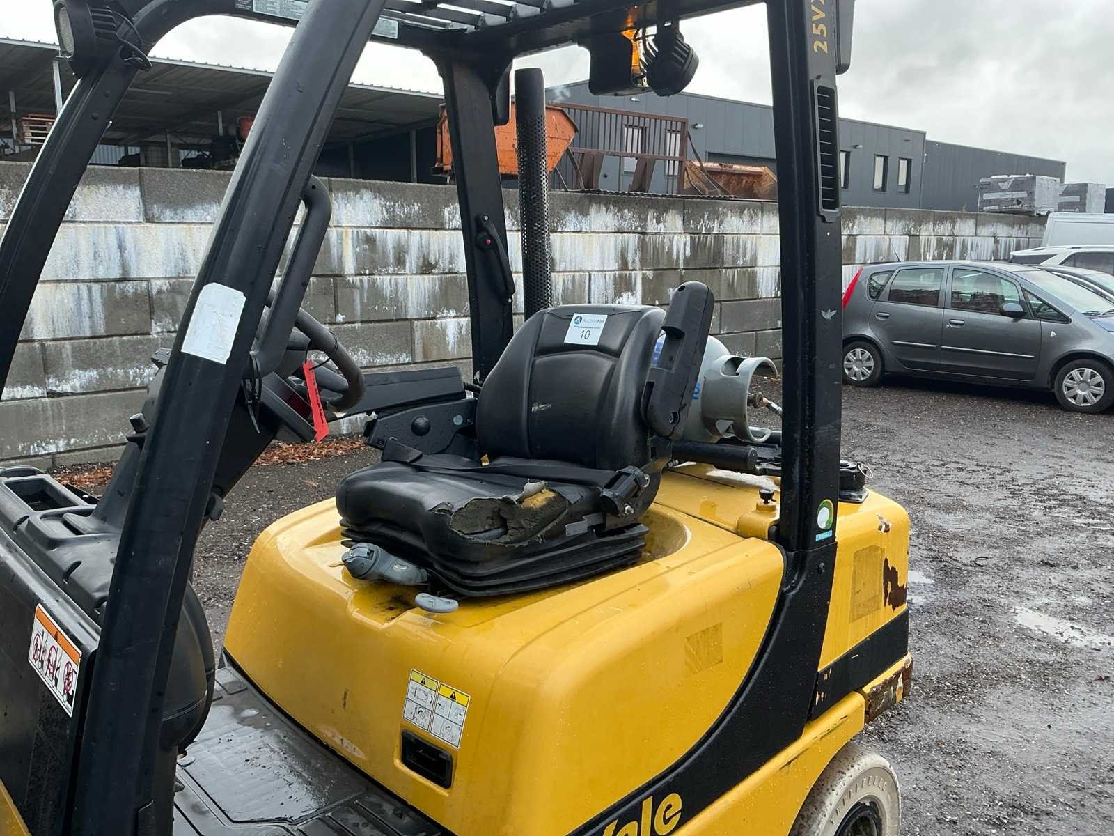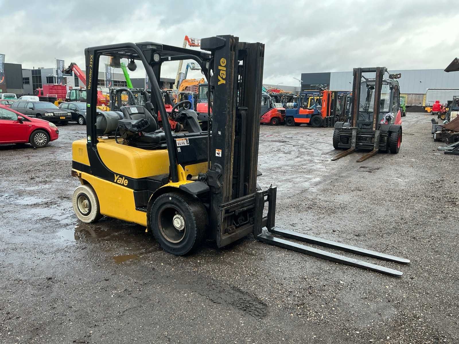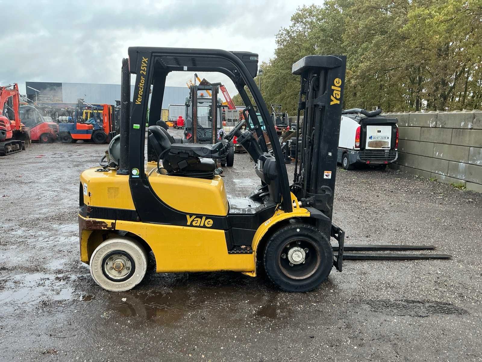 Lepels 1500mm, lepelbord 1070mm, Side shift, vorkenspreider voorbereid, triplex mast , led werkverlichting, trekoog met pin 35mm, max hefhoogte 4950mm, max hefvermogen 1600kg Merk: Yale Type: GLP25VXE2170 Bouwjaar: 2017 Serienummer: D875B03885R Brandstof: LPG Mast: Triple Soort band: Volrubber banden Aantal wielen: 4 Free-lift: true Side-shift: true Triple mast: true Eigen gewicht: 4810kg Hefvermogen: 1600kg Lepellengte: 1500mm Max. hefhoogte: 4950mm Vol rubber banden: true Minimale doorrijhoogte: 2300mm Totale afmeting L: 4100mm Totale afmeting Breedte: 1320mm Totale afmeting Hoogte: 2200mm