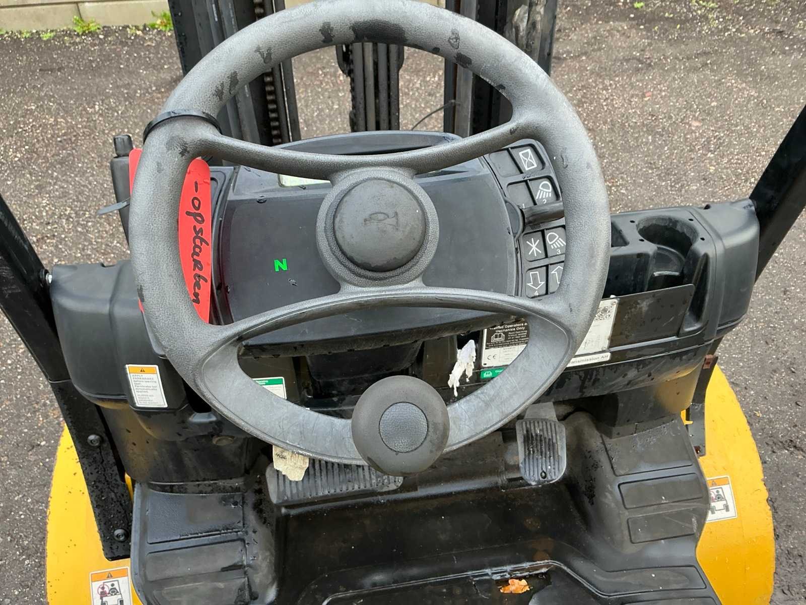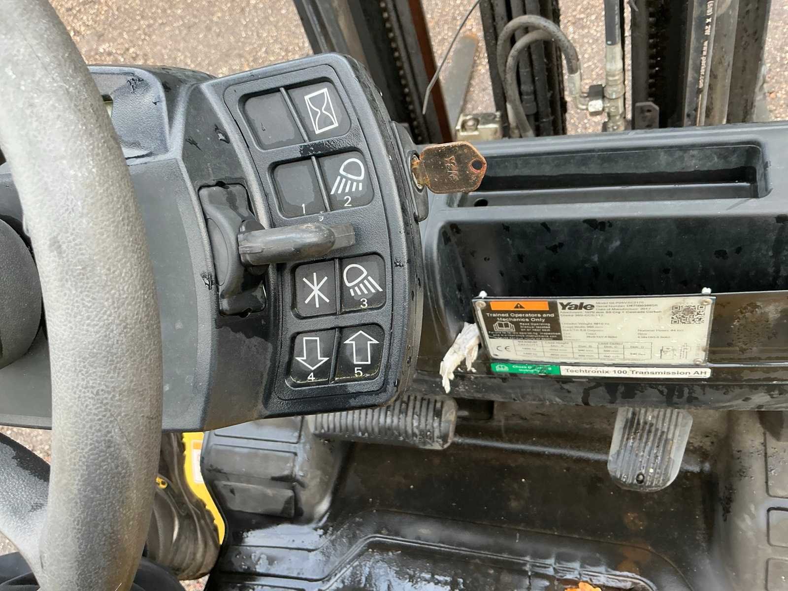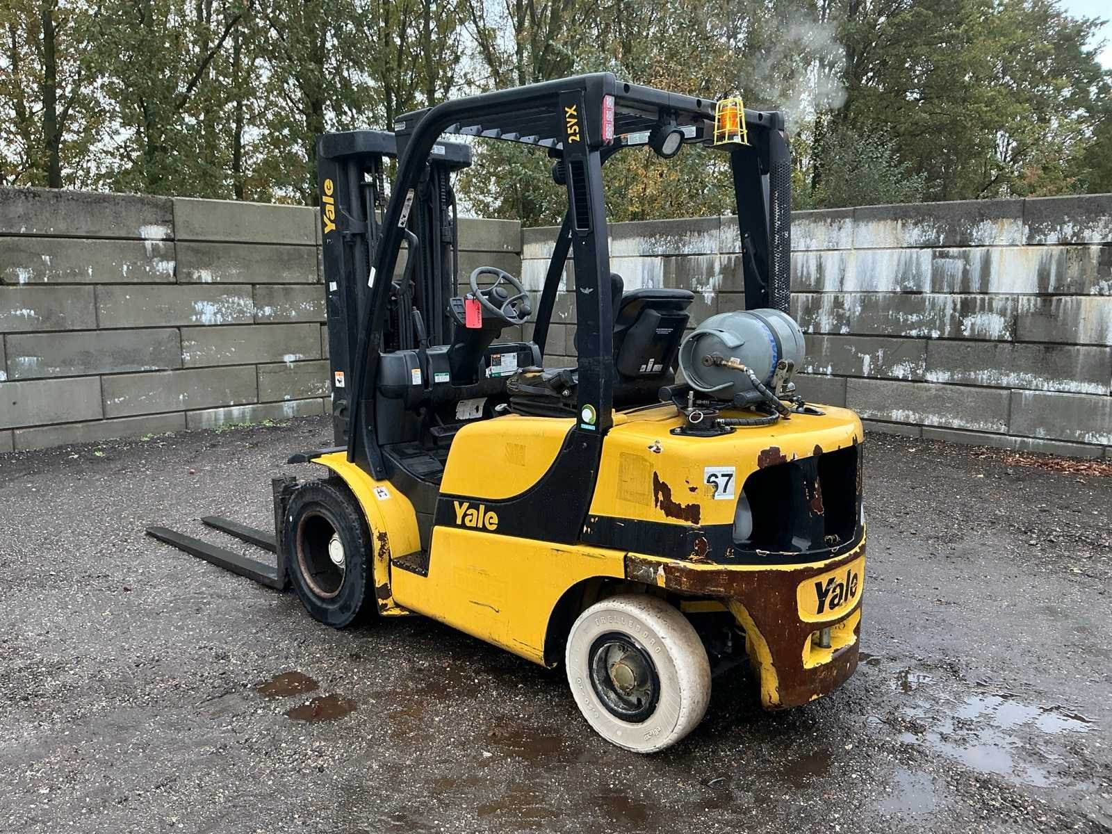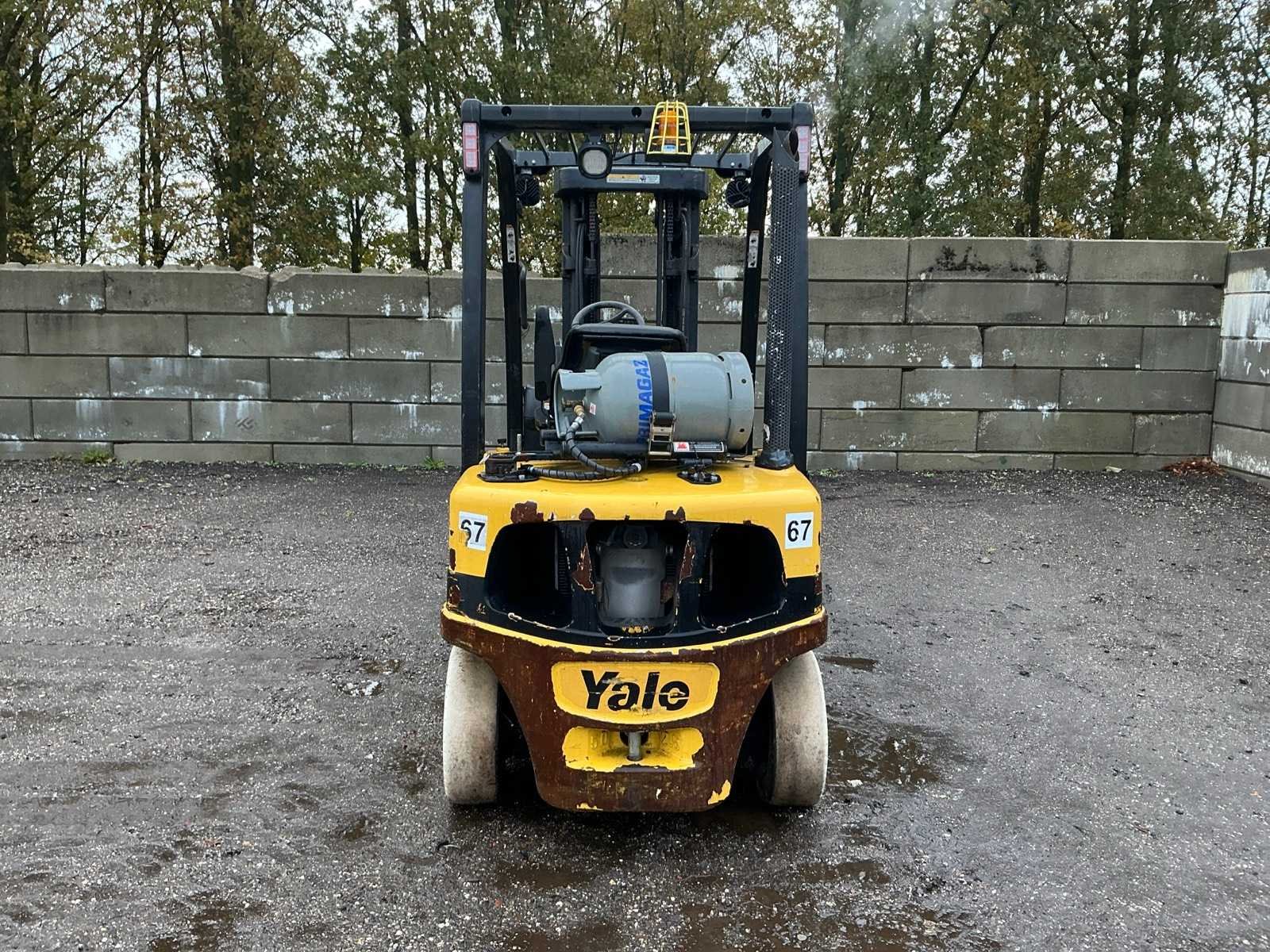 Lepels 1500mm, lepelbord 1070mm, Side shift, vorkenspreider voorbereid, triplex mast , led werkverlichting, trekoog met pin 35mm, max hefhoogte 4950mm, max hefvermogen 1600kg Merk: Yale Type: GLP25VXE2170 Bouwjaar: 2017 Serienummer: D875B03885R Brandstof: LPG Mast: Triple Soort band: Volrubber banden Aantal wielen: 4 Free-lift: true Side-shift: true Triple mast: true Eigen gewicht: 4810kg Hefvermogen: 1600kg Lepellengte: 1500mm Max. hefhoogte: 4950mm Vol rubber banden: true Minimale doorrijhoogte: 2300mm Totale afmeting L: 4100mm Totale afmeting Breedte: 1320mm Totale afmeting Hoogte: 2200mm