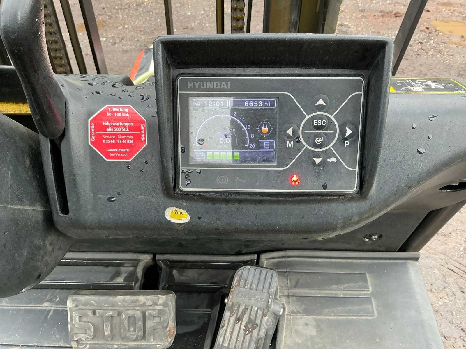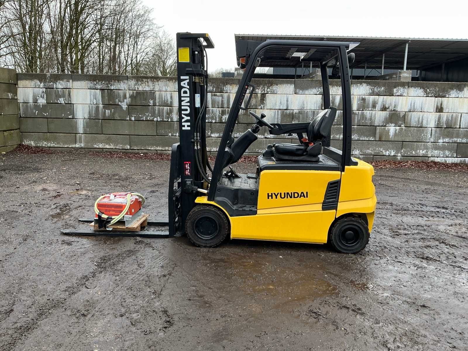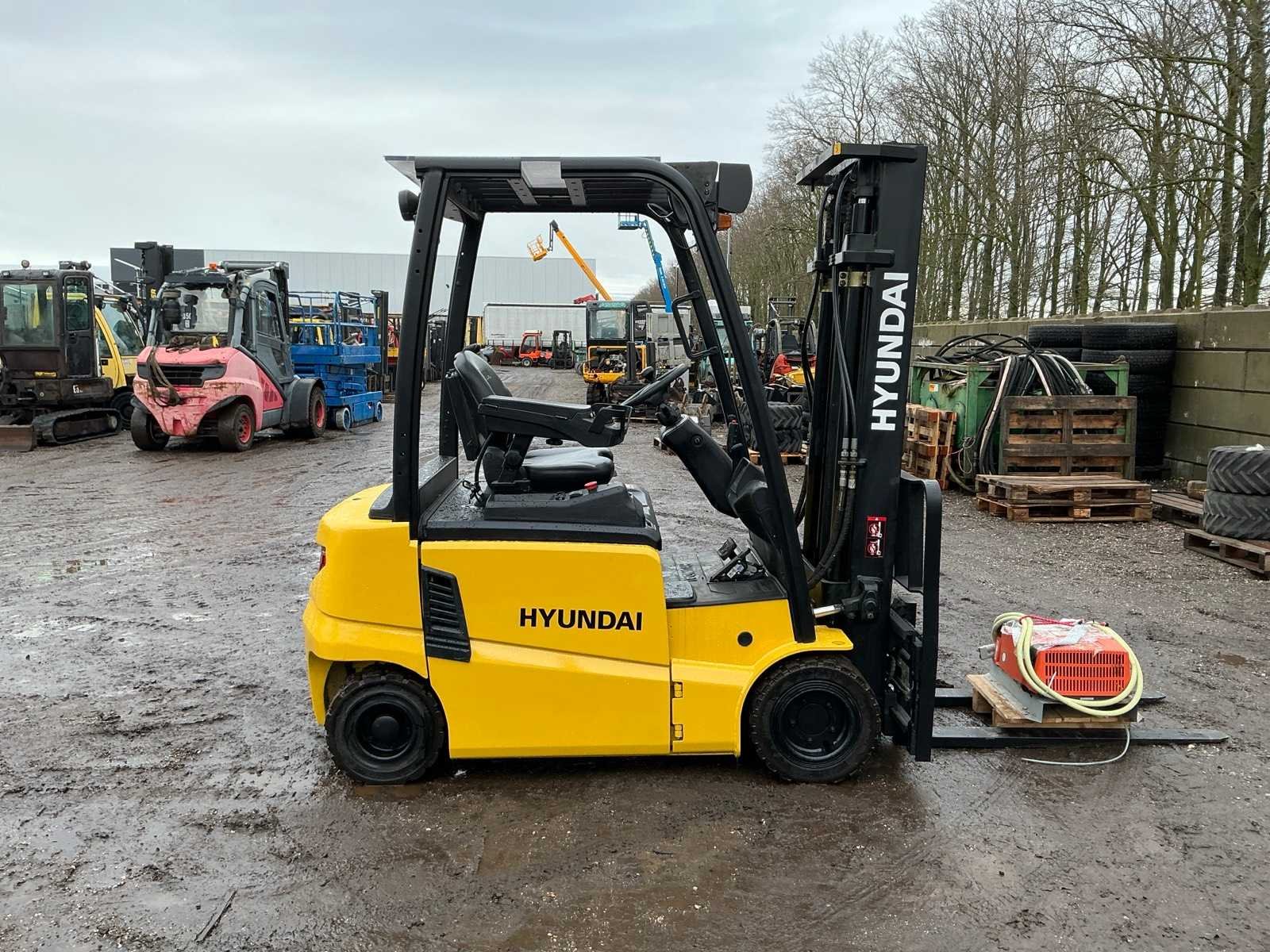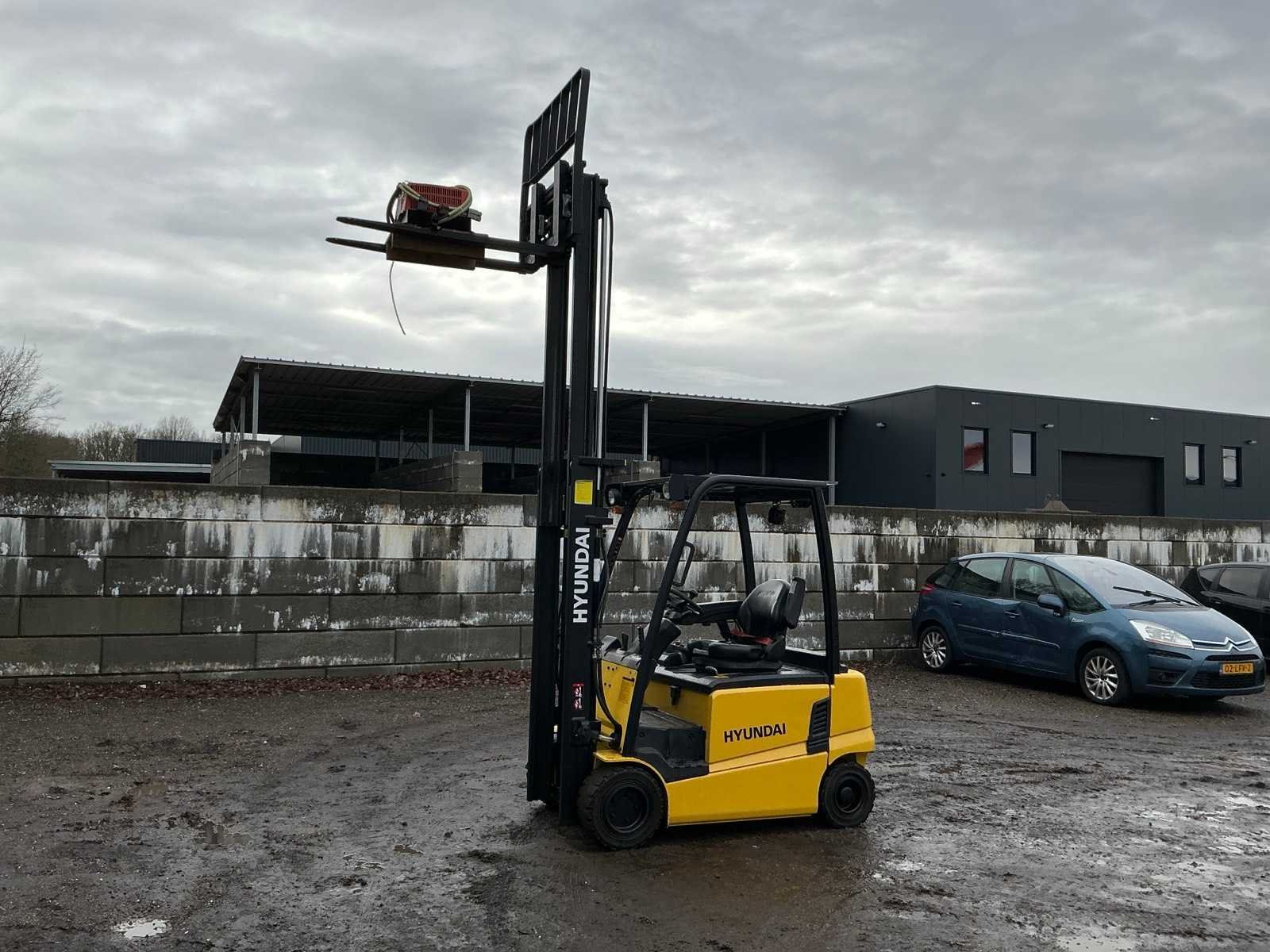 Inclusief lader 48V, lepels 1200mm, lepelbord 1000mm, duplex mast, free lift, Side shift, 48V accupakket, max hefhoogte 4000mm, max hefvermogen 1800kg Merk: Hyundai Type: 18B-9 Bouwjaar: 2015 Serienummer: HHKHHE05VF0000111 Brandstof: Elektrisch Mast: Duplex Soort band: Volrubber banden Aantal wielen: 4 Afgelezen urenstand: 6653 Accu lader: true Free-lift: true Side-shift: true Duplex mast: true Eigen gewicht: 3470kg Hefvermogen: 1770kg Lepellengte: 1200mm Max. hefhoogte: 4000mm Minimale doorrijhoogte: 2200mm Totale afmeting L: 3400mm Totale afmeting Breedte: 1100mm Totale afmeting Hoogte: 2150mm