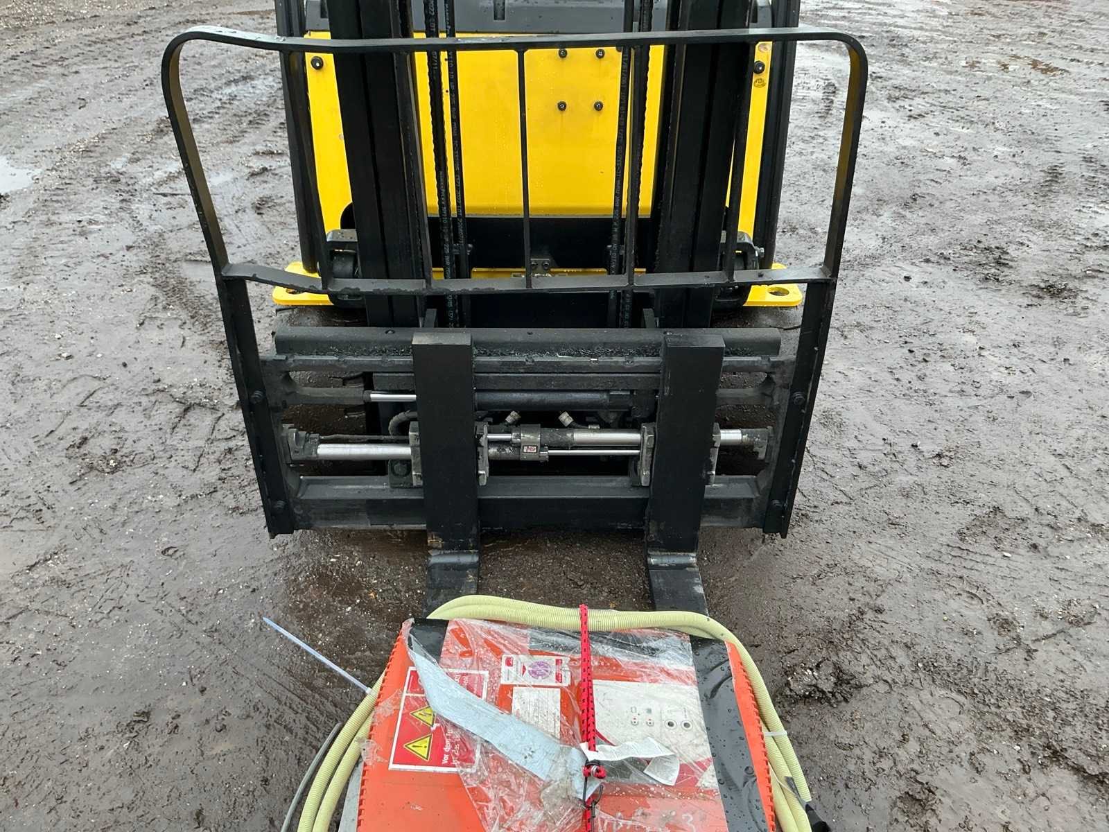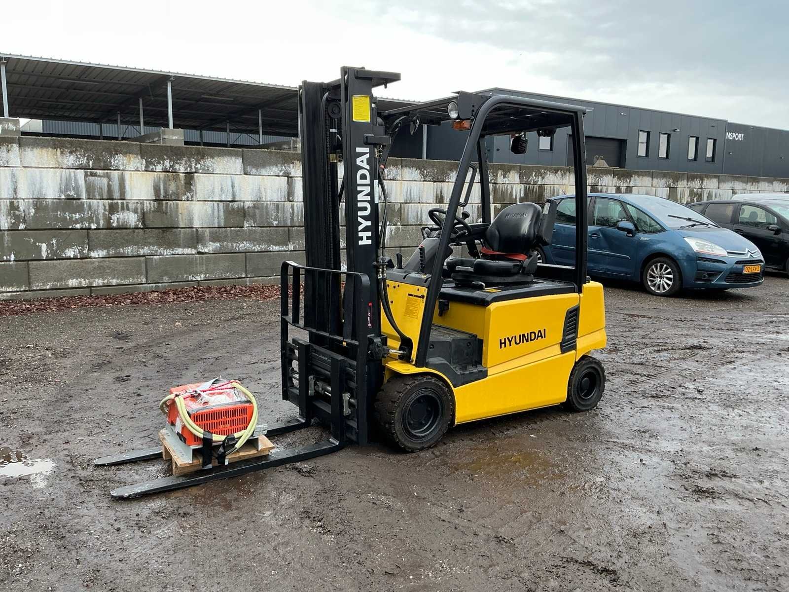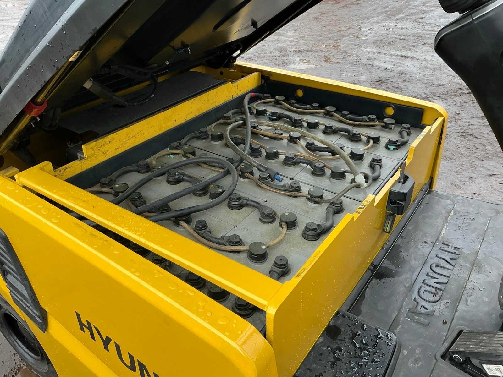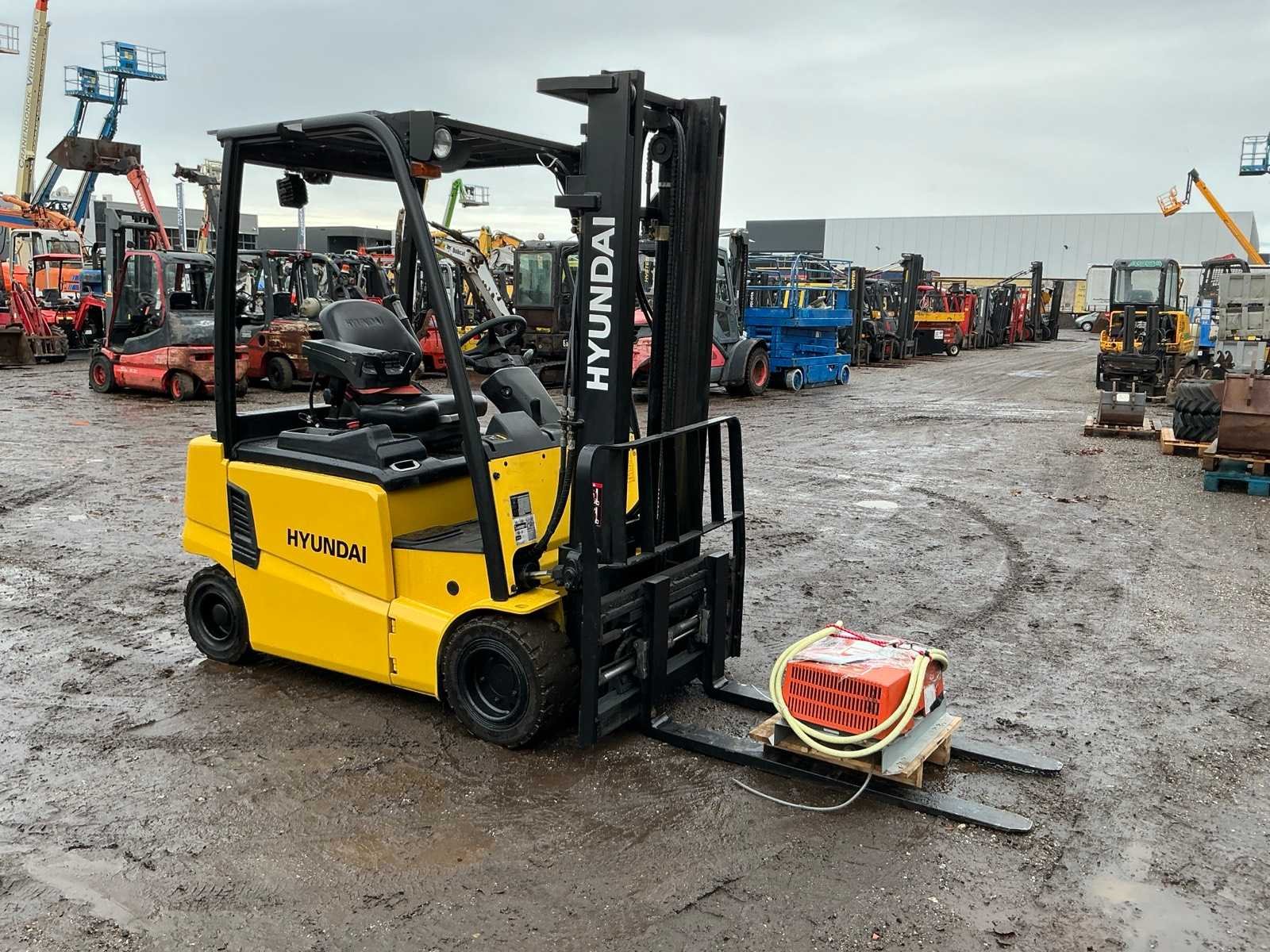 Inclusief lader 48V, lepels 1200mm, lepelbord 1000mm, duplex mast, free lift, Side shift, 48V accupakket, max hefhoogte 4000mm, max hefvermogen 1800kg Merk: Hyundai Type: 18B-9 Bouwjaar: 2015 Serienummer: HHKHHE05VF0000111 Brandstof: Elektrisch Mast: Duplex Soort band: Volrubber banden Aantal wielen: 4 Afgelezen urenstand: 6653 Accu lader: true Free-lift: true Side-shift: true Duplex mast: true Eigen gewicht: 3470kg Hefvermogen: 1770kg Lepellengte: 1200mm Max. hefhoogte: 4000mm Minimale doorrijhoogte: 2200mm Totale afmeting L: 3400mm Totale afmeting Breedte: 1100mm Totale afmeting Hoogte: 2150mm