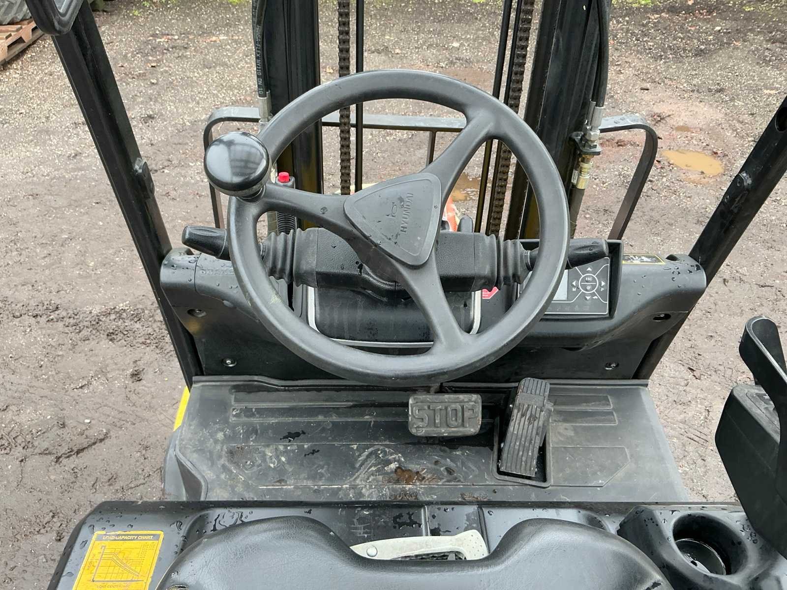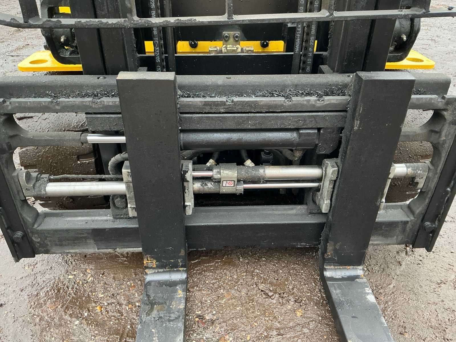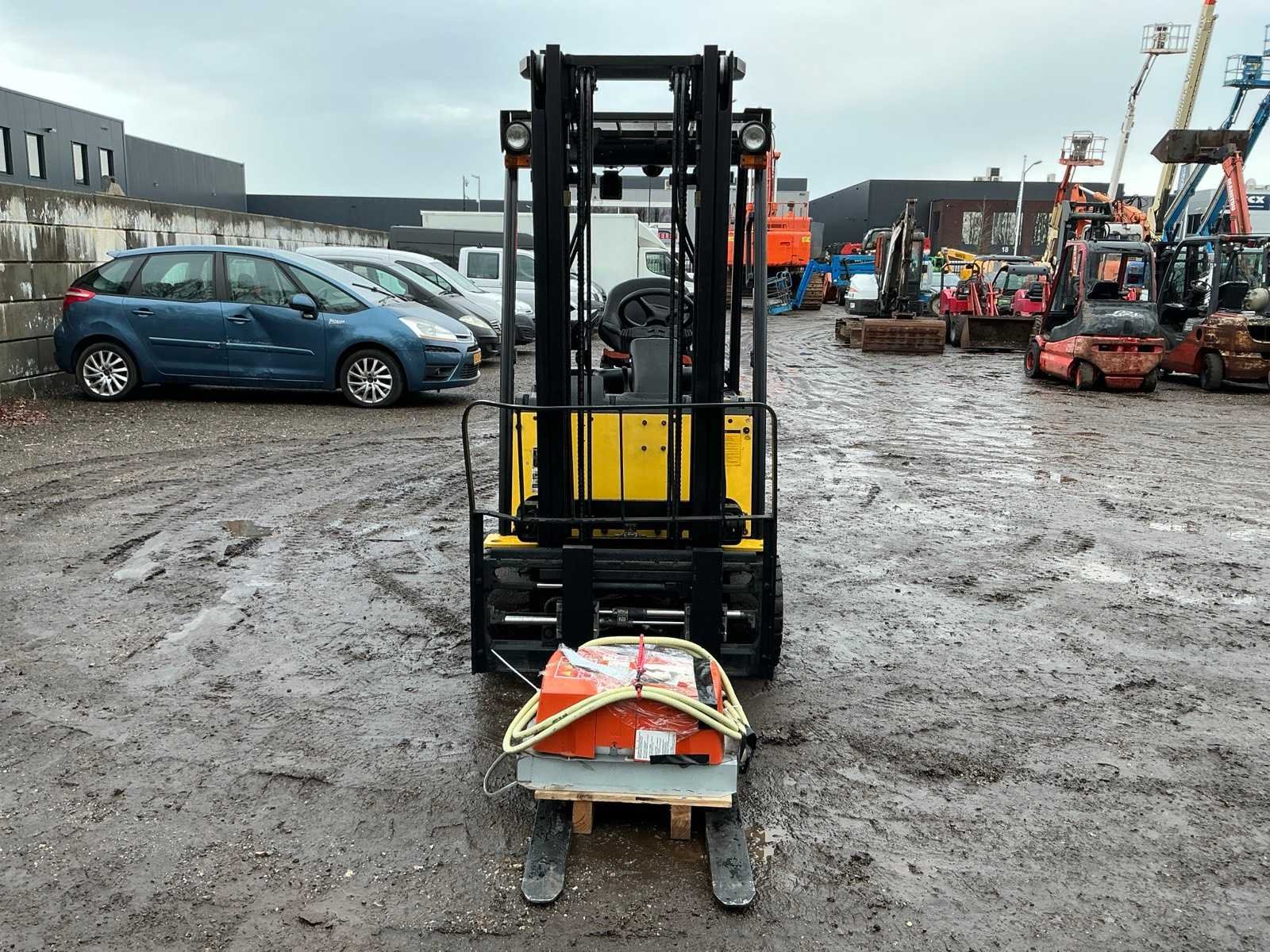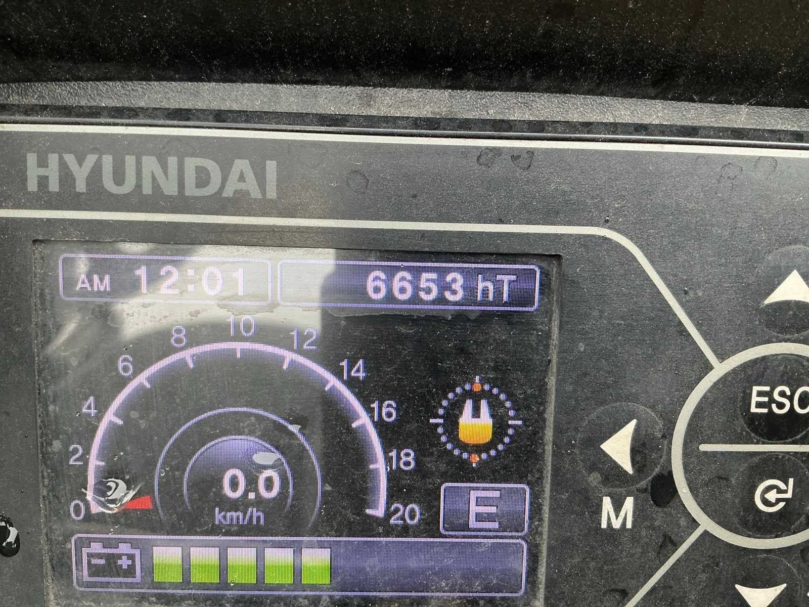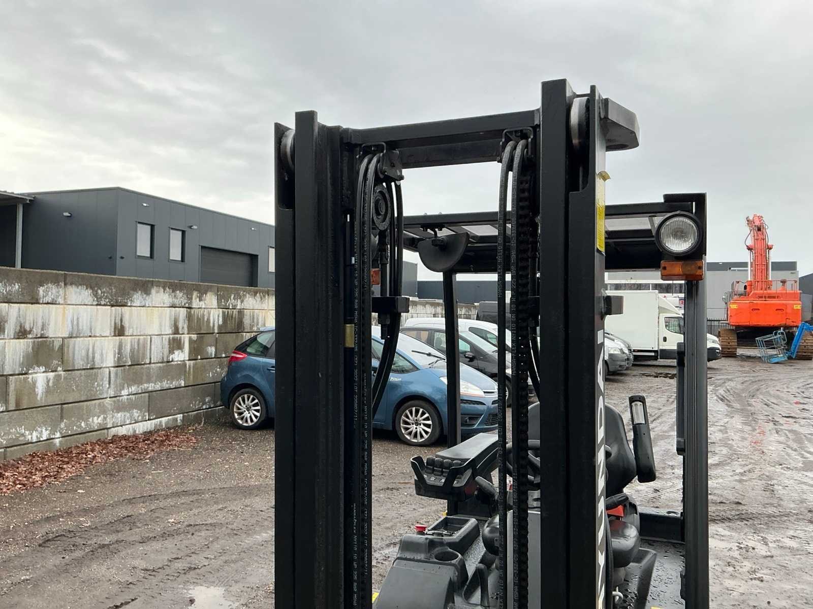 Inclusief lader 48V, lepels 1200mm, lepelbord 1000mm, duplex mast, free lift, Side shift, 48V accupakket, max hefhoogte 4000mm, max hefvermogen 1800kg Merk: Hyundai Type: 18B-9 Bouwjaar: 2015 Serienummer: HHKHHE05VF0000111 Brandstof: Elektrisch Mast: Duplex Soort band: Volrubber banden Aantal wielen: 4 Afgelezen urenstand: 6653 Accu lader: true Free-lift: true Side-shift: true Duplex mast: true Eigen gewicht: 3470kg Hefvermogen: 1770kg Lepellengte: 1200mm Max. hefhoogte: 4000mm Minimale doorrijhoogte: 2200mm Totale afmeting L: 3400mm Totale afmeting Breedte: 1100mm Totale afmeting Hoogte: 2150mm