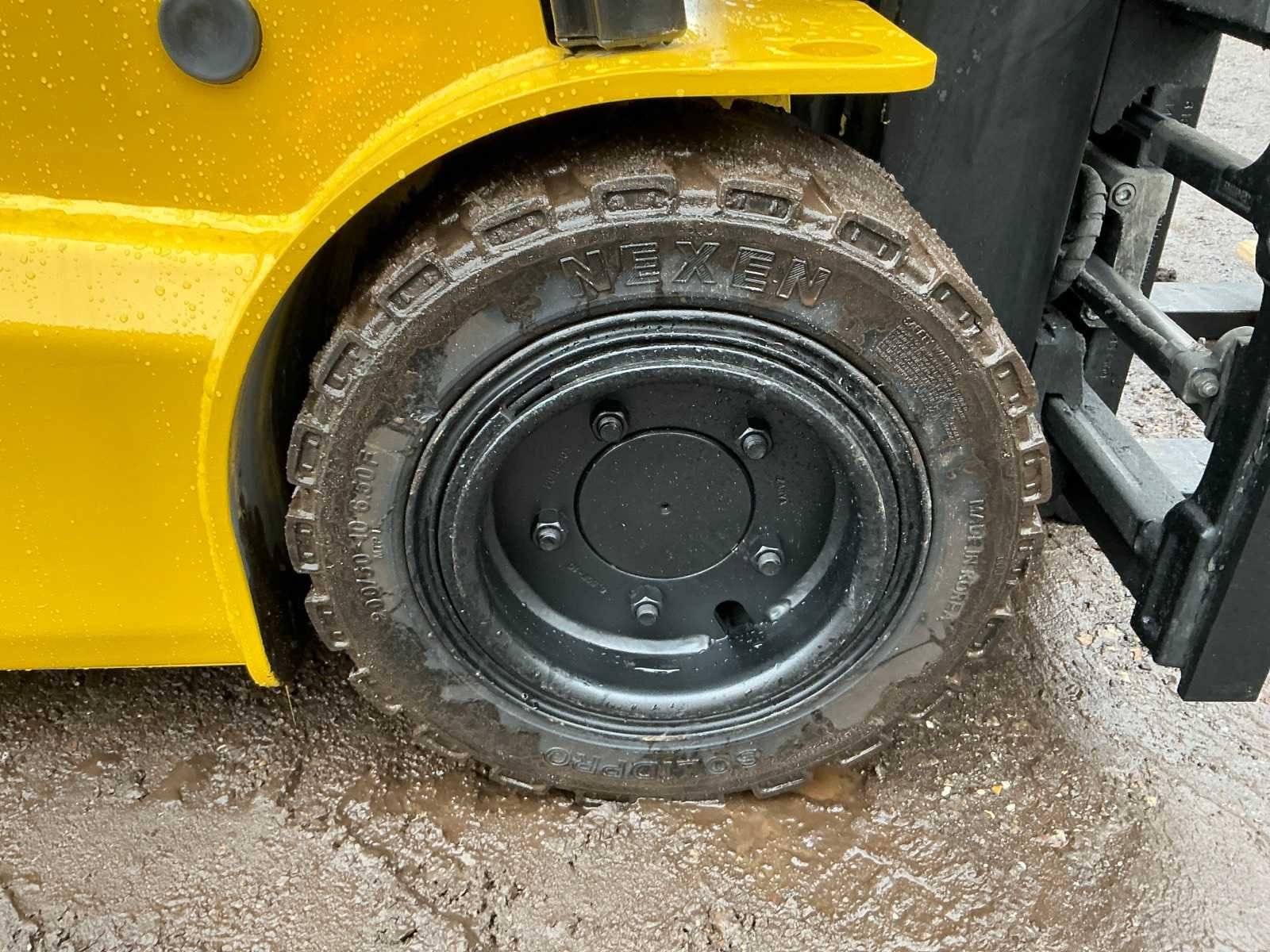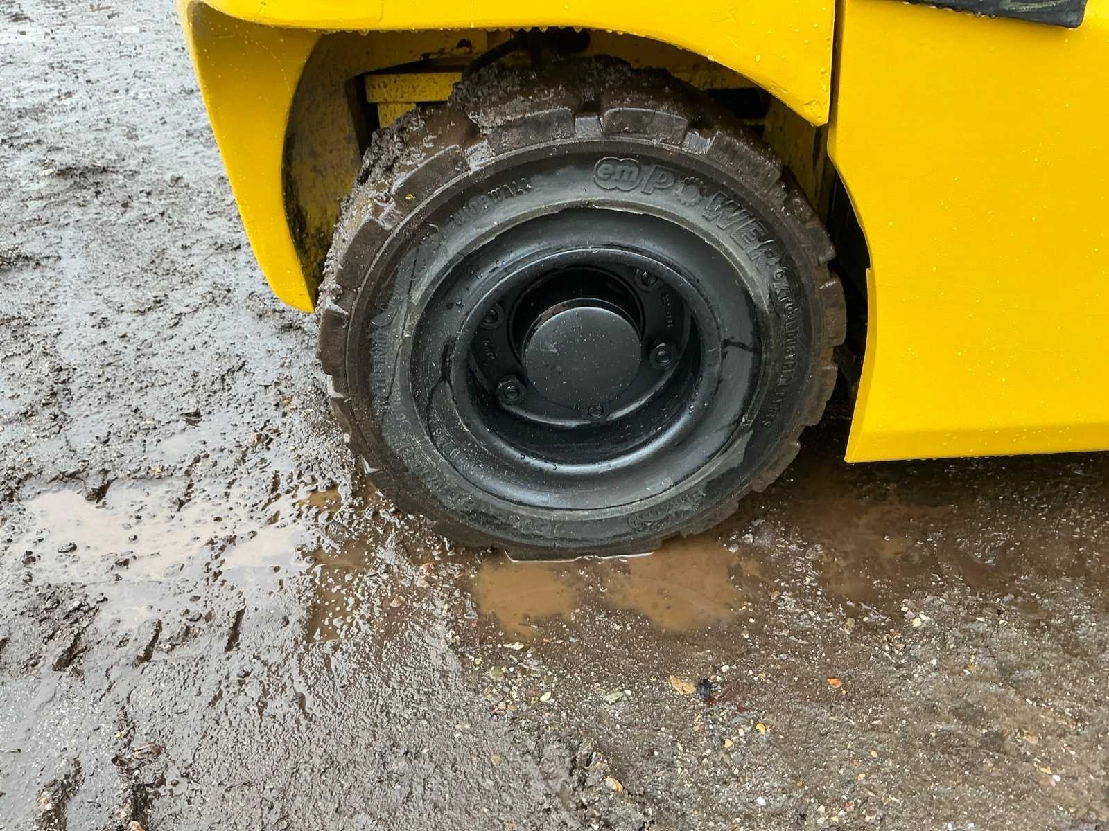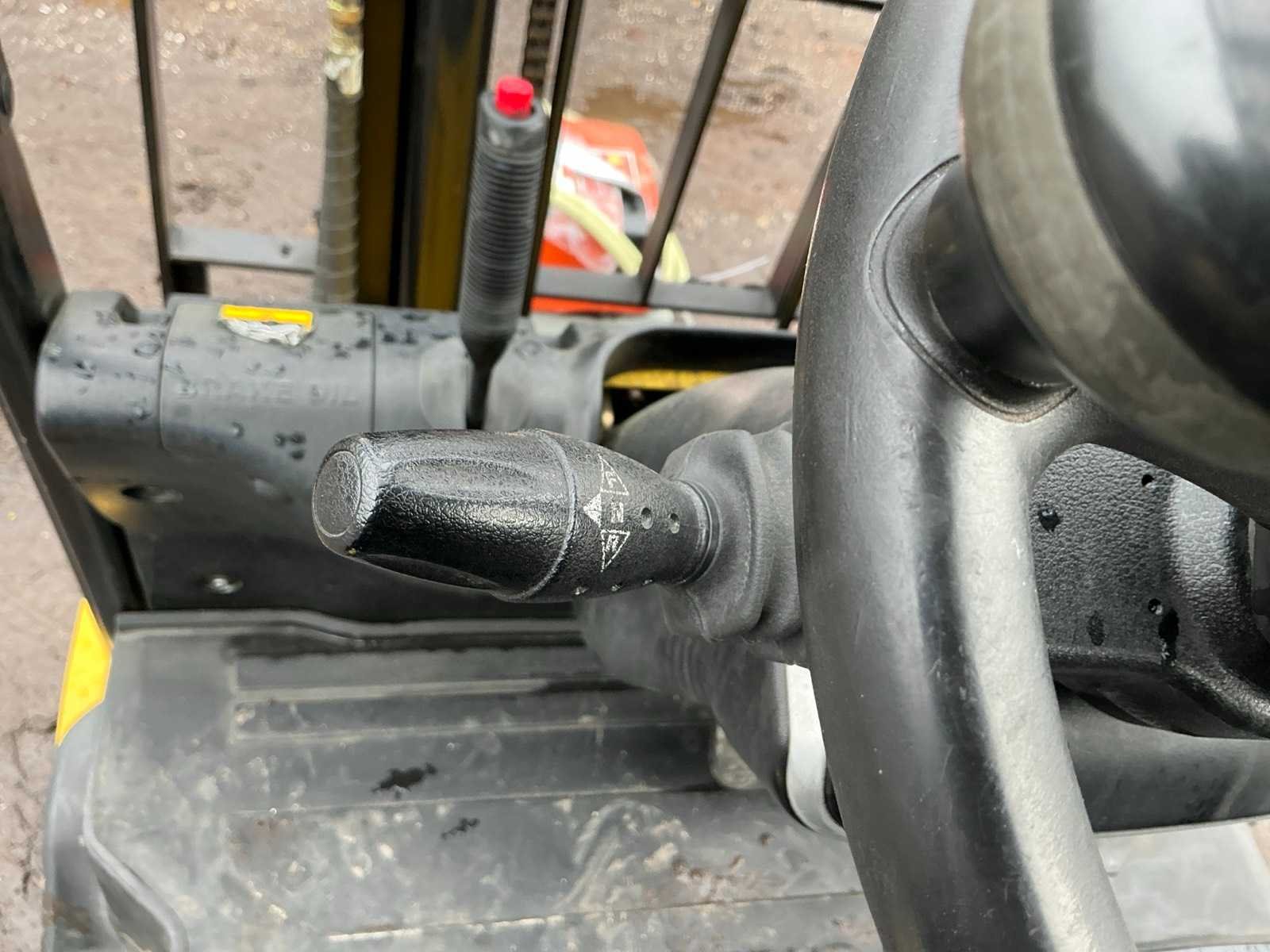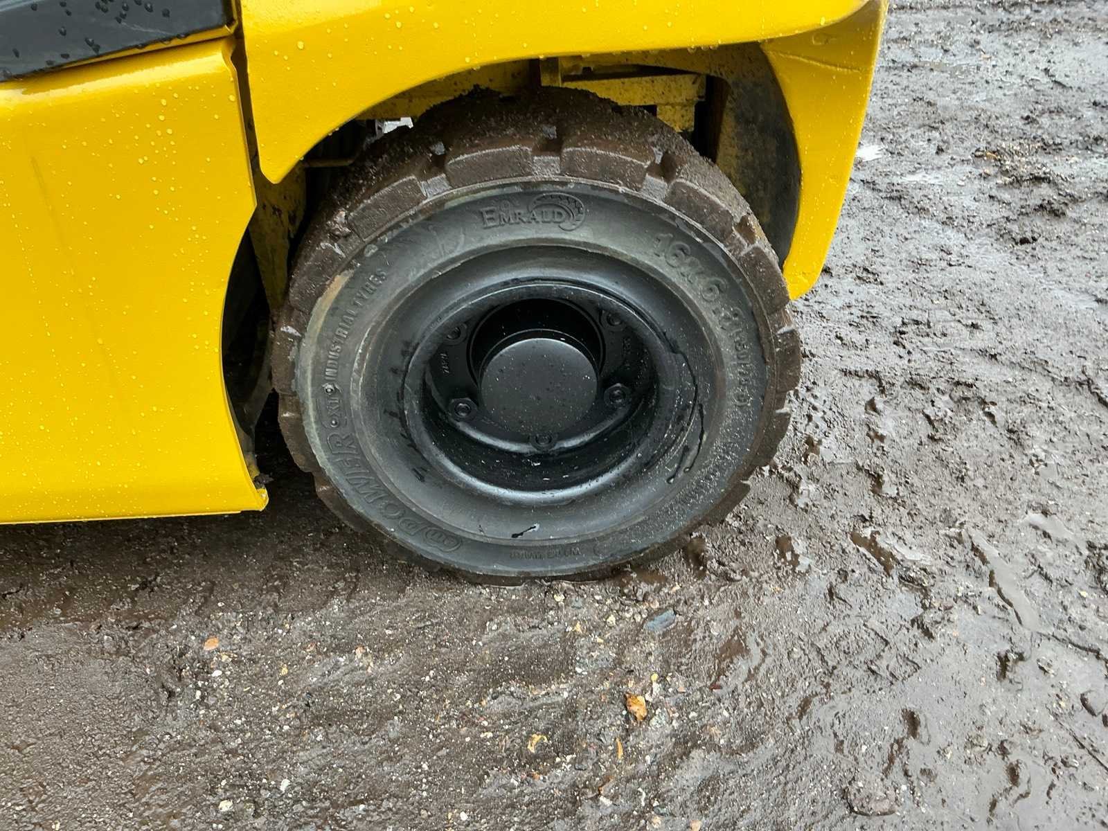 Inclusief lader 48V, lepels 1200mm, lepelbord 1000mm, duplex mast, free lift, Side shift, 48V accupakket, max hefhoogte 4000mm, max hefvermogen 1800kg Merk: Hyundai Type: 18B-9 Bouwjaar: 2015 Serienummer: HHKHHE05VF0000111 Brandstof: Elektrisch Mast: Duplex Soort band: Volrubber banden Aantal wielen: 4 Afgelezen urenstand: 6653 Accu lader: true Free-lift: true Side-shift: true Duplex mast: true Eigen gewicht: 3470kg Hefvermogen: 1770kg Lepellengte: 1200mm Max. hefhoogte: 4000mm Minimale doorrijhoogte: 2200mm Totale afmeting L: 3400mm Totale afmeting Breedte: 1100mm Totale afmeting Hoogte: 2150mm