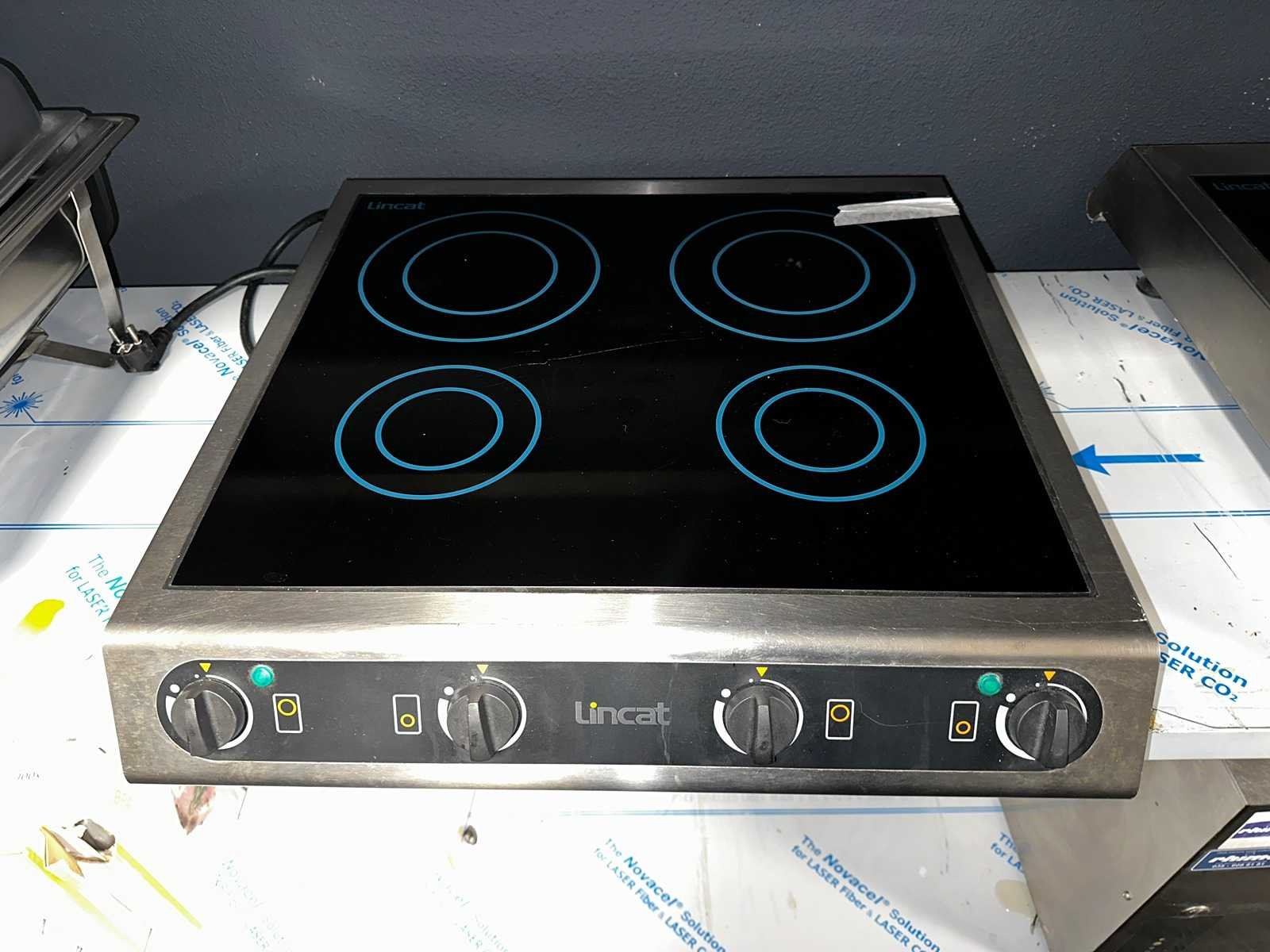 4 zones, 2 groot 2 klein ; Merk: Lincat Type: IH-42 Lengte: 60cm Breedte: 65.5cm Hoogte: 12cm Aansluiting: 230
