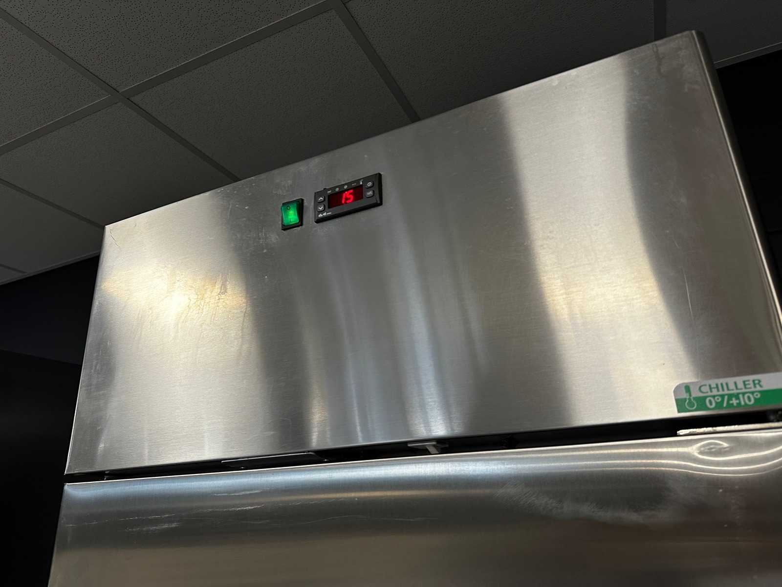 285W 230V R452a Merk: Mastercool Bouwjaar: 2022 Materiaal: RVS Aansluiting: 230V Digitale uitlezing: true Temperatuurbereik max.: 10°c Rvs: true Temperatuurbereik min.: 0°c Capaciteit.: 400l Totale afmeting L: 78.5cm Totale afmeting Breedte: 71cm Totale afmeting Hoogte: 203cm