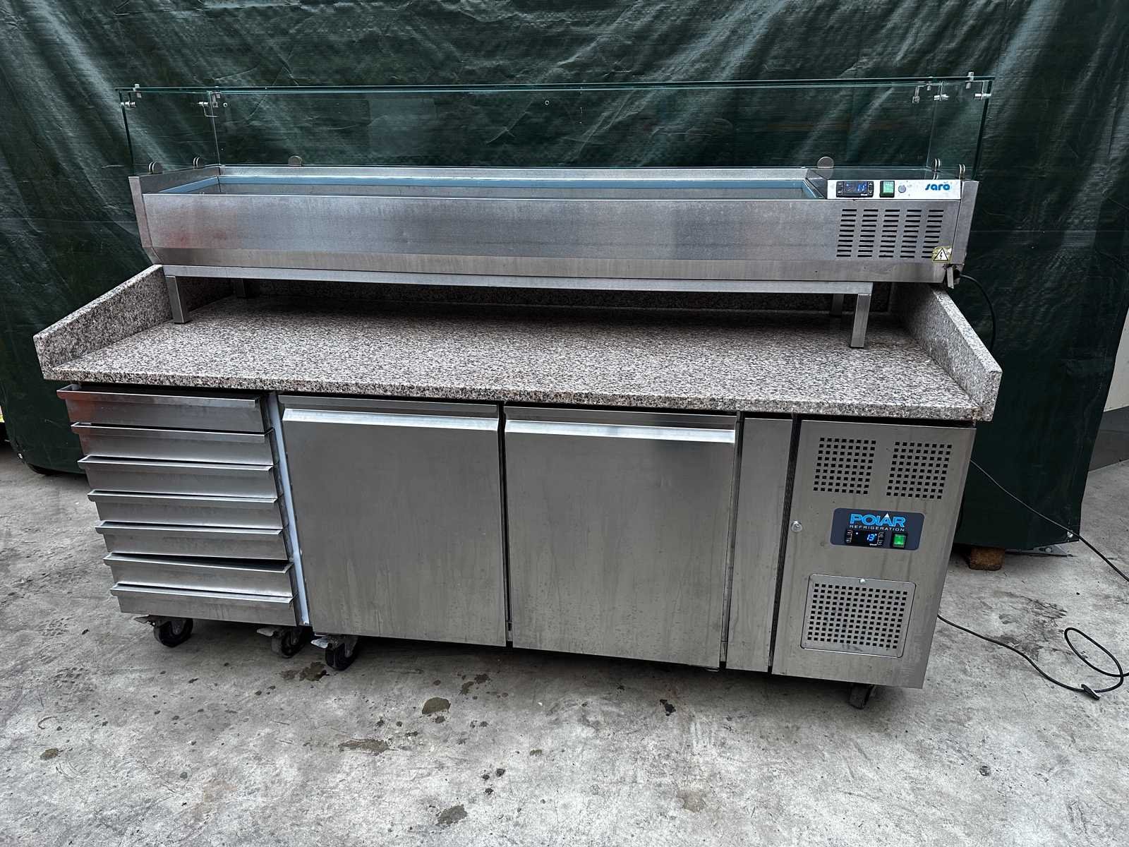 Pizzawerkbank met blad en opzet koelvitrine ; 7 laden ; 2 klapdeuren Merk: Polar Digitale uitlezing: true Ingebouwde koelcompressor: true Rvs: true Aansluiting: 230V Mobiel: true Aantal laden: 7pcs Lengte: 203cm Breedte: 80cm Hoogte: 143cm