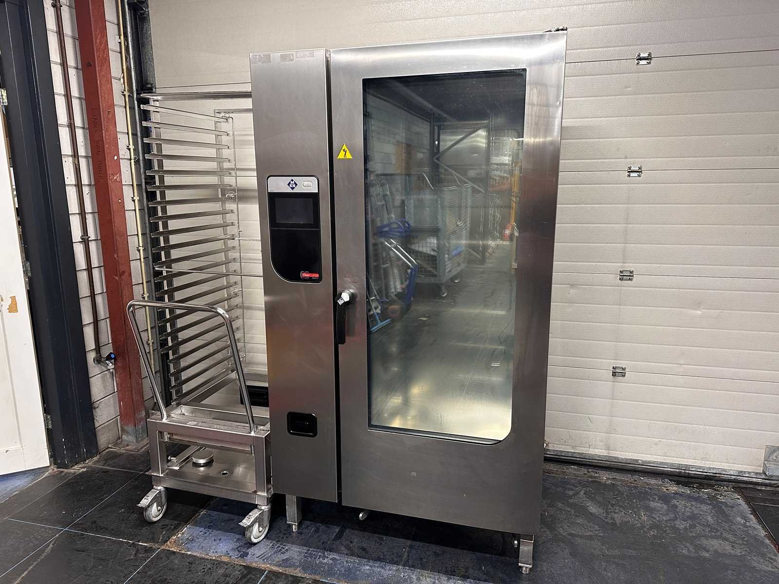 MKN Roll-In combisteamer FlexiCombi Magic Pilot 20.2 Max ; 63A ; Inclusief Roll-In kar/trolley met 20 niveaus ; Inclusief 2 roll in trolleys Merk: MKN Type: Roll-In FlexiCombi Magic Pilot 20.2 Aantal niveau's: 20 Vermogen: 60900W Aansluiting: 400V Touchscreen bediening: true Digitale besturing: true Elektrisch: true Rvs: true Totale afmeting L: 999cm Totale afmeting Breedte: 1115cm Totale afmeting Hoogte: 1960cm