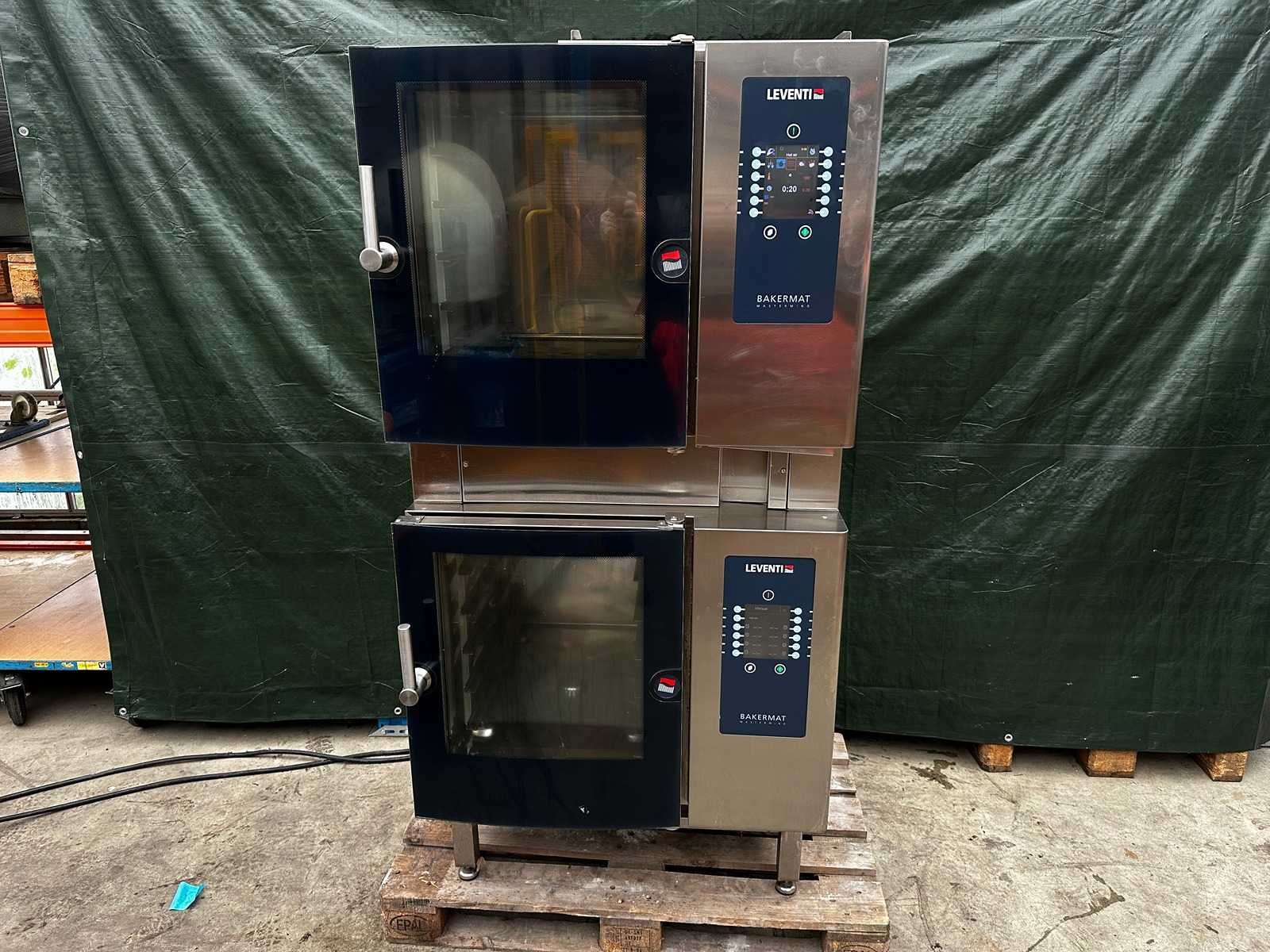 Duplo opstelling bestaande uit 2x Leventi BM MM NG 4 rechts scharnierend 400v 9kW; Digitale besturing ; Merk: Leventi Type: Bakermat Mastermind NG 4 Duplo Aantal niveau's: 8 Totale afmeting L: 970mm Totale afmeting Breedte: 850mm Totale afmeting Hoogte: 1950mm