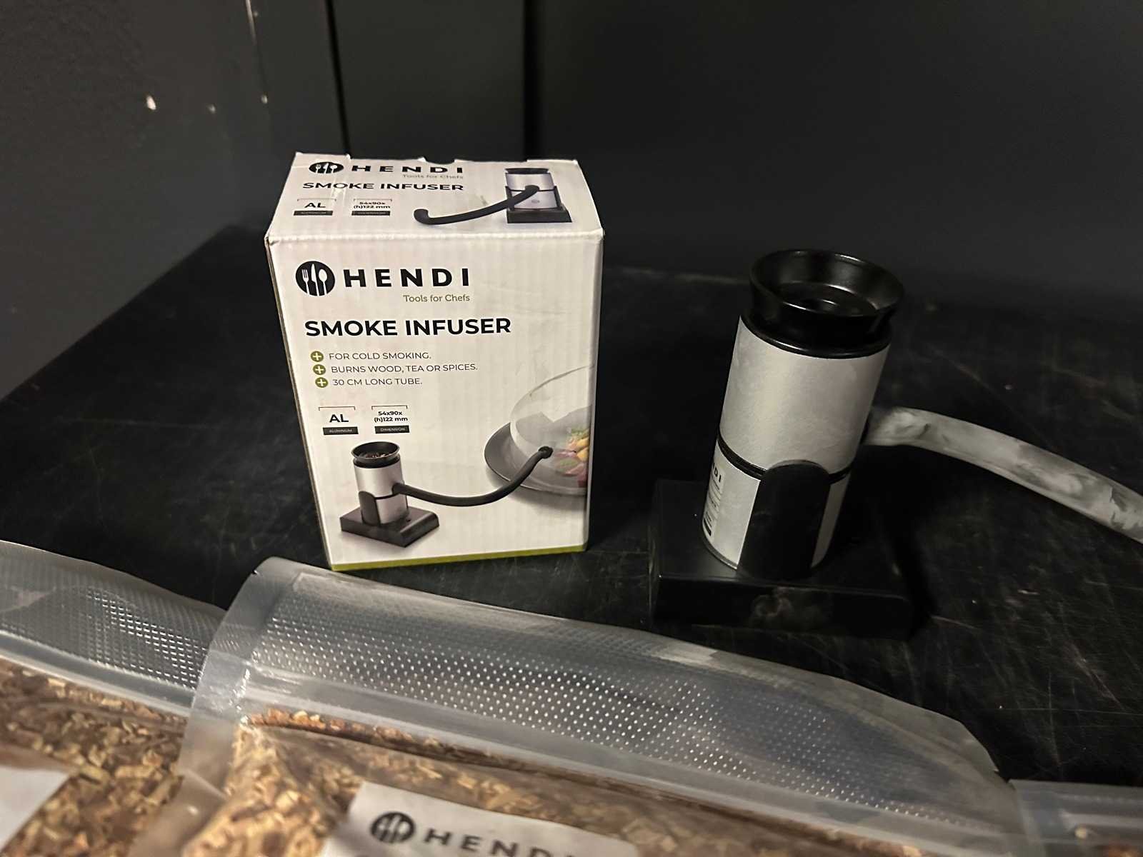 8 zakken van 250gram en elektrisch op batterijen rookmachine kersenhout 250 g Merk: Hendi