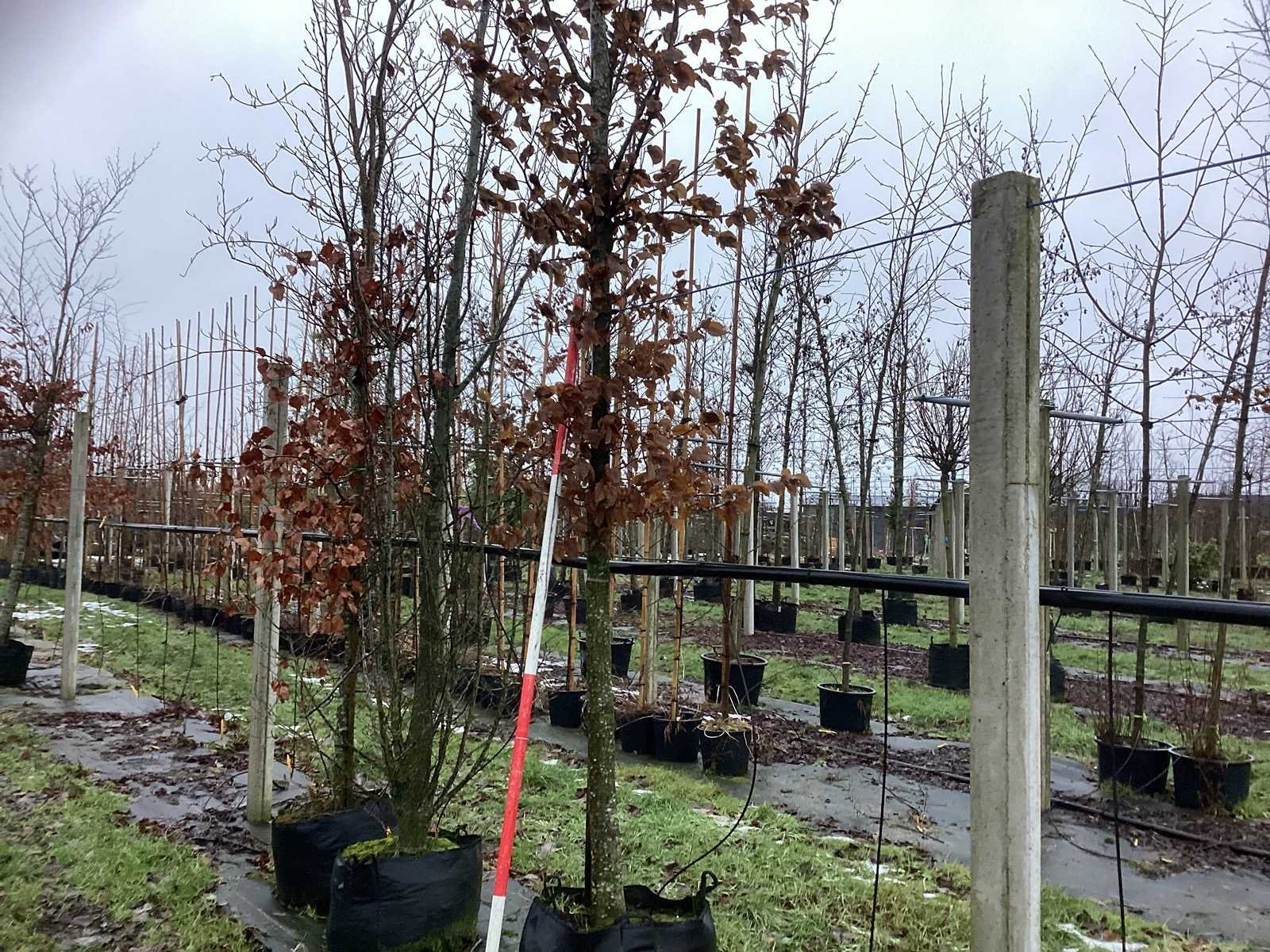 De kavels worden door ons verzameld en klaargelegd voor transport; Wilt u gebruik maken van de bezorgservice neem dan contact op via het emailadres arina@groviatrees.com. Als tip, de bomen zitten nu in de winterrust dus wilt u graag weten wat de zomer- en de herfstkleuren zijn, kijk dan op internet daar staan hele mooie voorbeelden van de bomen. Voor overige vragen bel 0645641495 of 0633049344 Type: Haagbeuk Latijnse benaming: Carpinus Betulus Hoogte ca.: 550cm In pot: true Stamdikte: 20cm