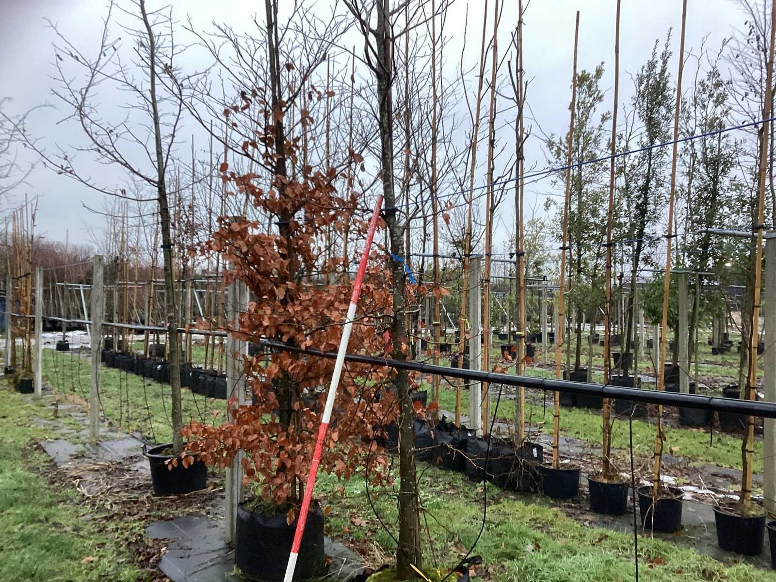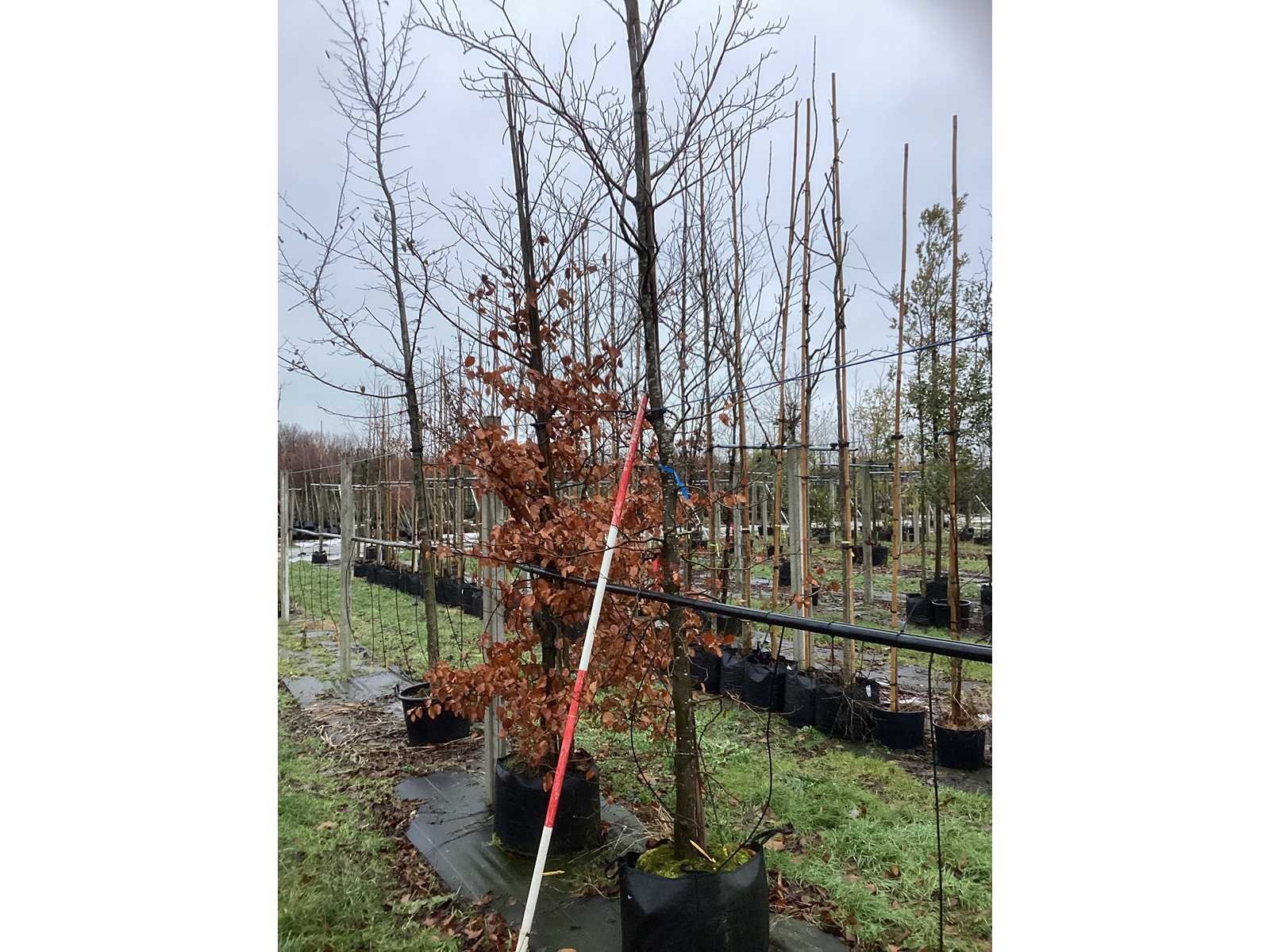 De kavels worden door ons verzameld en klaargelegd voor transport; Wilt u gebruik maken van de bezorgservice neem dan contact op via het emailadres arina@groviatrees.com. Als tip, de bomen zitten nu in de winterrust dus wilt u graag weten wat de zomer- en de herfstkleuren zijn, kijk dan op internet daar staan hele mooie voorbeelden van de bomen. Voor overige vragen bel 0645641495 of 0633049344 Type: Rode beuk Latijnse benaming: Fagys Atropunicea Hoogte ca.: 600cm In pot: true Stamdikte: 20cm