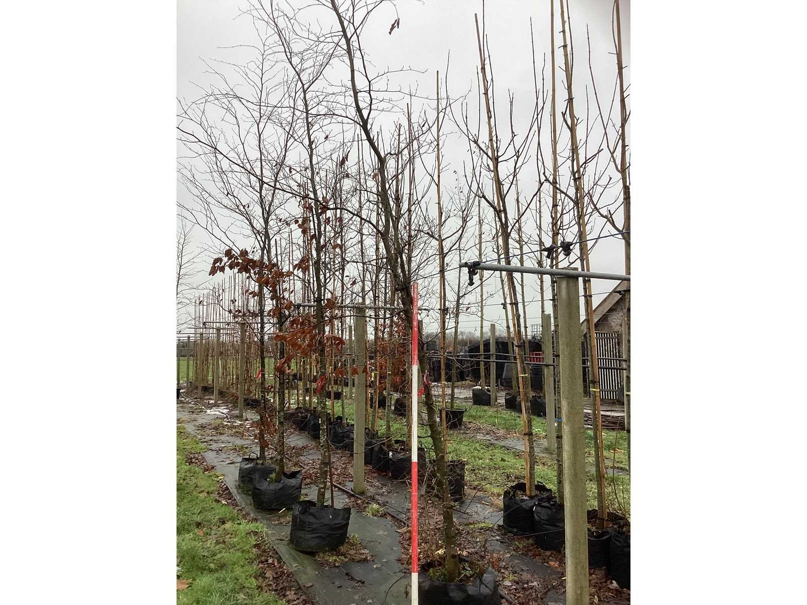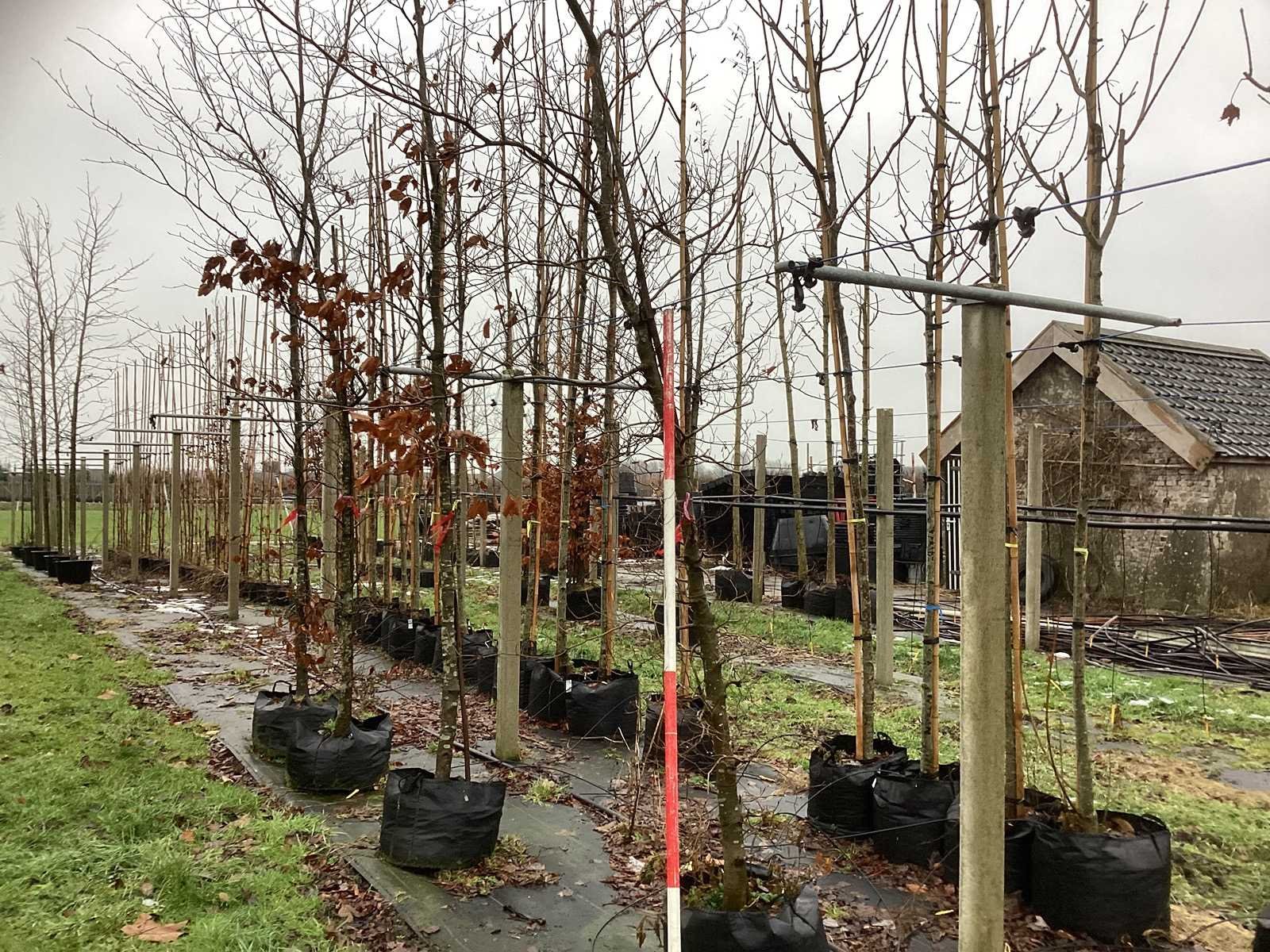 De kavels worden door ons verzameld en klaargelegd voor transport; Wilt u gebruik maken van de bezorgservice neem dan contact op via het emailadres arina@groviatrees.com. Als tip, de bomen zitten nu in de winterrust dus wilt u graag weten wat de zomer- en de herfstkleuren zijn, kijk dan op internet daar staan hele mooie voorbeelden van de bomen. Voor overige vragen bel 0645641495 of 0633049344 Type: Rode Beuk Latijnse benaming: Fagus Atropunicea Hoogte ca.: 500cm In pot: true Stamdikte: 17cm
