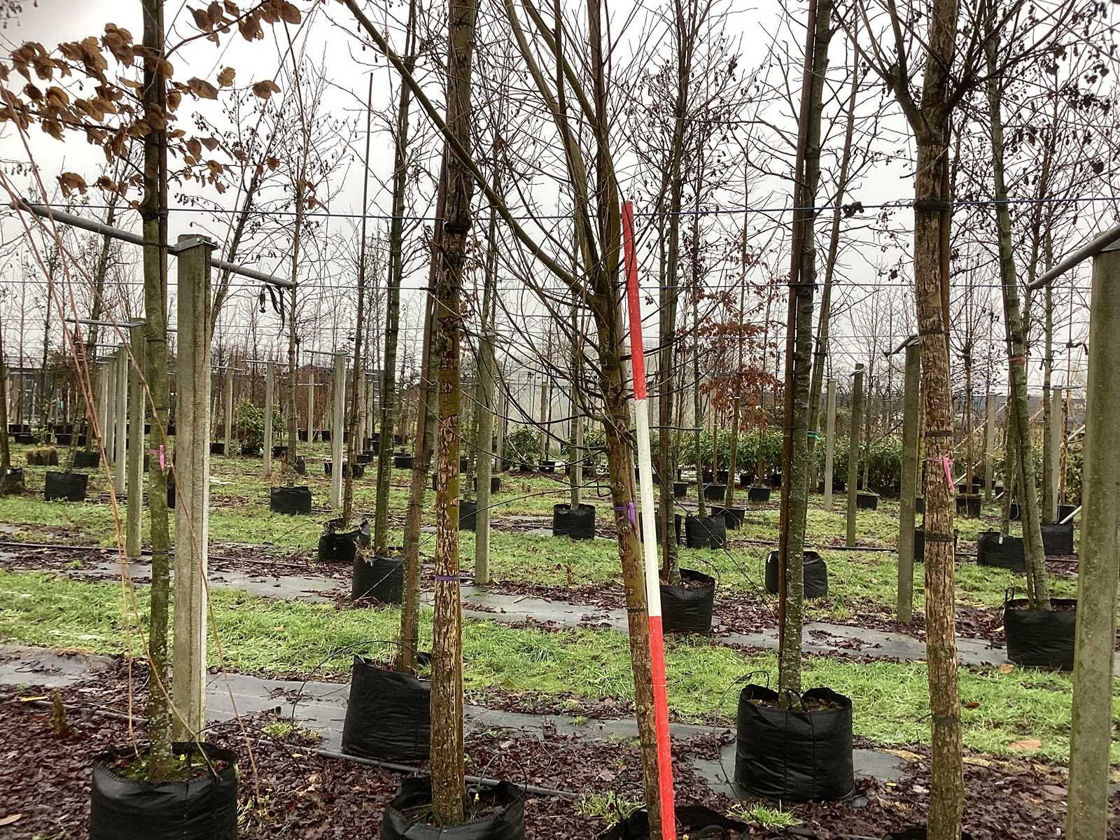 De kavels worden door ons verzameld en klaargelegd voor transport; Wilt u gebruik maken van de bezorgservice neem dan contact op via het emailadres arina@groviatrees.com. Als tip, de bomen zitten nu in de winterrust dus wilt u graag weten wat de zomer- en de herfstkleuren zijn, kijk dan op internet daar staan hele mooie voorbeelden van de bomen. Voor overige vragen bel 0645641495 of 0633049344 Type: Schietwilg Latijnse benaming: Salix alba Chermesina In pot: true Stamdikte: 18cm