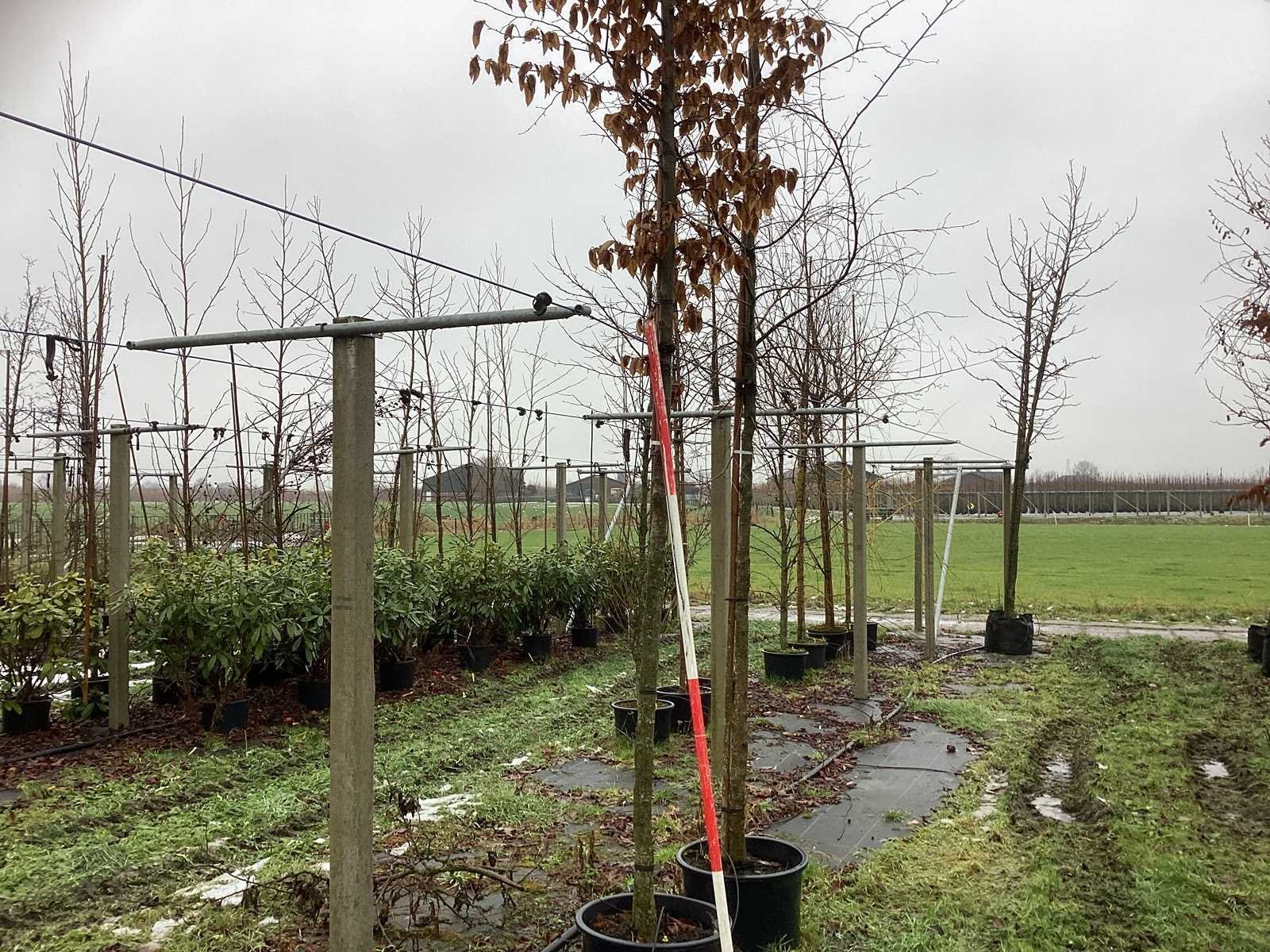 De kavels worden door ons verzameld en klaargelegd voor transport; Wilt u gebruik maken van de bezorgservice neem dan contact op via het emailadres arina@groviatrees.com. Als tip, de bomen zitten nu in de winterrust dus wilt u graag weten wat de zomer- en de herfstkleuren zijn, kijk dan op internet daar staan hele mooie voorbeelden van de bomen. Voor overige vragen bel 0645641495 of 0633049344 Type: Haagbeuk Latijnse benaming: Carpinus Betulus Hoogte ca.: 450cm In pot: true Stamdikte: 16cm