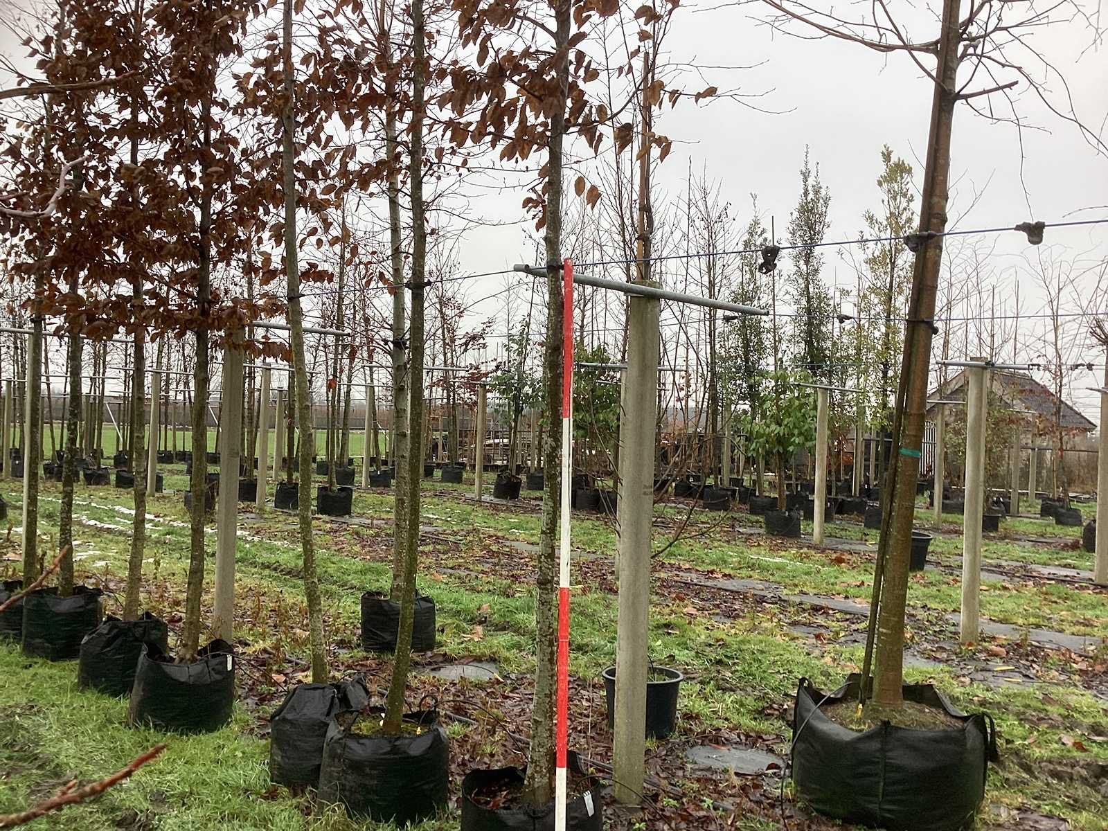 De kavels worden door ons verzameld en klaargelegd voor transport; Wilt u gebruik maken van de bezorgservice neem dan contact op via het emailadres arina@groviatrees.com. Als tip, de bomen zitten nu in de winterrust dus wilt u graag weten wat de zomer- en de herfstkleuren zijn, kijk dan op internet daar staan hele mooie voorbeelden van de bomen. Voor overige vragen bel 0645641495 of 0633049344 Type: Haagbeuk Latijnse benaming: Carpinus Betulus Hoogte ca.: 500cm In pot: true Stamdikte: 17cm