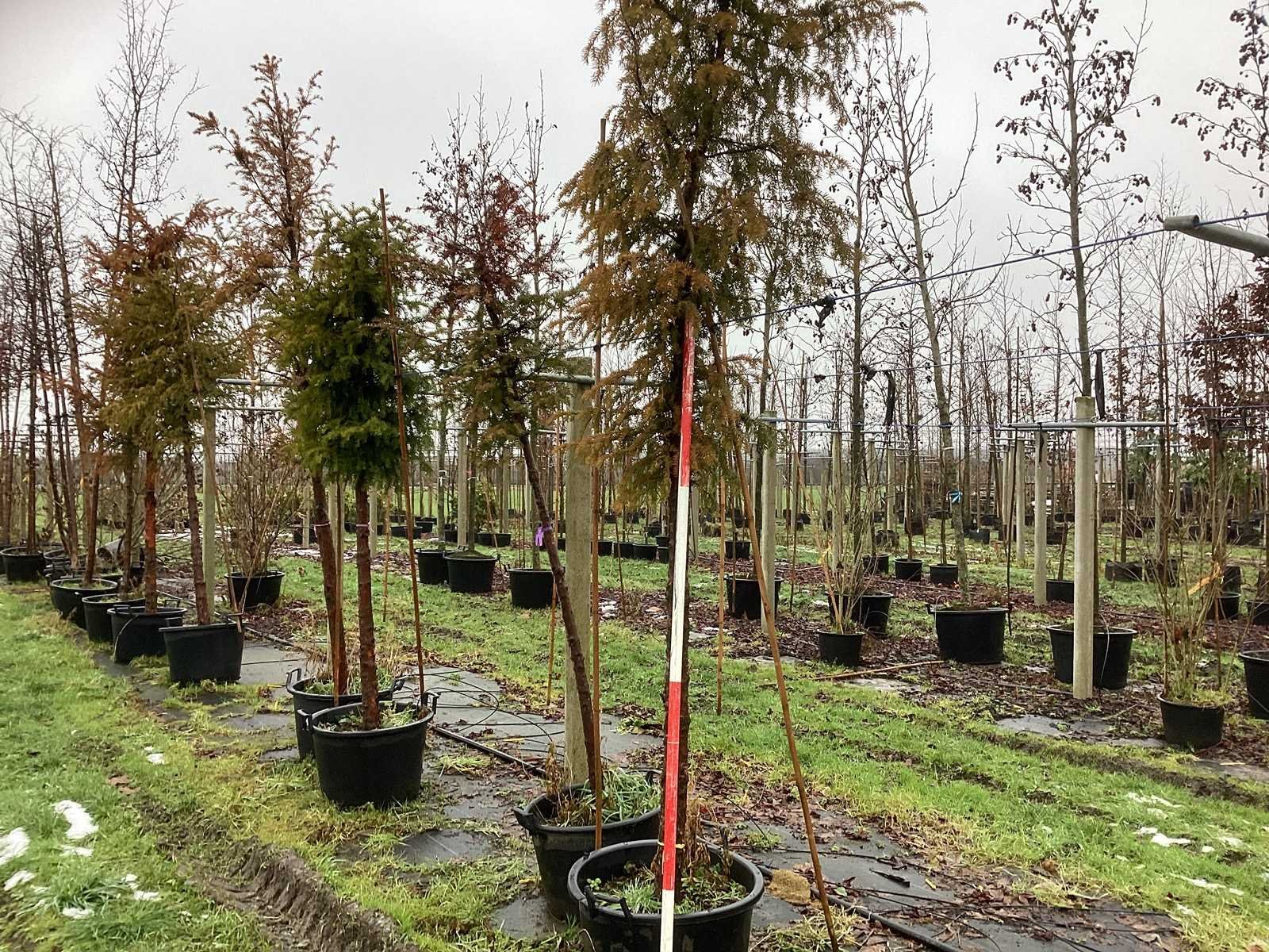 De kavels worden door ons verzameld en klaargelegd voor transport; Wilt u gebruik maken van de bezorgservice neem dan contact op via het emailadres arina@groviatrees.com. Als tip, de bomen zitten nu in de winterrust dus wilt u graag weten wat de zomer- en de herfstkleuren zijn, kijk dan op internet daar staan hele mooie voorbeelden van de bomen. Voor overige vragen bel 0645641495 of 0633049344 Type: Venijnboom Latijnse benaming: Taxus baccata Hoogte ca.: 400cm In pot: true Stamdikte: 14cm