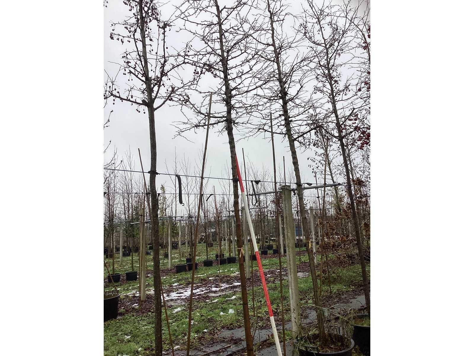 De kavels worden door ons verzameld en klaargelegd voor transport; Wilt u gebruik maken van de bezorgservice neem dan contact op via het emailadres arina@groviatrees.com. Als tip, de bomen zitten nu in de winterrust dus wilt u graag weten wat de zomer- en de herfstkleuren zijn, kijk dan op internet daar staan hele mooie voorbeelden van de bomen. Voor overige vragen bel 0645641495 of 0633049344 Type: Sierappel Latijnse benaming: Malus brouwers beauty Hoogte ca.: 500cm In pot: true Stamdikte: 16cm