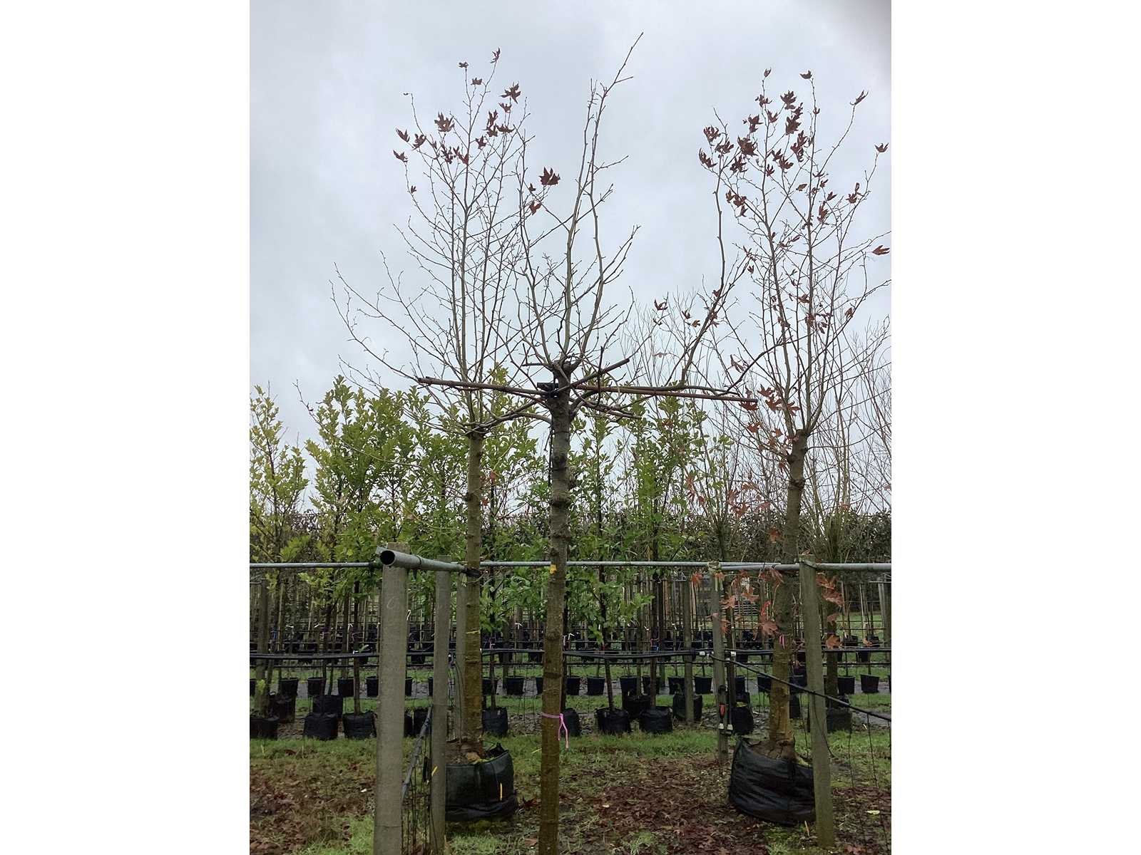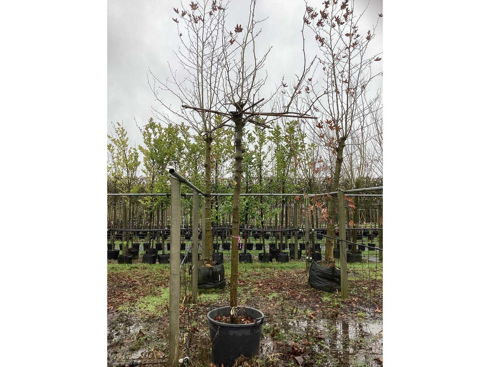 De kavels worden door ons verzameld en klaargelegd voor transport; Wilt u gebruik maken van de bezorgservice neem dan contact op via het emailadres arina@groviatrees.com. Als tip, de bomen zitten nu in de winterrust dus wilt u graag weten wat de zomer- en de herfstkleuren zijn, kijk dan op internet daar staan hele mooie voorbeelden van de bomen. Voor overige vragen bel 0645641495 of 0633049344 Type: Gewone plataan Latijnse benaming: Platanus Hispanica Hoogte ca.: 300cm In pot: true Stamdikte: 24cm