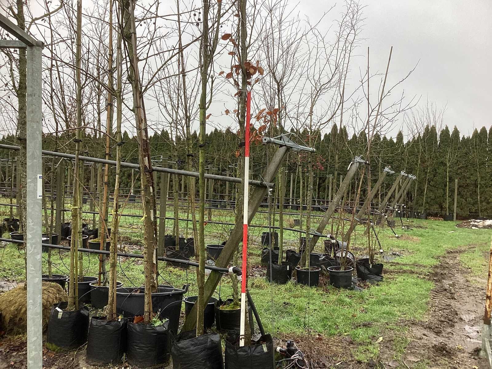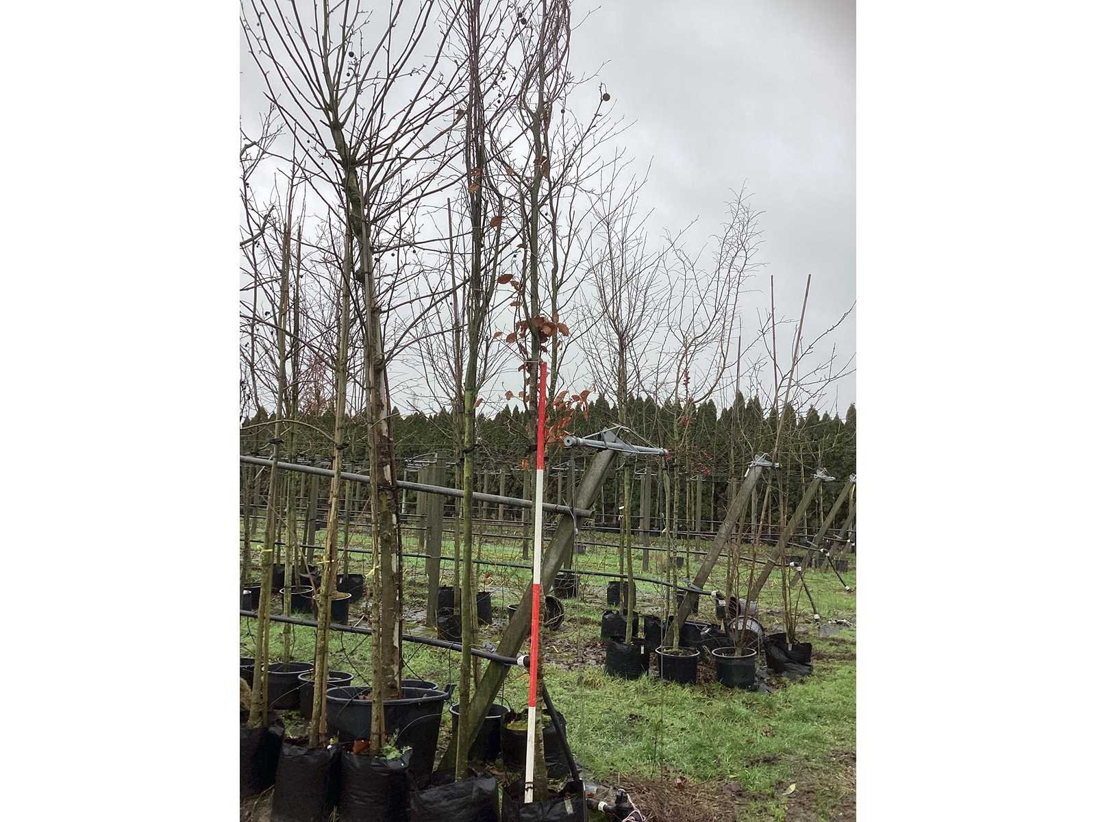 De kavels worden door ons verzameld en klaargelegd voor transport; Wilt u gebruik maken van de bezorgservice neem dan contact op via het emailadres arina@groviatrees.com. Als tip, de bomen zitten nu in de winterrust dus wilt u graag weten wat de zomer- en de herfstkleuren zijn, kijk dan op internet daar staan hele mooie voorbeelden van de bomen. Voor overige vragen bel 0645641495 of 0633049344 Type: Rode beuk Latijnse benaming: Fagus sylvatica Atropunicea Hoogte ca.: 450cm In pot: true Stamdikte: 16cm