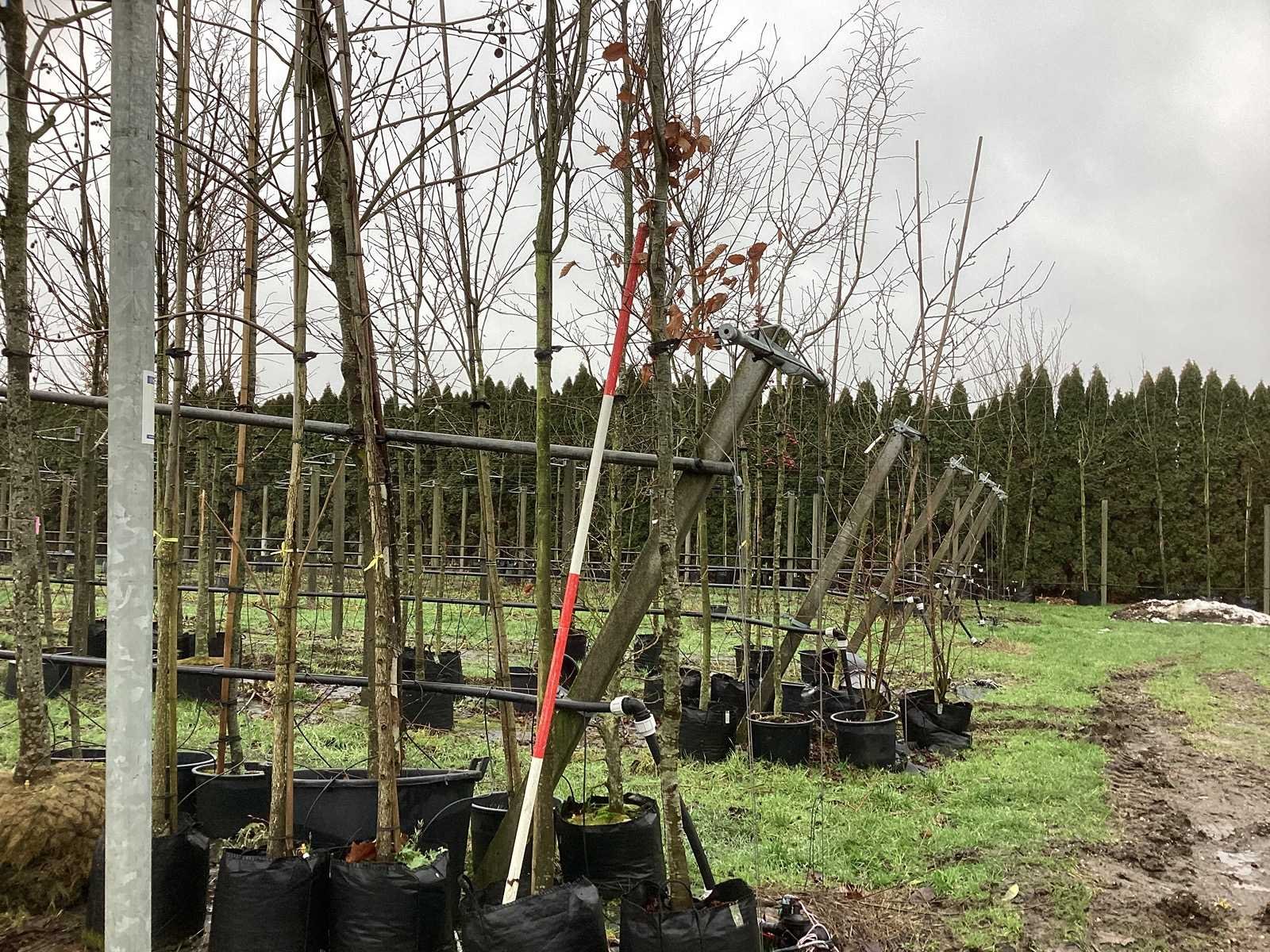De kavels worden door ons verzameld en klaargelegd voor transport; Wilt u gebruik maken van de bezorgservice neem dan contact op via het emailadres arina@groviatrees.com. Als tip, de bomen zitten nu in de winterrust dus wilt u graag weten wat de zomer- en de herfstkleuren zijn, kijk dan op internet daar staan hele mooie voorbeelden van de bomen. Voor overige vragen bel 0645641495 of 0633049344 Type: Krentenboom Latijnse benaming: Amelanchier Lamarckii Hoogte ca.: 450cm In pot: true Stamdikte: 14cm