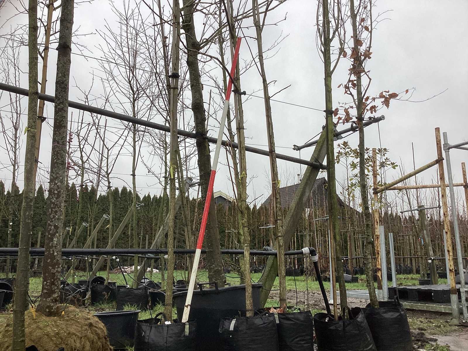 De kavels worden door ons verzameld en klaargelegd voor transport; Wilt u gebruik maken van de bezorgservice neem dan contact op via het emailadres arina@groviatrees.com. Als tip, de bomen zitten nu in de winterrust dus wilt u graag weten wat de zomer- en de herfstkleuren zijn, kijk dan op internet daar staan hele mooie voorbeelden van de bomen. Voor overige vragen bel 0645641495 of 0633049344 Type: Kaukasische vleugelnoot Latijnse benaming: Pterocarya fraxinifolia Hoogte ca.: 400cm In pot: true Stamdikte: 12cm