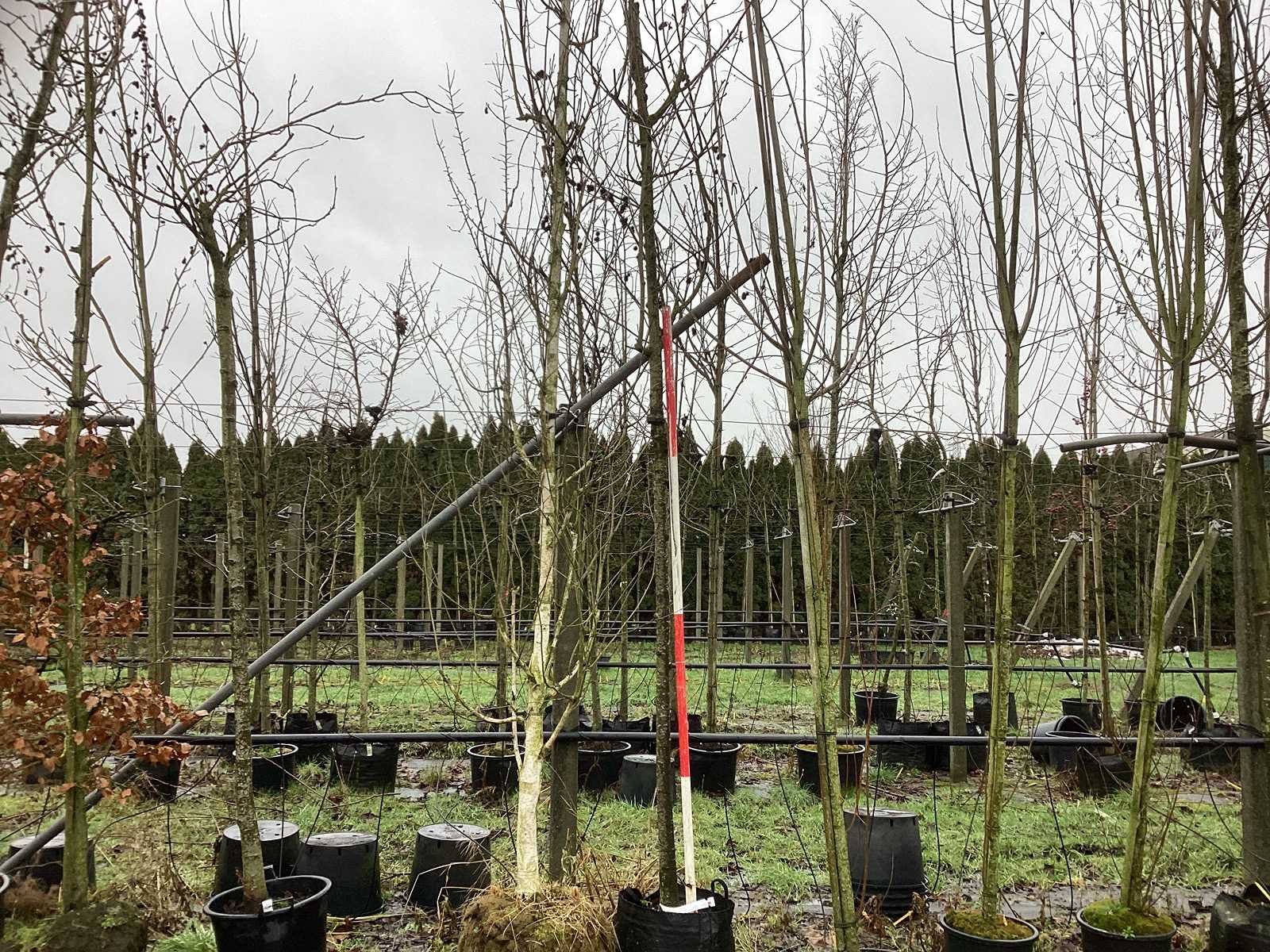 De kavels worden door ons verzameld en klaargelegd voor transport; Wilt u gebruik maken van de bezorgservice neem dan contact op via het emailadres arina@groviatrees.com. Als tip, de bomen zitten nu in de winterrust dus wilt u graag weten wat de zomer- en de herfstkleuren zijn, kijk dan op internet daar staan hele mooie voorbeelden van de bomen. Voor overige vragen bel 0645641495 of 0633049344 Type: Zoete sierkers Latijnse benaming: Prunus plena Hoogte ca.: 500cm In pot: true Stamdikte: 16cm