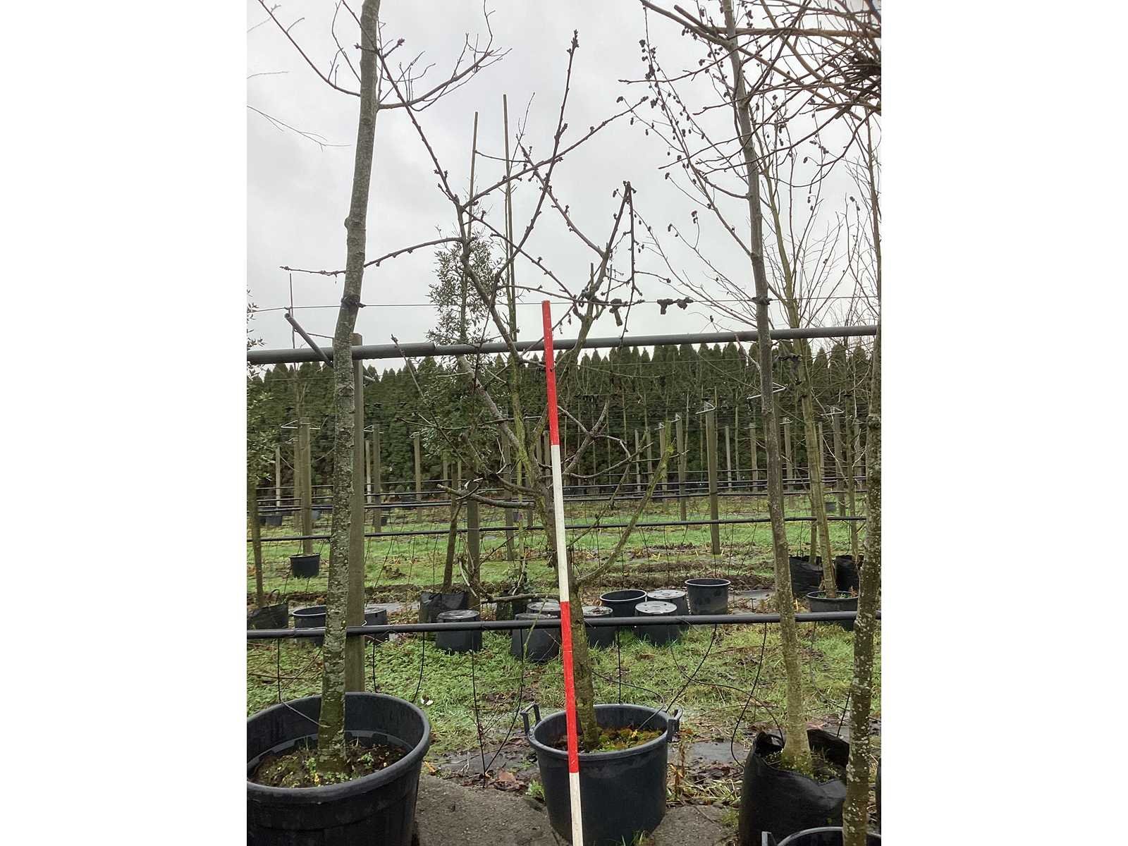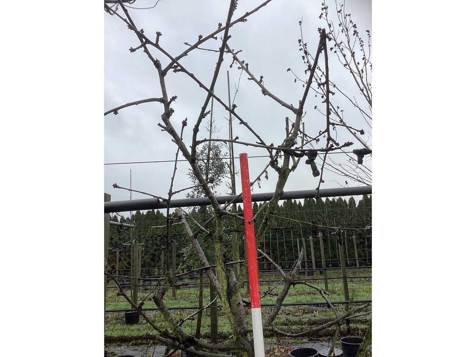 De kavels worden door ons verzameld en klaargelegd voor transport; Wilt u gebruik maken van de bezorgservice neem dan contact op via het emailadres arina@groviatrees.com. Als tip, de bomen zitten nu in de winterrust dus wilt u graag weten wat de zomer- en de herfstkleuren zijn, kijk dan op internet daar staan hele mooie voorbeelden van de bomen. Voor overige vragen bel 0645641495 of 0633049344 Type: Zoete kersenboom Latijnse benaming: Prunus kordia Hoogte ca.: 350cm In pot: true Stamdikte: 16cm