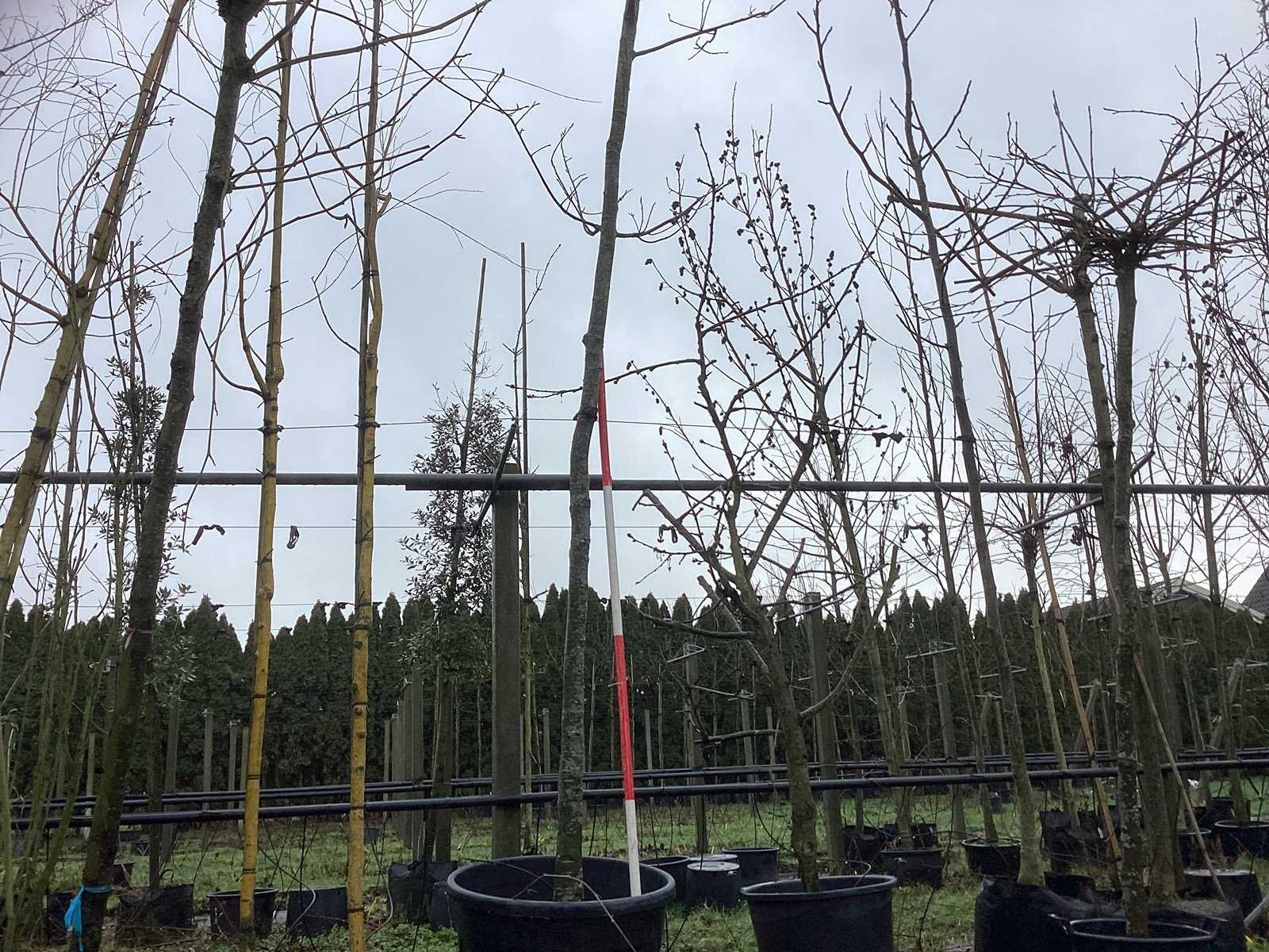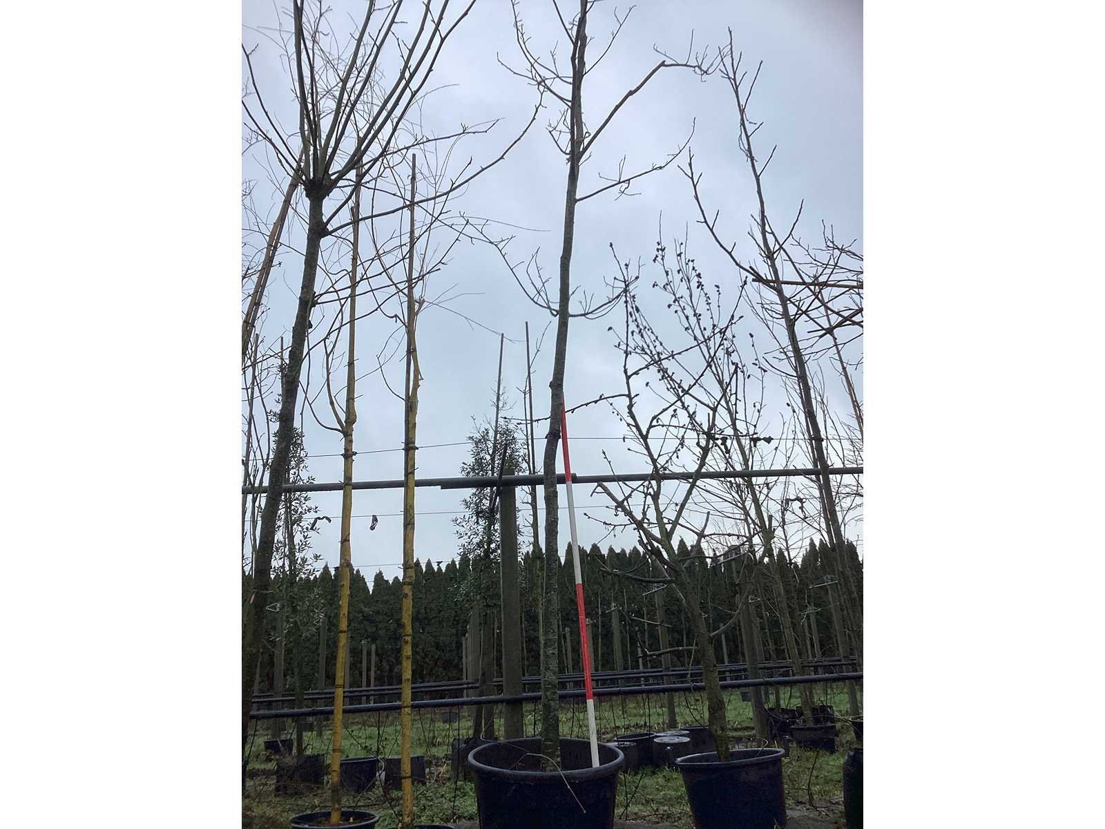 De kavels worden door ons verzameld en klaargelegd voor transport; Wilt u gebruik maken van de bezorgservice neem dan contact op via het emailadres arina@groviatrees.com. Als tip, de bomen zitten nu in de winterrust dus wilt u graag weten wat de zomer- en de herfstkleuren zijn, kijk dan op internet daar staan hele mooie voorbeelden van de bomen. Voor overige vragen bel 0645641495 of 0633049344 Type: Zomereik Latijnse benaming: Quercus palustris Hoogte ca.: 600cm In pot: true Stamdikte: 20cm
