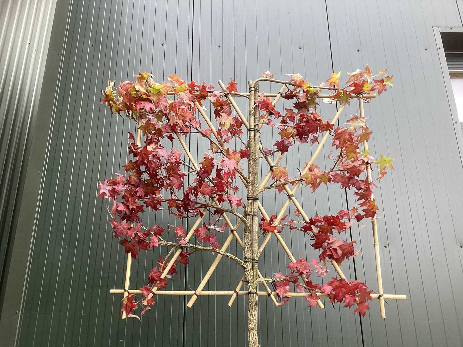 De kavels worden door ons verzameld en klaargelegd voor transport; Wilt u gebruik maken van de bezorgservice neem dan contact op via het emailadres arina@groviatrees.com. Als tip, de bomen zitten nu in de winterrust dus wilt u graag weten wat de zomer- en de herfstkleuren zijn, kijk dan op internet daar staan hele mooie voorbeelden van de bomen. Voor overige vragen bel 0645641495 of 0633049344 Type: Amberboom Latijnse benaming: Liquidambar styraciflua Hoogte ca.: 300cm In pot: true Stamdikte: 10cm