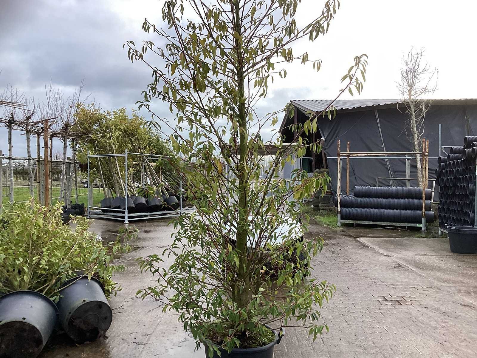 De kavels worden door ons verzameld en klaargelegd voor transport; Wilt u gebruik maken van de bezorgservice neem dan contact op via het emailadres arina@groviatrees.com. Als tip, de bomen zitten nu in de winterrust dus wilt u graag weten wat de zomer- en de herfstkleuren zijn, kijk dan op internet daar staan hele mooie voorbeelden van de bomen. Voor overige vragen bel 0645641495 of 0633049344 Type: Portugese Laurier Latijnse benaming: Prunus l. Angustifolia Hoogte ca.: 250cm In pot: true Stamdikte: 18cm