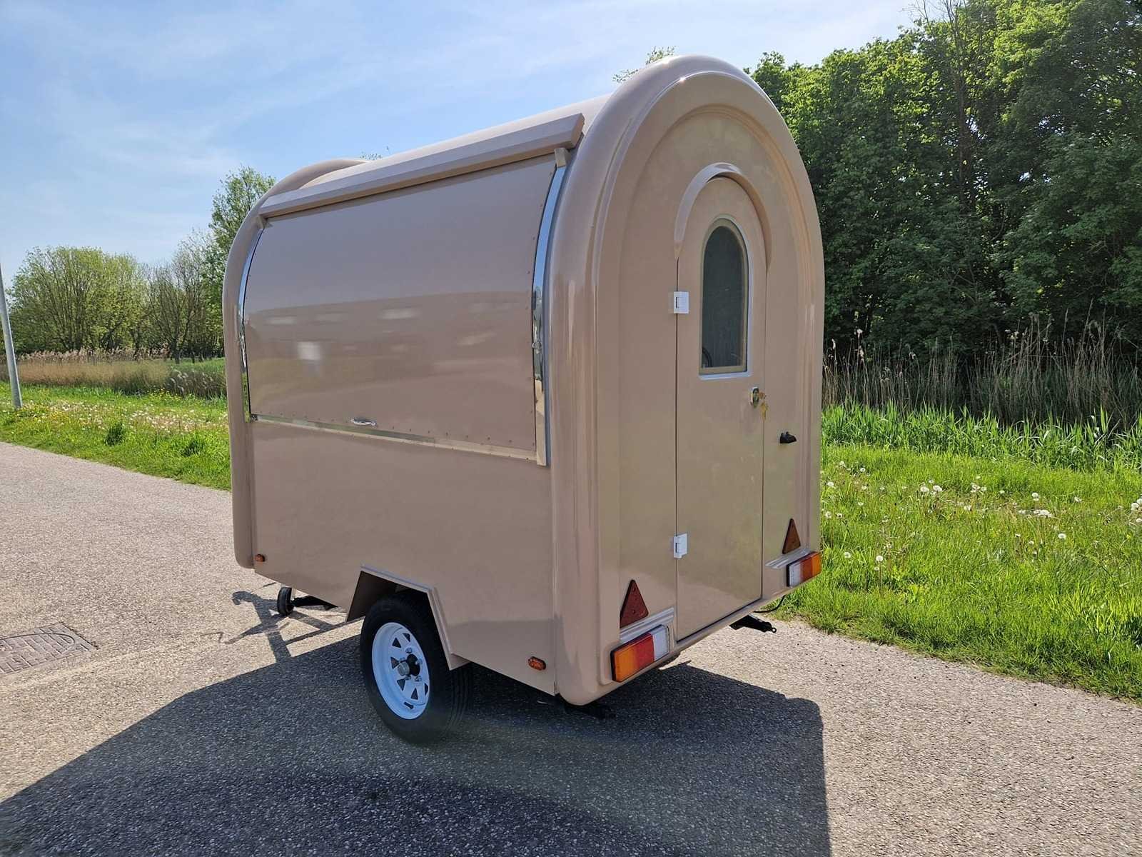 Beige foodtruck met ledverlichting, rvs inbouwkeuken / werkbank, koelkast, groepenkast, stabilisatiepoten. Afmetingen en gewicht: Lengte: 220 cm (cabine), totaal 320 cm Breedte: 160 cm Hoogte: 230 cm Gewicht: 550 KG Bouwjaar: 2025 Aantal assen: 1 Ledig gewicht: 550kg Hoogte: 230cm Lengte: 320cm Breedte: 160cm