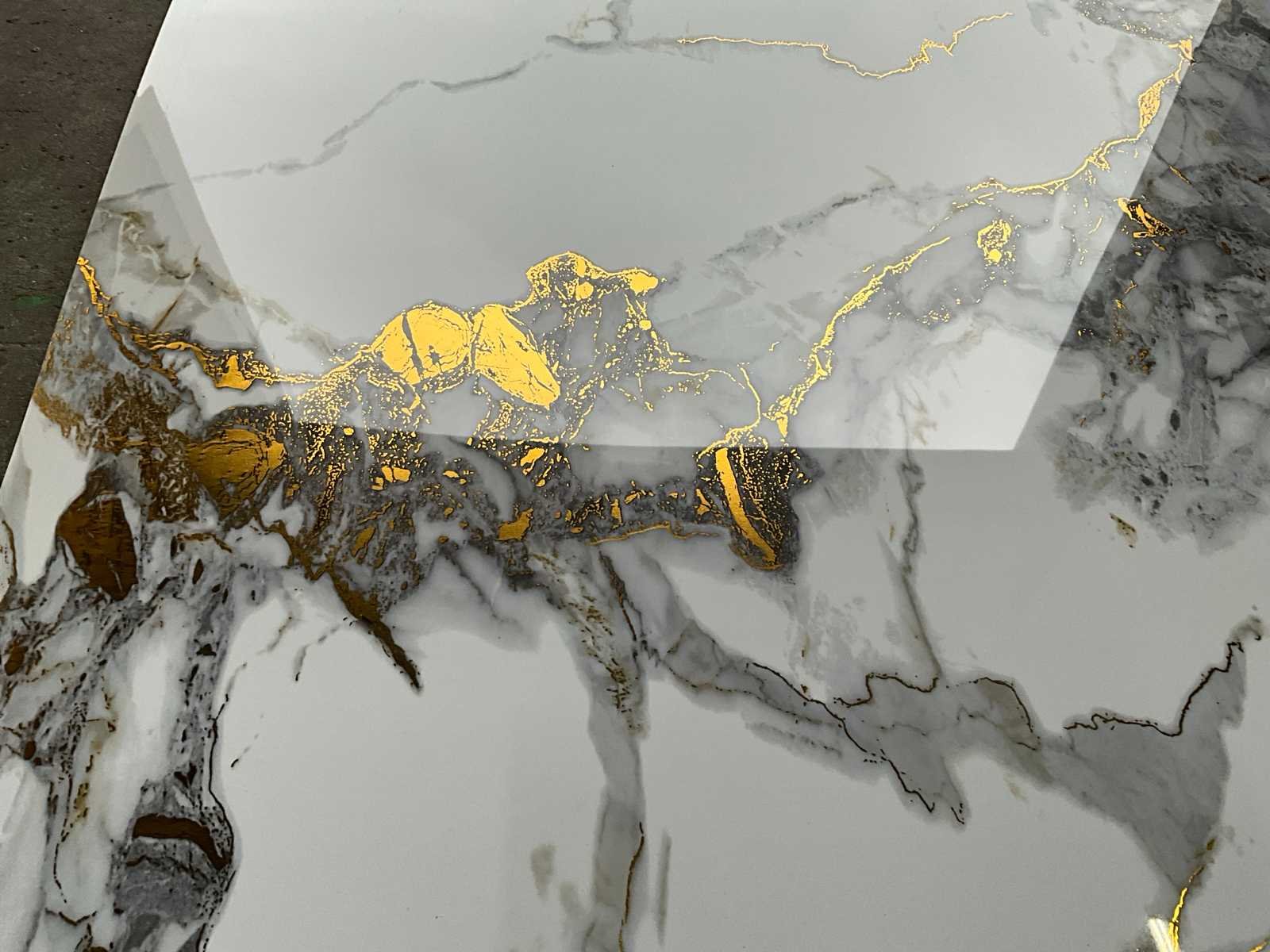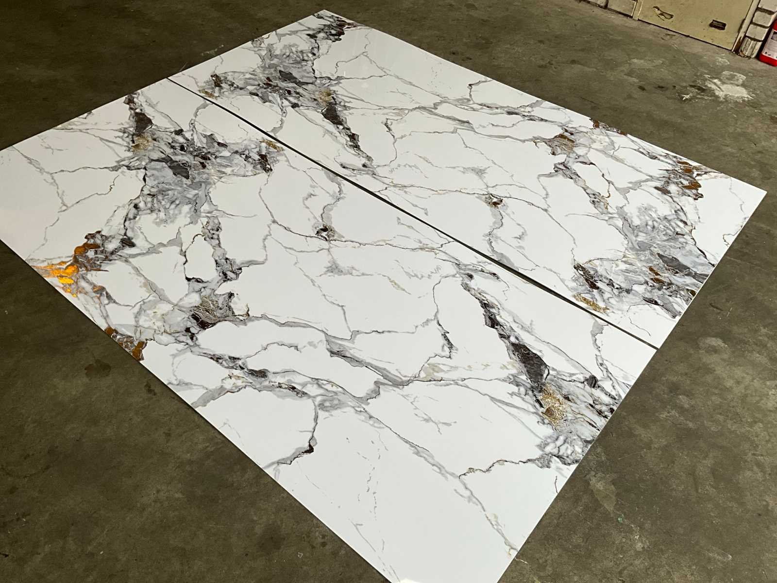 5x Pvc Marmer look paneel, met gouden ader, Geschikt voor; badkamers, toiletruimte,keuken of cinewall. eenvoudig snijbaar met mes, ongebruikt Product type: Pvc wit/ goud Lengte: 280cm Breedte: 122cm