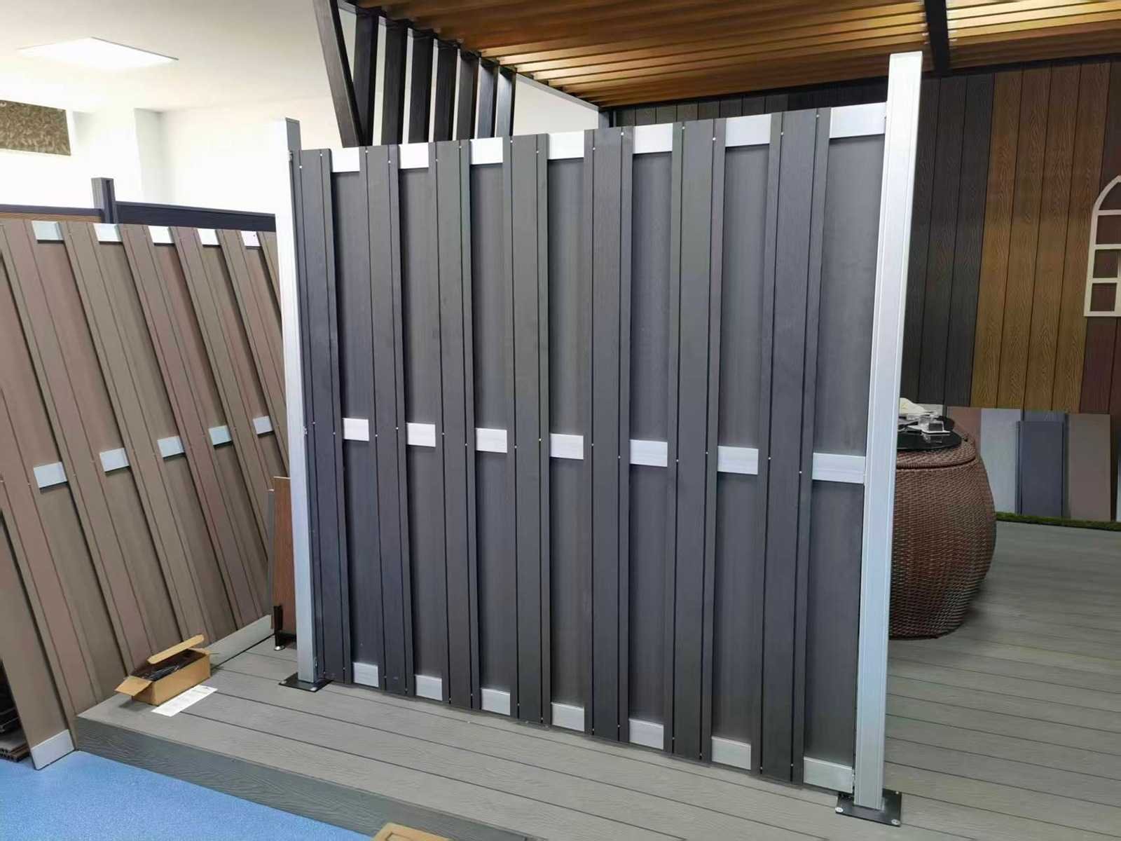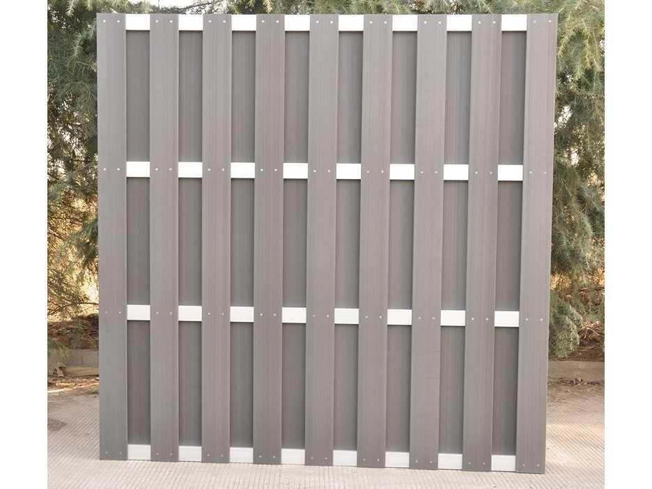 Set van 10 schutting delen van 180 x 200 cm, 11 aluminium palen 7x7x270 cm, inclusief T beugelset. palen kunnen worden ingekort of in de grond door middel van snel beton, binnen in paal voorzien van hout, geen voet voor palen, ongebruikt Merk: Topline Product type: Composiet Kleur: Antraciet Lengte: 180cm Breedte: 3cm Hoogte: 200cm