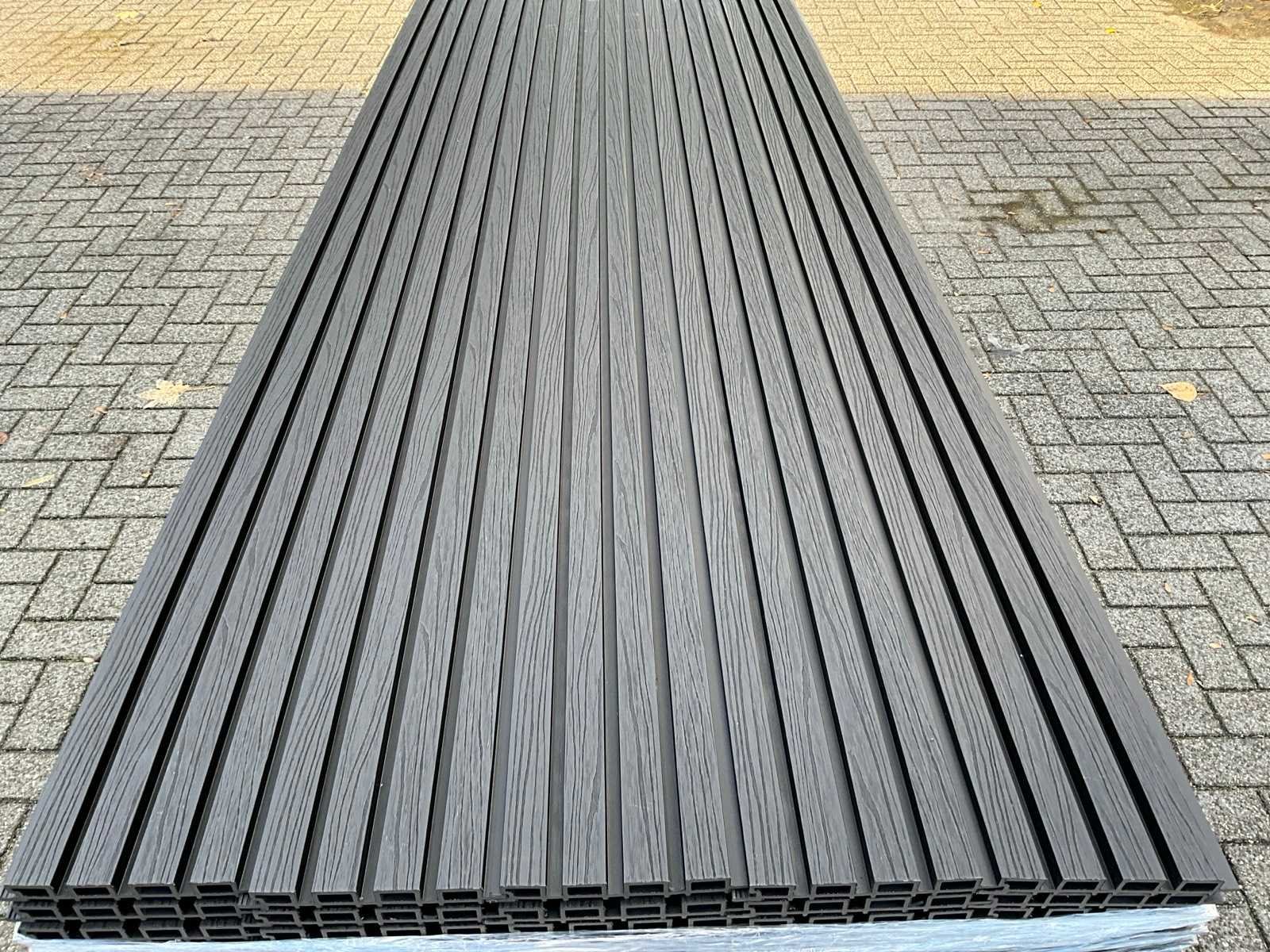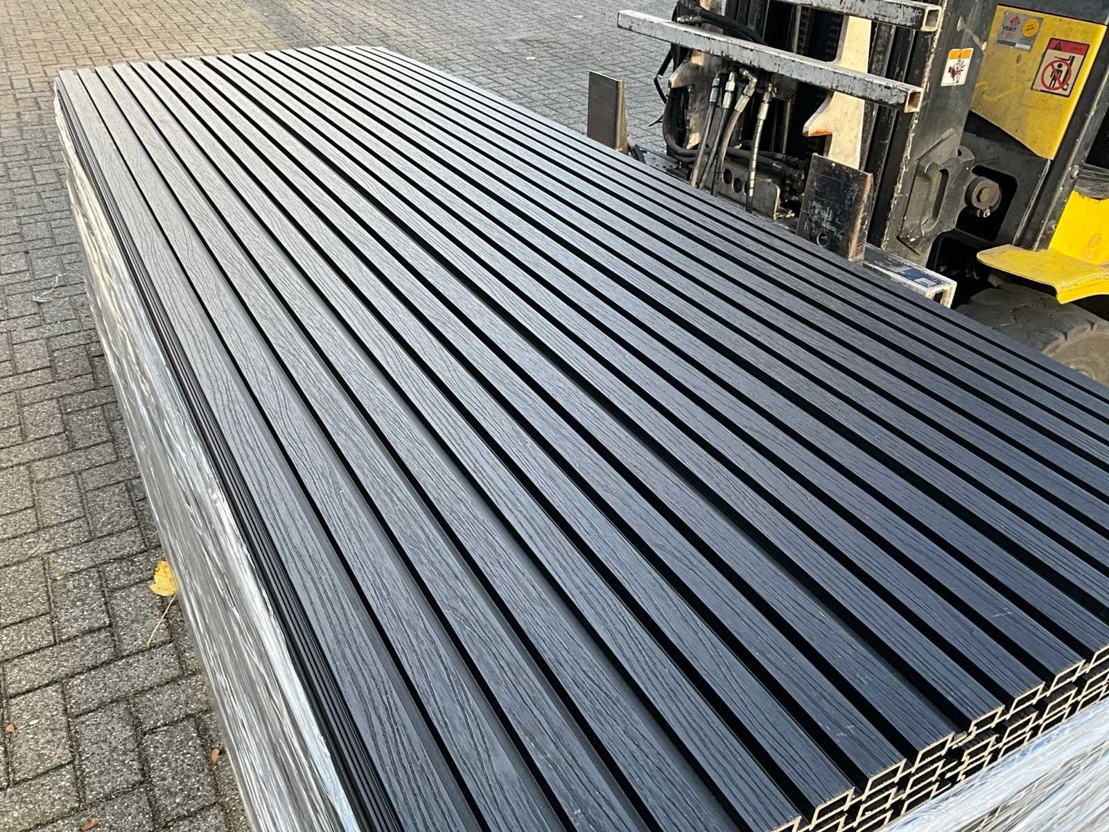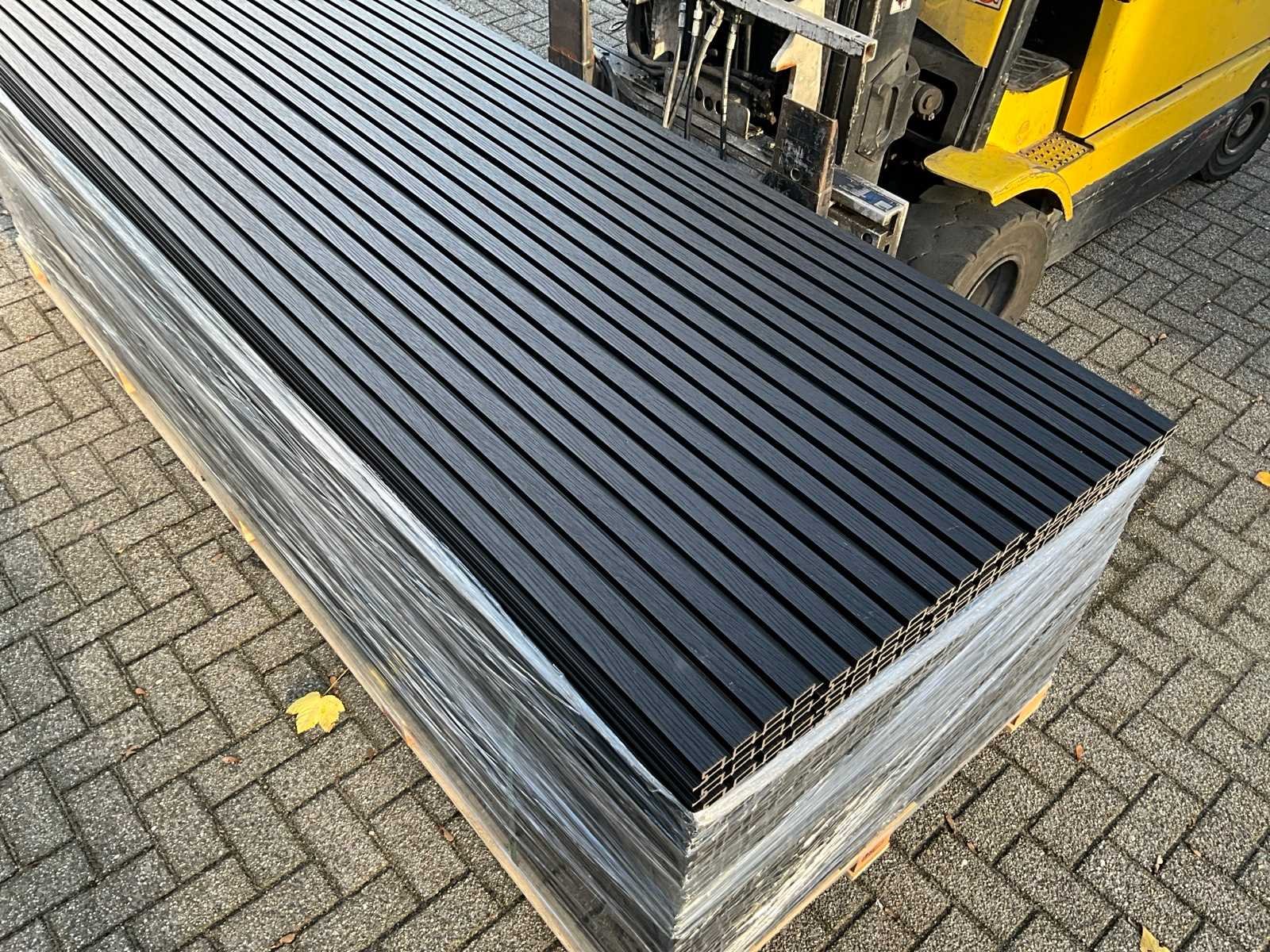 50 panelen van 290 x 21,9 cm, werkende breedte; 20cm, kleur; zwart, voorzien van Co extrusion, extra lange levensduur en kleur behoud, 50 panelen is circa een werkende 29 m2 oppervlakte. Product type: composiet