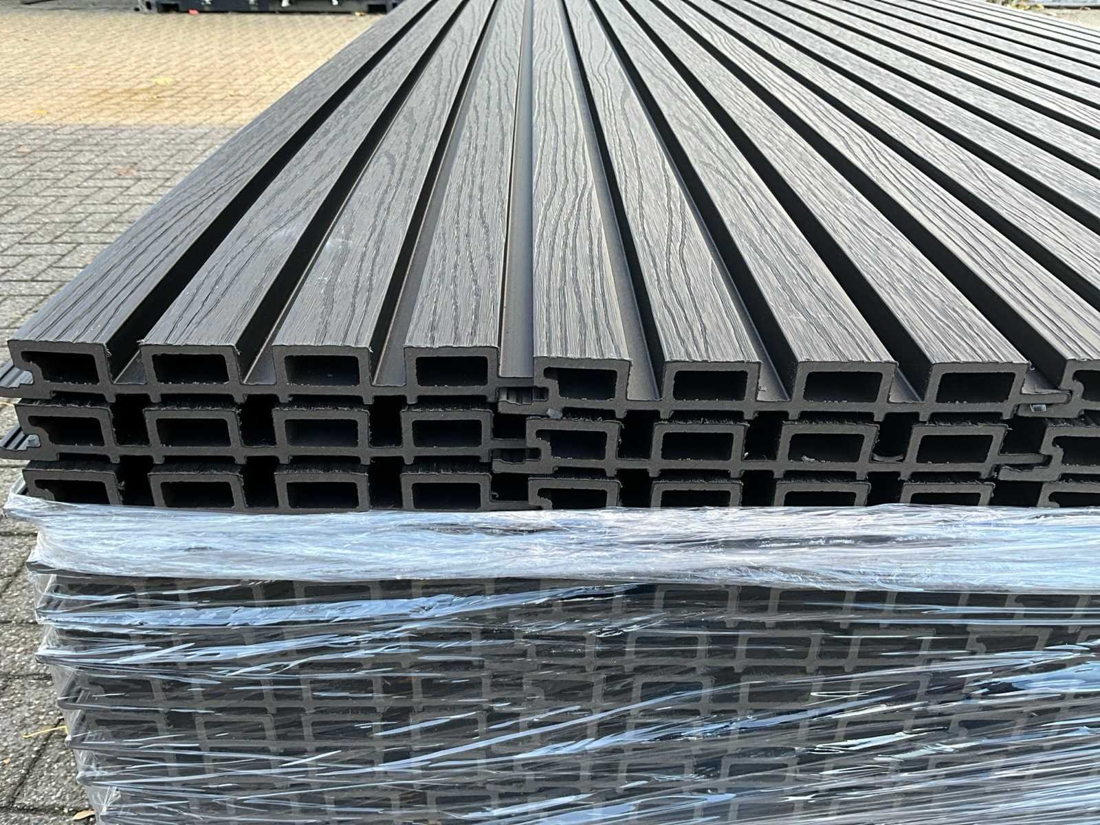 50 panelen van 290 x 21,9 cm, werkende breedte; 20cm, kleur; zwart, voorzien van Co extrusion, extra lange levensduur en kleur behoud, 50 panelen is circa een werkende 29 m2 oppervlakte. Product type: composiet