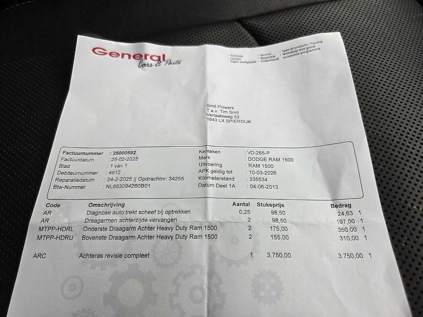 Kenteken: VD-265-P Merk: Dodge Model: Ram 1500 Type: 5.7 V8 4x4 QC 6'4 Bouwjaar: 2013 Afgelezen kilometerstand: 348680km Cilinderinhoud: 5654cc Vermogen (kW): 295kW Brandstof: Benzine\LPG Laadvermogen: 524kg Datum eerste toelating: 2013-06-04 Datum eerste toelating (NL): 2013-06-04 APK vervaldatum: 2026-11-25 Vermogen (pk): 401hp Aantal zitplaatsen: 5 Kleur: niet van toepassing Gasinstallatie: true Emissieklasse: 5 Ledig gewicht: 2560kg Bruto BPM (NL): 11413€ Aantal cilinders: 8 Carrosserie: pick-up truck Nationaliteit documenten: NL Carfax Link: https://was.carfax.eu/v0/api/ccdid/5100016408/svc/201/vinreg/VD265P/checksum/eyJhbGciOiJIUzI1NiIsInR5cCI6IkpXVCJ9.eyJleHAiOjE3NzE2NzM5Mjh9.UwlD8t6KikxPFfEVYK7vxQG4GS8KMPaFrDN5v_LhgiE