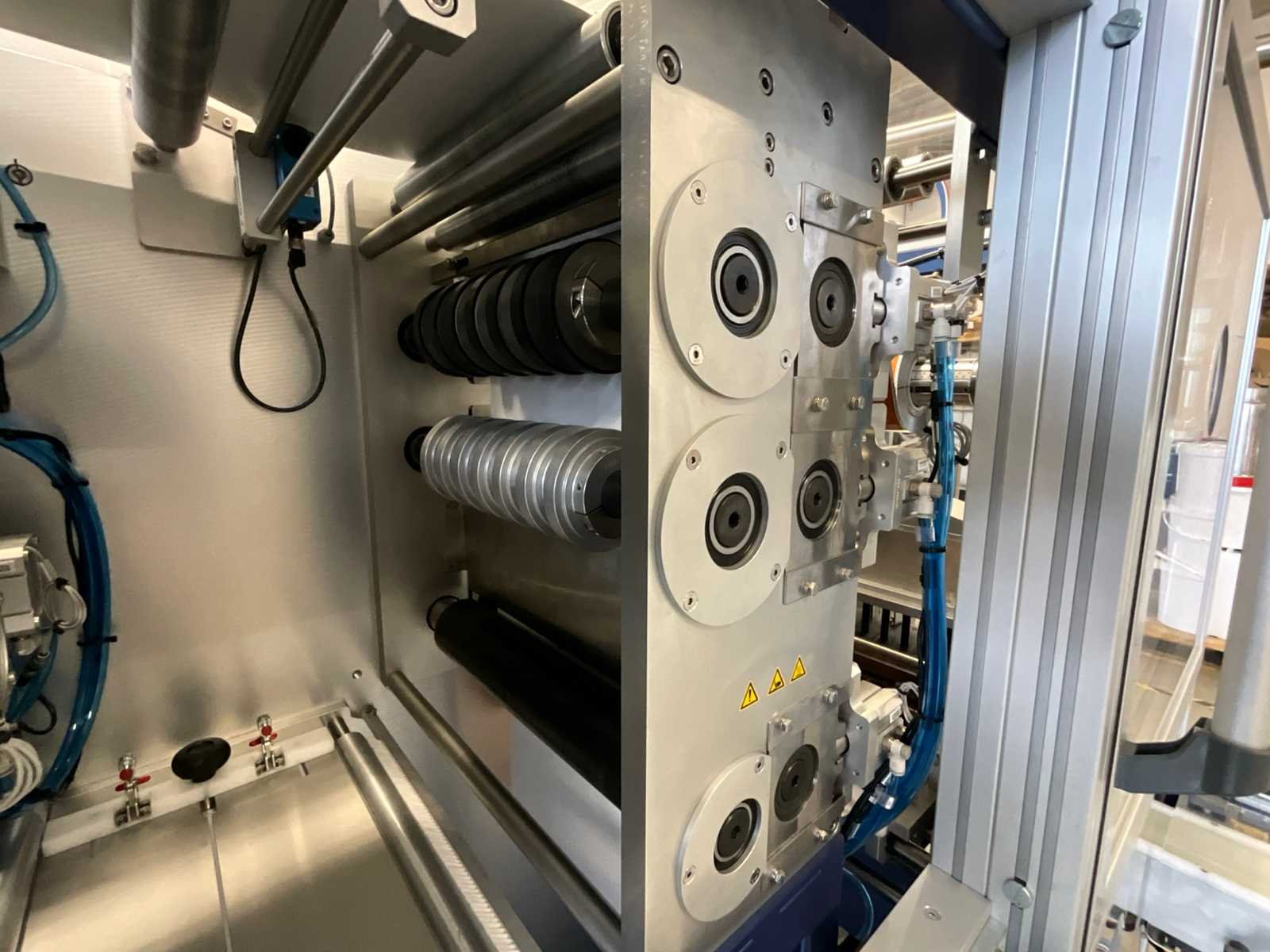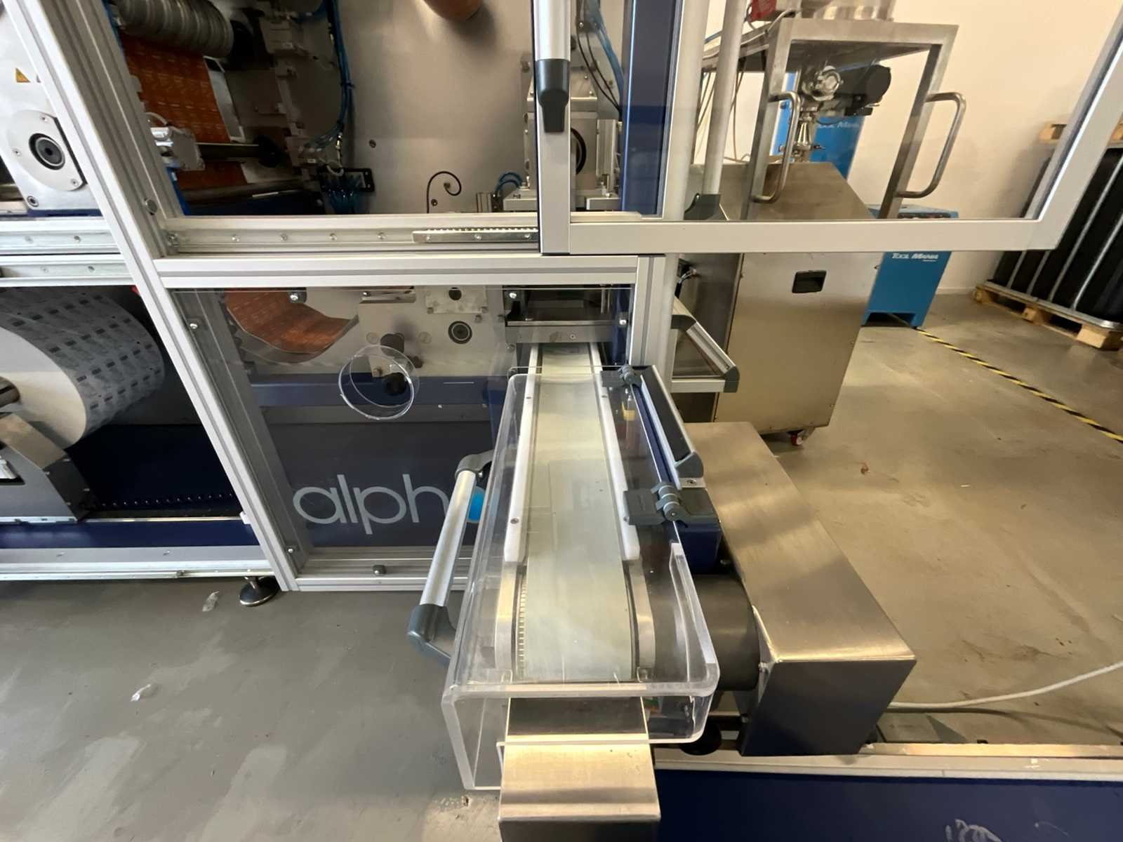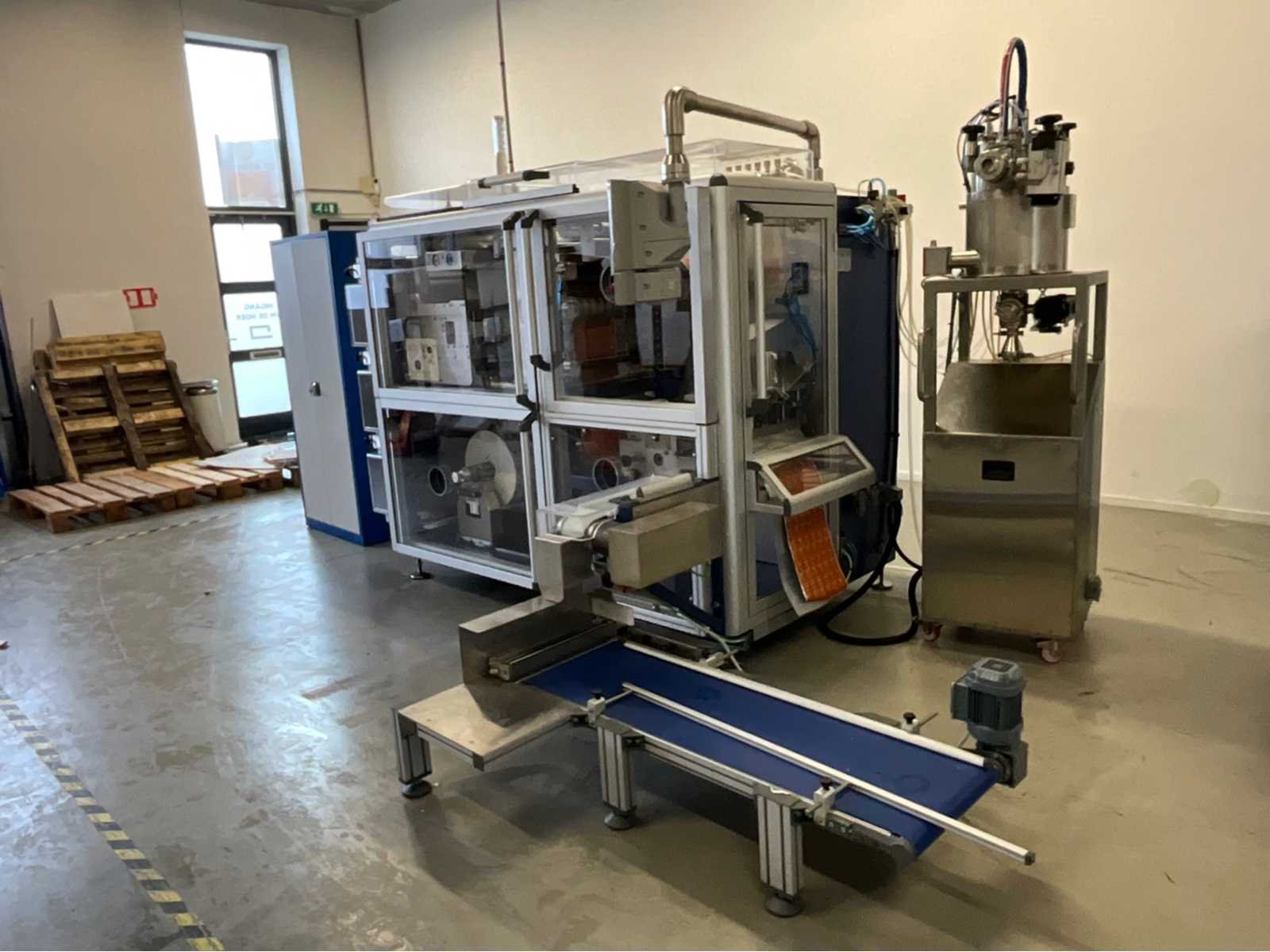 Vulvolume van circa 0,2 ml tot circa 38 ml. Voorzien van 6 koppen. Capaciteit circa 16000 verpakkingen per uur. Rolbreedte 400 mm. Voorzien van geautomatiseerd 15 liter RVS “Alva” drukvat met verwarming. Inclusief Rittal SK 3368.415 schakelkast voorzien van koeling en kast met machinetoebehoren en gebruiksaanwijzing. Merk: V-Shapes Type: Alpha Bouwjaar: 2021 Serienummer: AP.124 Aansluiting: 400V Eigen gewicht: 2874kg Totale afmeting L: 2500mm Totale afmeting Breedte: 2000mm Totale afmeting Hoogte: 2000mm