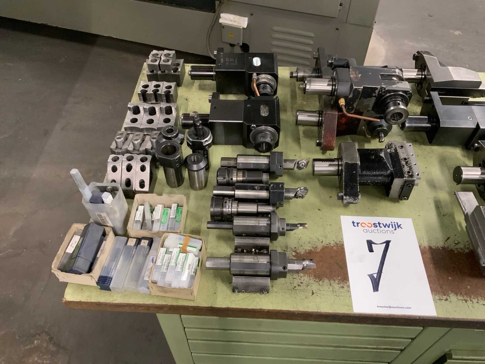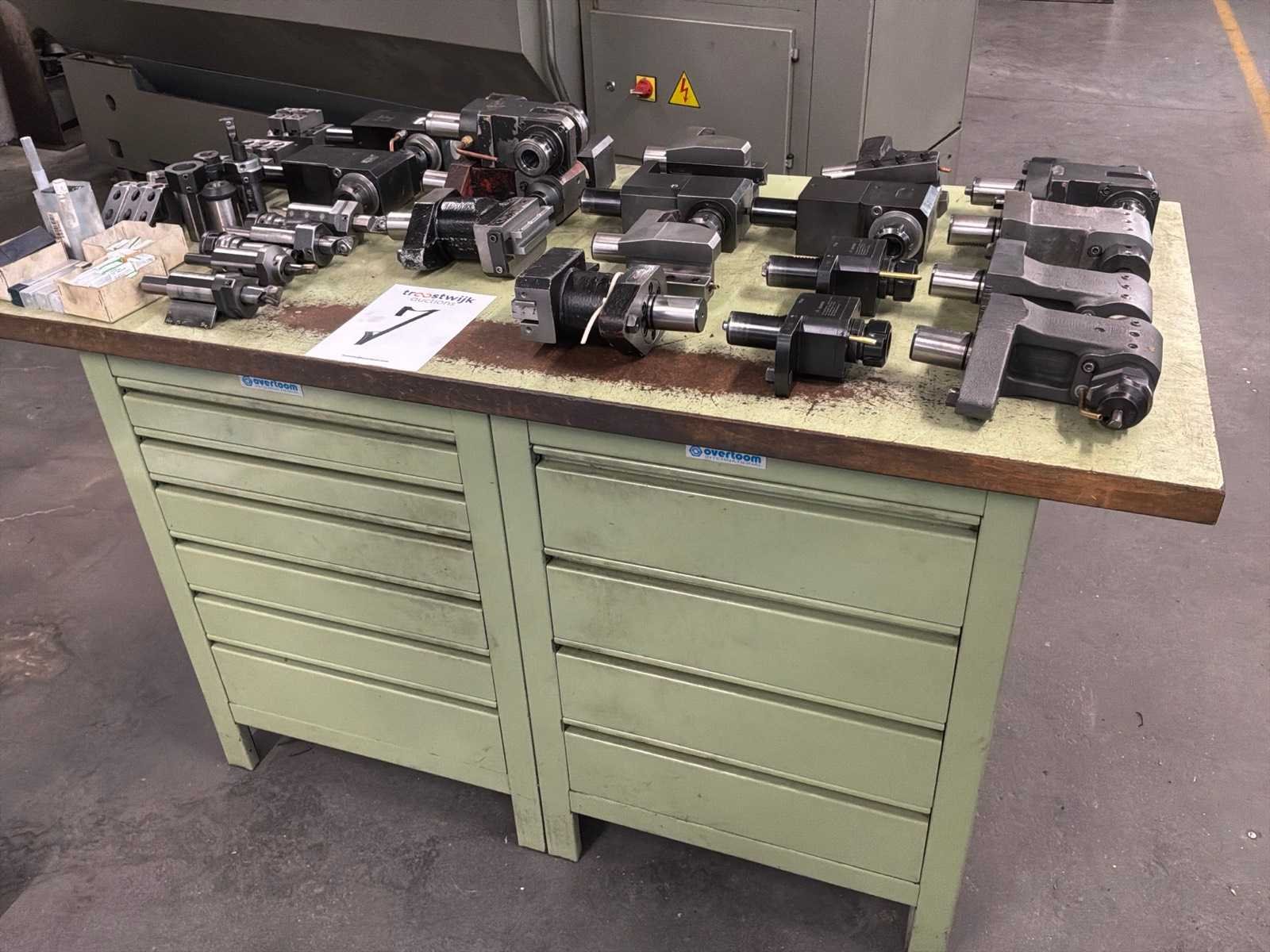 Waaronder: haakse aandrijvingen, draaibeitels, spantangen, zachte bekken. Inclusief Overtoom ladenkast Lengte: 150cm Breedte: 75cm Hoogte: 86cm