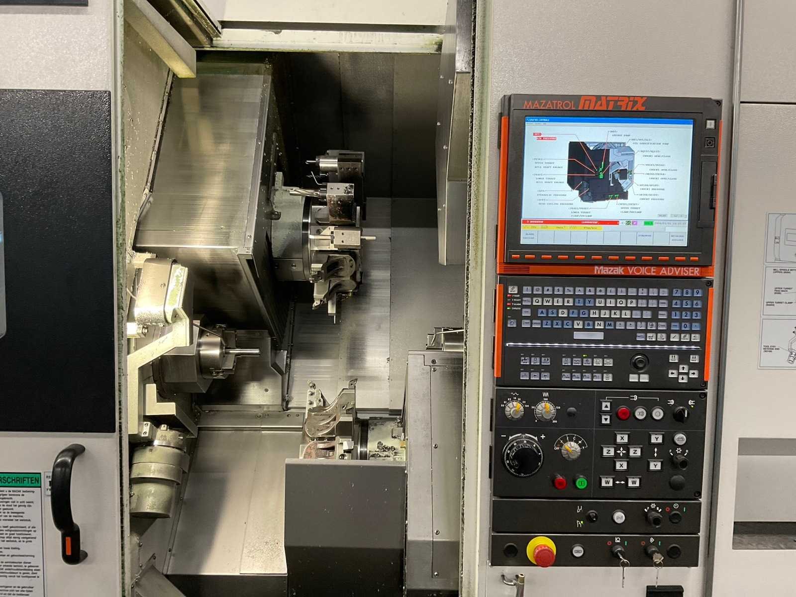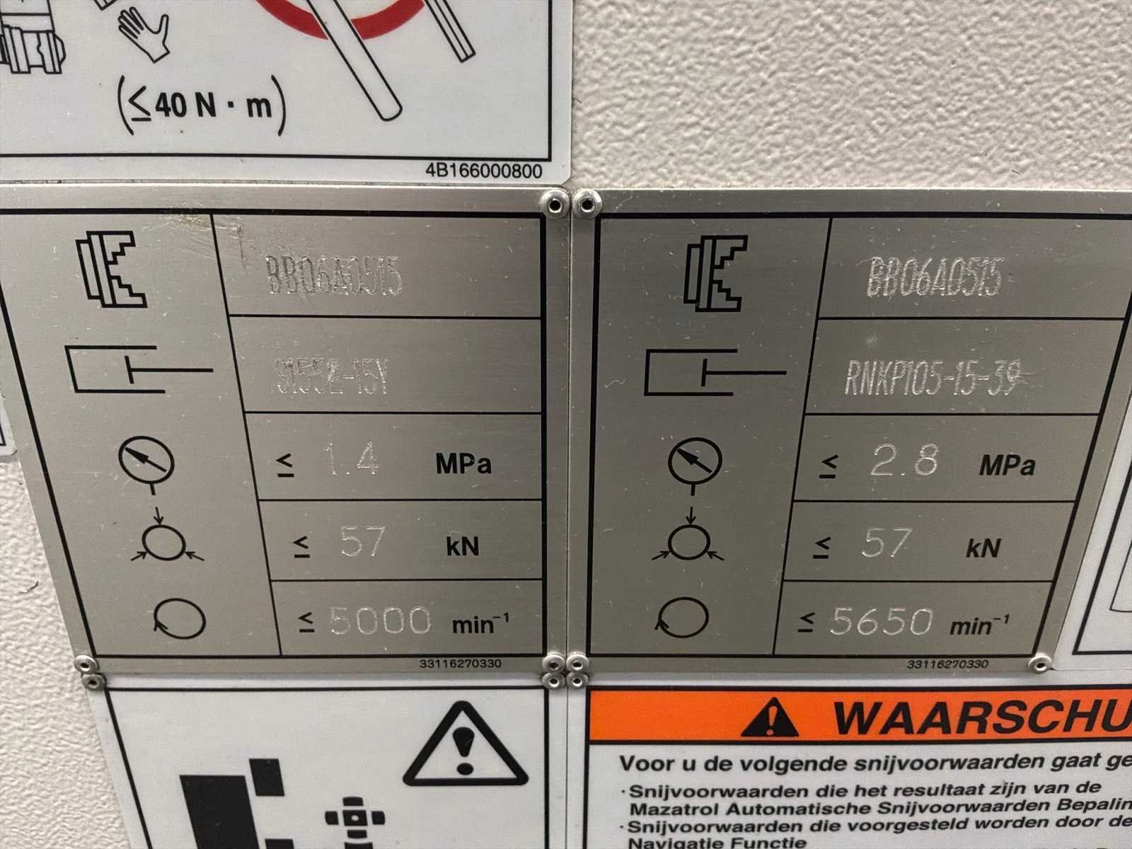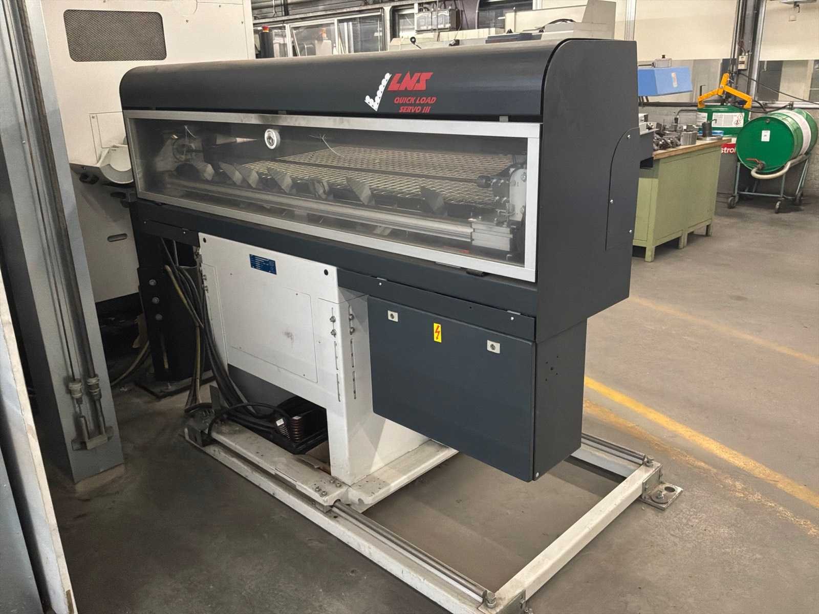 (2x) 12-voudige gereedschapswisselaar, inclusief 1 LNS Quick Load Servo III barfeeder, (2010) Maximum diameter: 120mm, Maximum staaflengte: 1600mm, Maximum staaf gewicht: 67kg, Laadtijd: 8-12 seconde. Merk: Mazak Type: Hyper Quadrex 150MSY Bouwjaar: 2009 Serienummer: 199444 Draai: 300mm Draailengte: 620mm Holle spil Ø: 65mm Snelheid tot n =: 6000rpm Aantal gereedschapwisselstations: 2 Koelmiddelpomp: true Spanentransporteur: true CNC-besturing, merk, type: Mazatrol Matrix Aansluiting: 380V Machinegewicht: 9000kg Afmeting l: 4100mm Afmeting b: 2500mm Afmeting h: 243mm