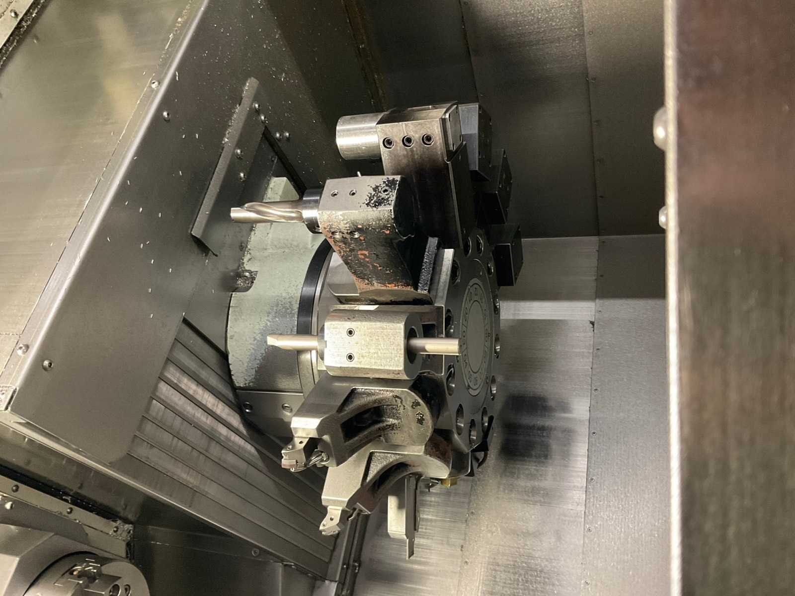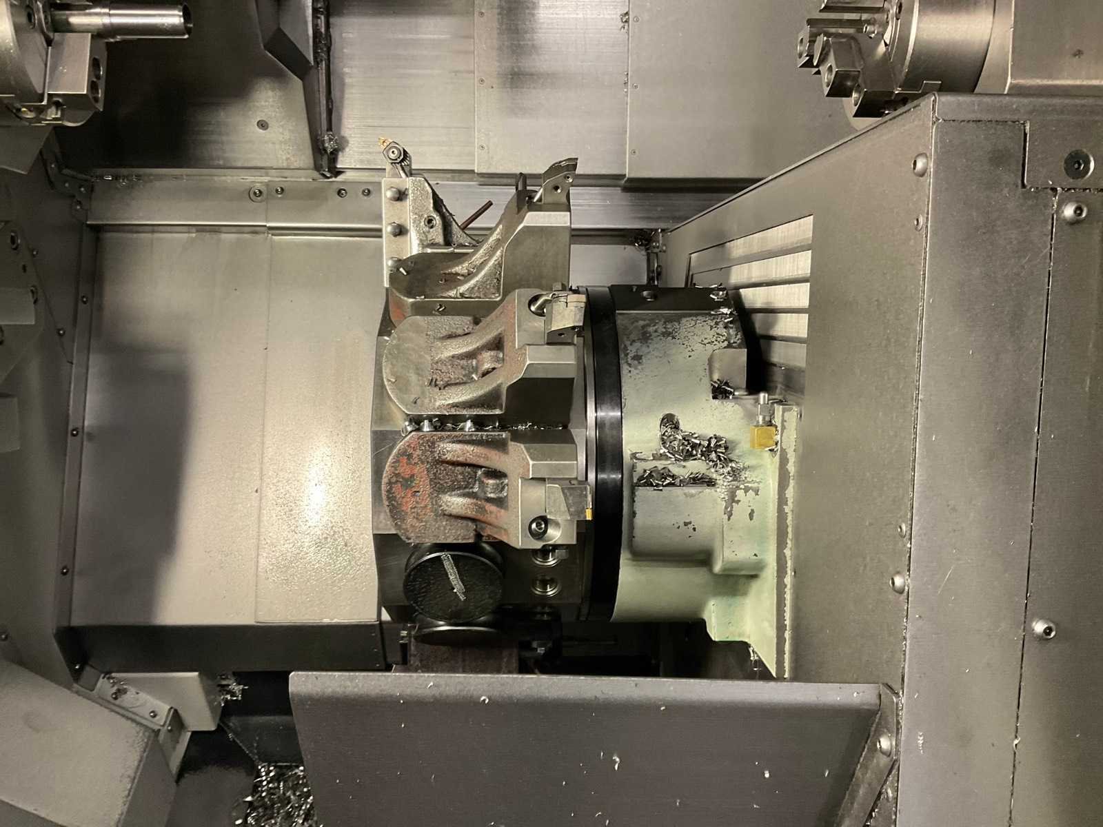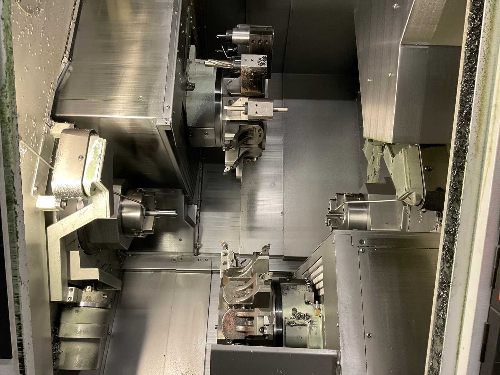 (2x) 12-voudige gereedschapswisselaar, inclusief 1 LNS Quick Load Servo III barfeeder, (2010) Maximum diameter: 120mm, Maximum staaflengte: 1600mm, Maximum staaf gewicht: 67kg, Laadtijd: 8-12 seconde. Merk: Mazak Type: Hyper Quadrex 150MSY Bouwjaar: 2009 Serienummer: 199444 Draai: 300mm Draailengte: 620mm Holle spil Ø: 65mm Snelheid tot n =: 6000rpm Aantal gereedschapwisselstations: 2 Koelmiddelpomp: true Spanentransporteur: true CNC-besturing, merk, type: Mazatrol Matrix Aansluiting: 380V Machinegewicht: 9000kg Afmeting l: 4100mm Afmeting b: 2500mm Afmeting h: 243mm
