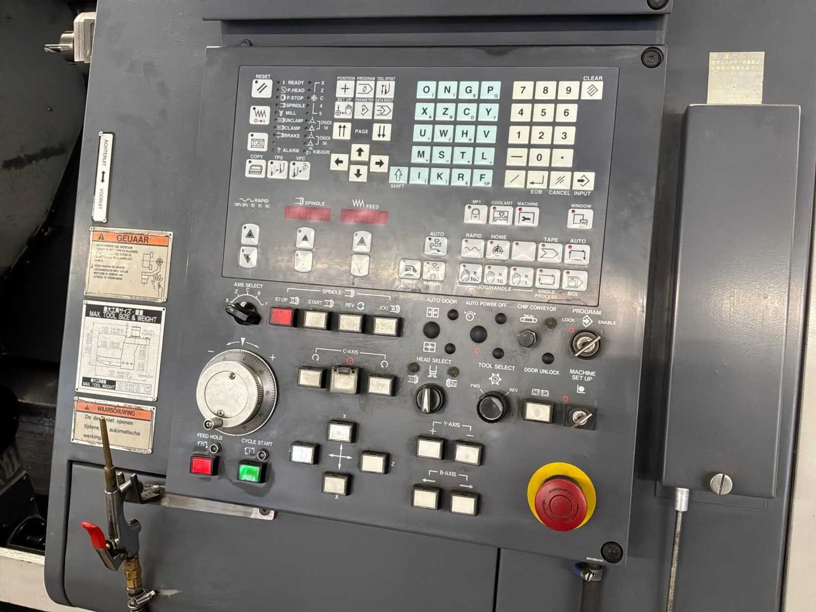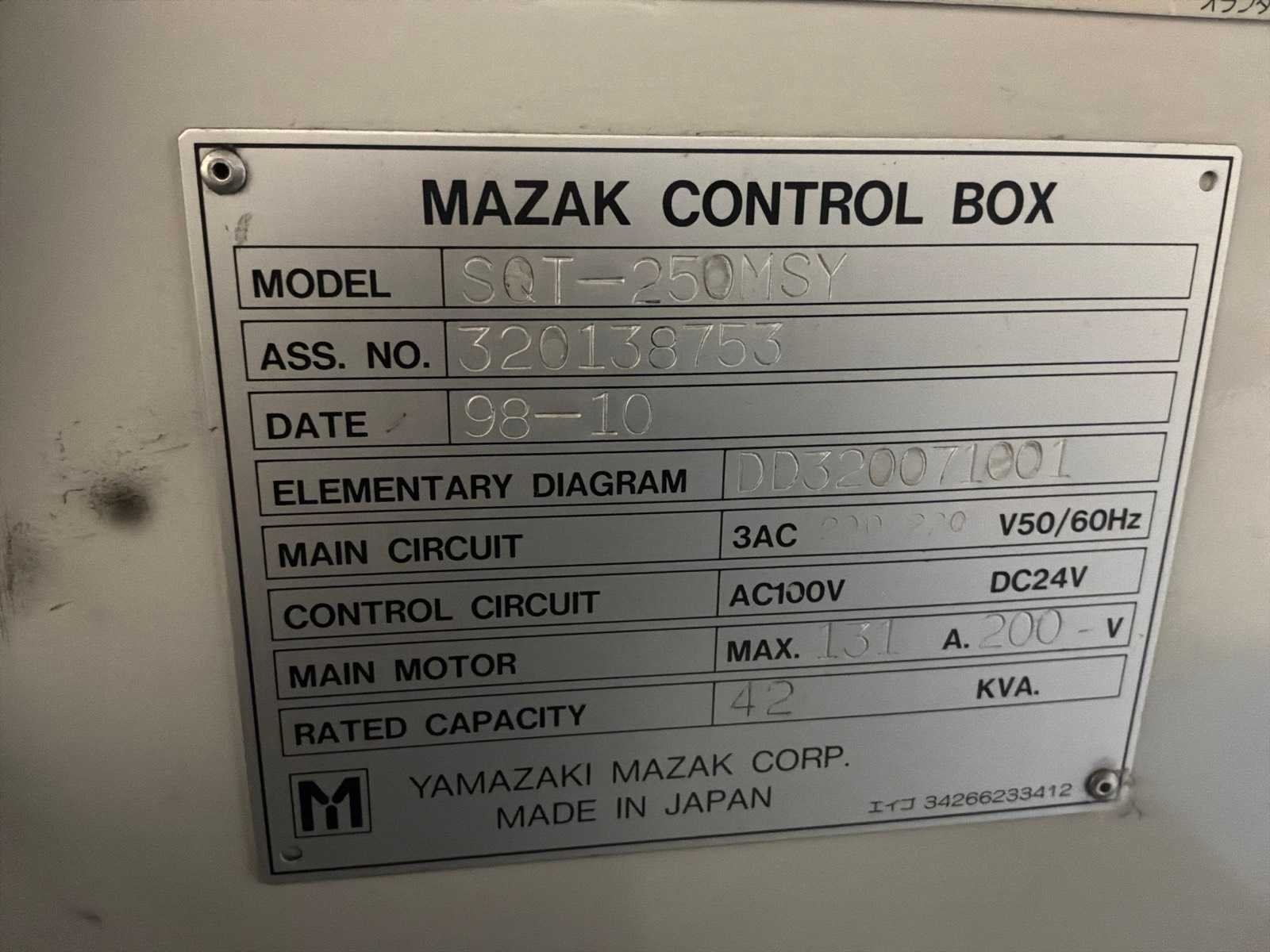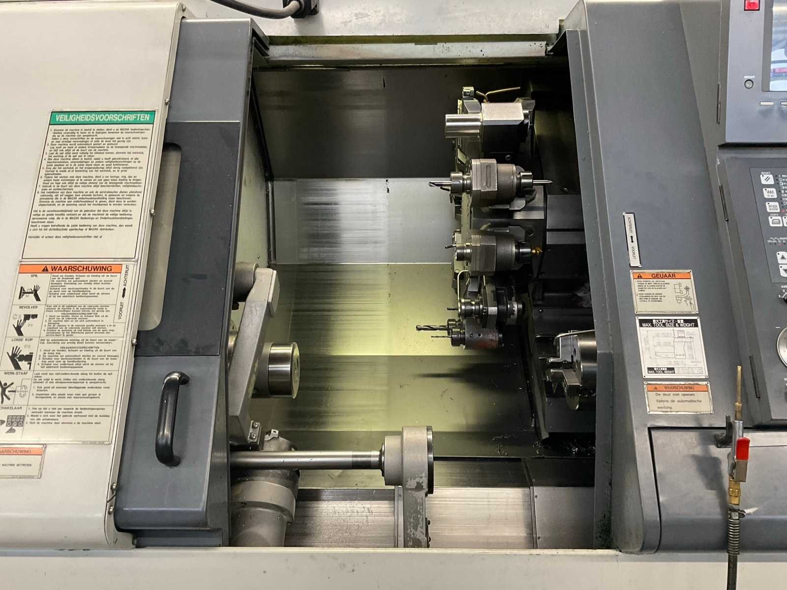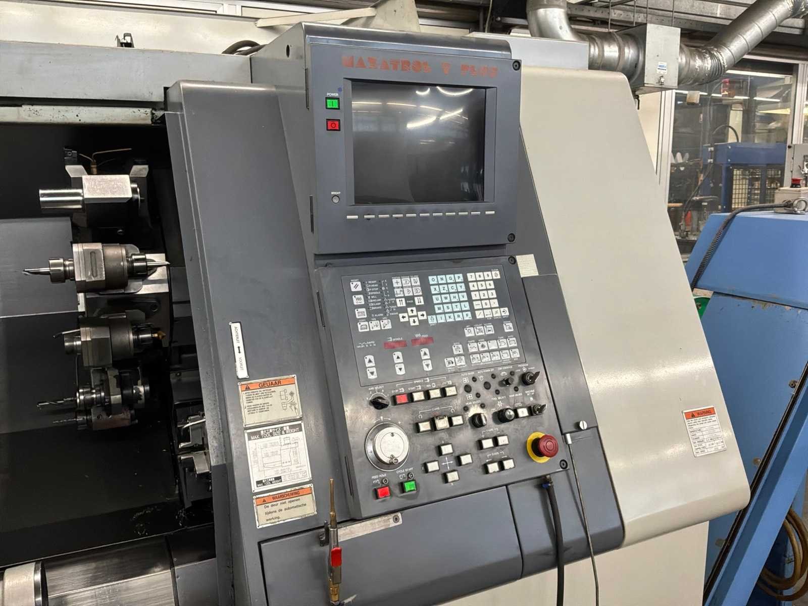Voorzien van 12 positie revolver gereedschapshouder, 1 LNS Quick Load Servo II Staf aanvoerapparaat (2000), cap ø min 6 / max. 120mm, lengte max. 1600mm, inclusief rek met toebehoren Merk: Mazak Type: Super Quick Turn 250 MSY Bouwjaar: 1998 Serienummer: 320138753 Draai: 525mm Draailengte: 600mm Koelmiddelpomp: true Spanentransporteur: true CNC-besturing, merk, type: Matrasol T Plus Aansluiting: 400V Afmeting l: 4300mm Afmeting b: 1900mm Afmeting h: 2200mm