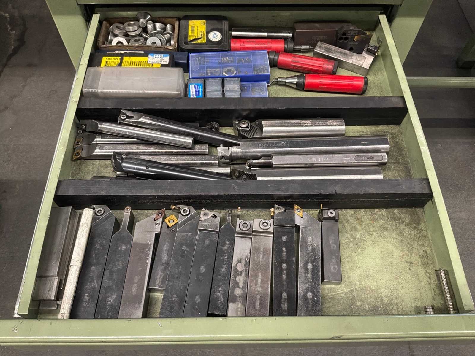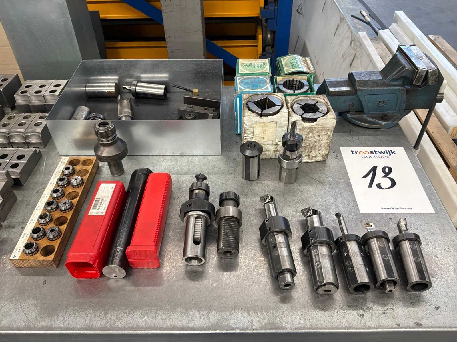 Waaronder: zachte bekken, VDI-40 gereedschapshouders, spantangen, draaibeitels. inclusief 1 Overtoom werkbank met inhoud
