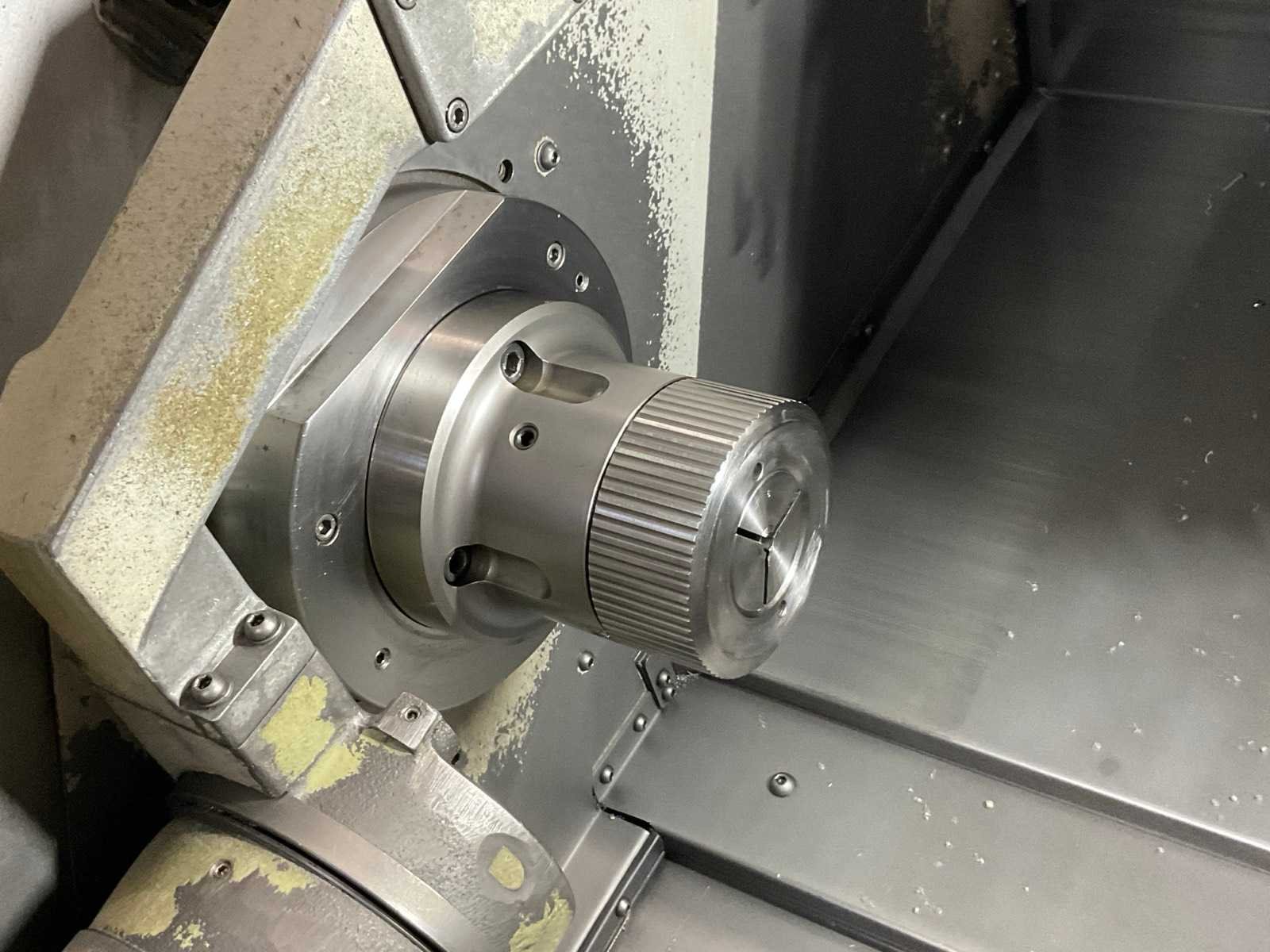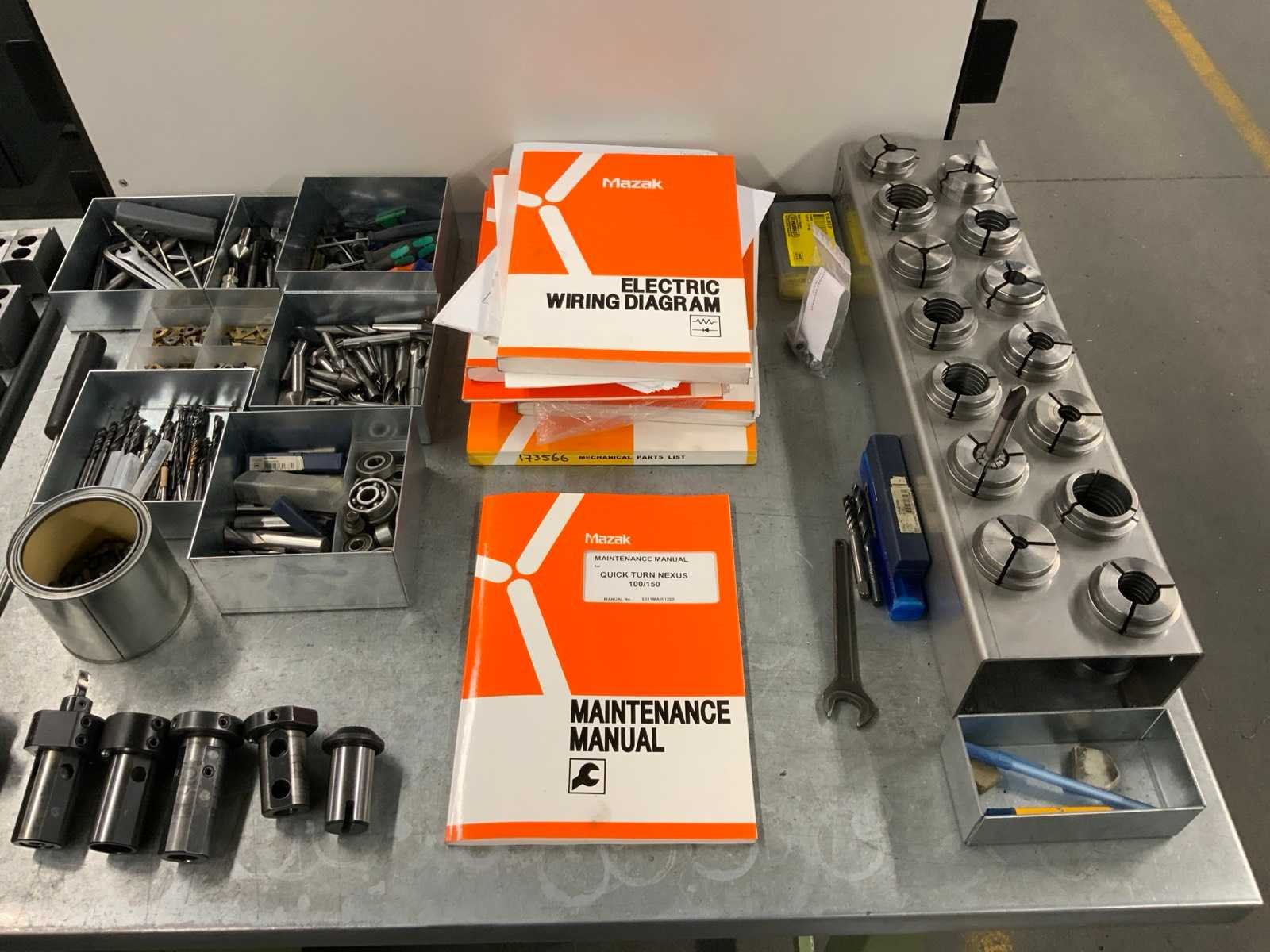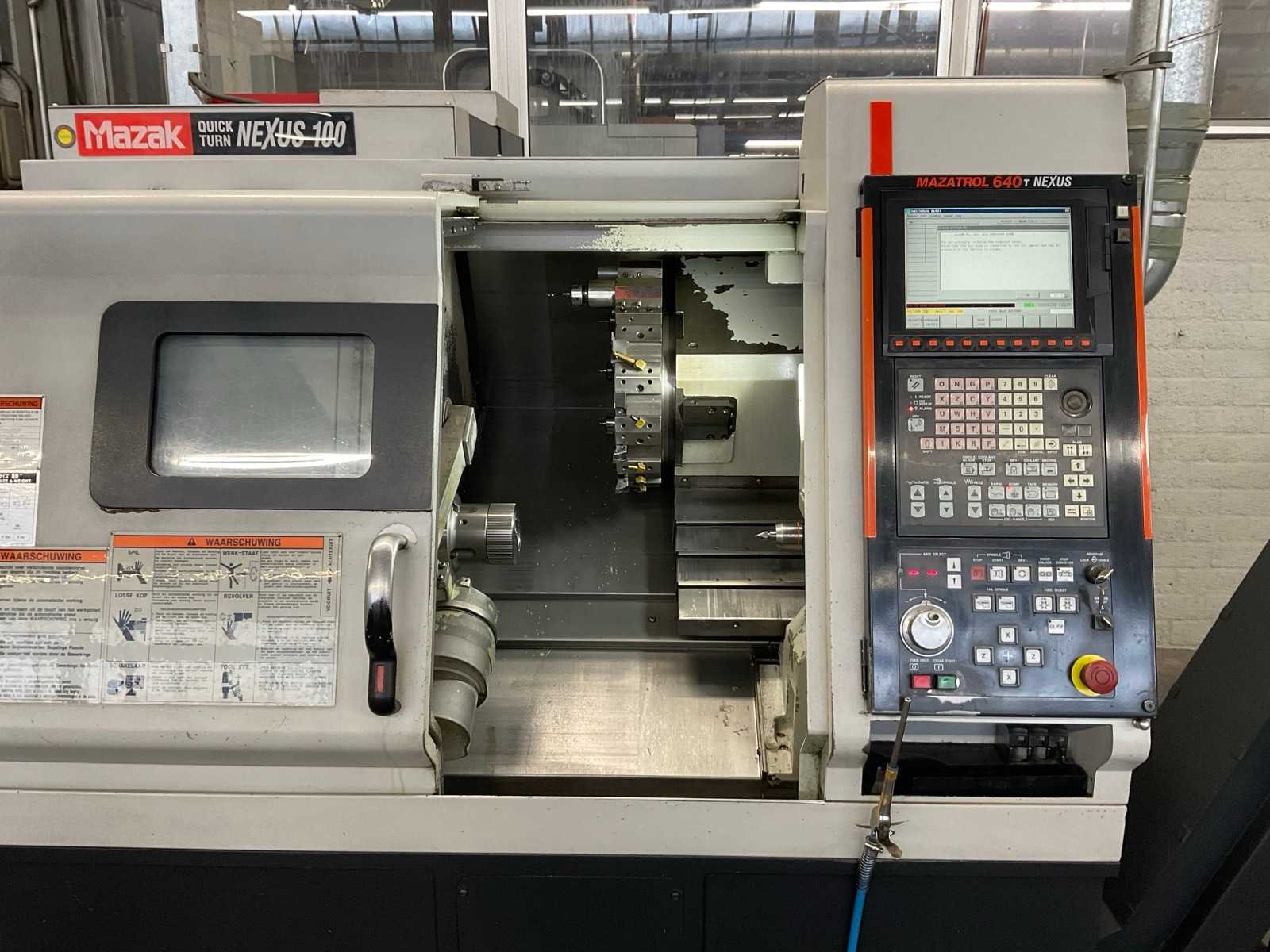 V.v. 12 positie revolver gereedschapshouder, inclusief werkbank met diverse toebehoren Merk: Mazak Type: QUICK Turn Nexus 100 Bouwjaar: 2004 Serienummer: 173566 Draai: 309mm Draailengte: 300mm Snelheid tot n =: 6000rpm Spanentransporteur: true CNC-besturing, merk, type: Matrasol 640T Nexus Aansluiting: 400V Machinegewicht: 3500kg Afmeting l: 2820mm Afmeting b: 1650mm Afmeting h: 1750mm