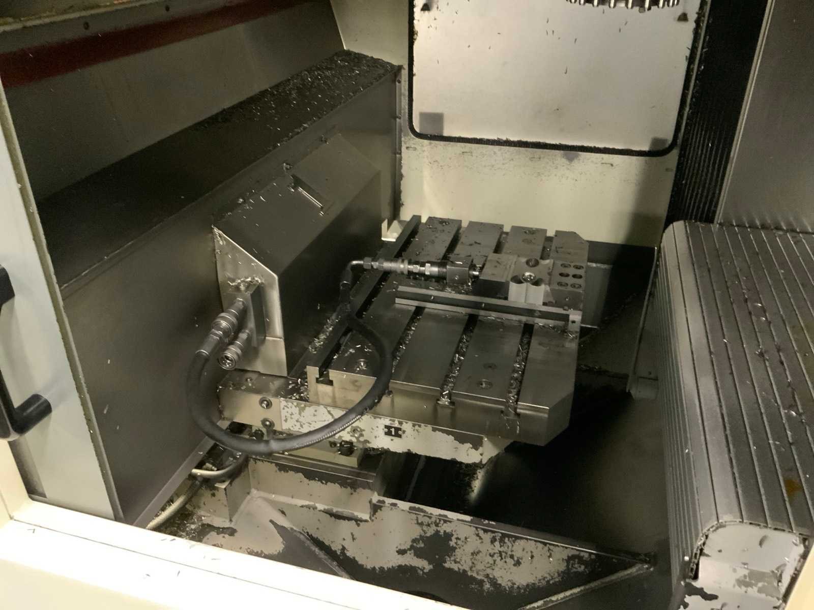 V.v. 20-voudige carroussel gereedschapswisselaar, palletwisselaar, “Knoll” hogedruk koelinstallatie; “Knoll” spanentransporteur en rek met 14 gereedschapshouders en 3D taster. handboeken aanwezig Merk: Chiron Type: FZ 15 W High Speed Bouwjaar: 2002 Serienummer: 146-14 Opname iso: 40 Verplaatsing x-as: 550mm Verplaatsing y-as: 400mm Verplaatsing z-as: 425mm Snelheid tot n =: 10500rpm CNC-besturing, merk, type: Fanuc; type 18i-M Spanentransporteur: true Koelmiddelpomp: true T-gleuf opspantafelafmeting B: 400mm T-gleuf opspantafelafmeting L: 660mm -assig: 4 Motorvermogen (kW): 14kW Aansluiting: 400V Totale afmeting Hoogte: 2850mm Totale afmeting Breedte: 2200mm Totale afmeting L: 3700mm Machinegewicht: 7820kg