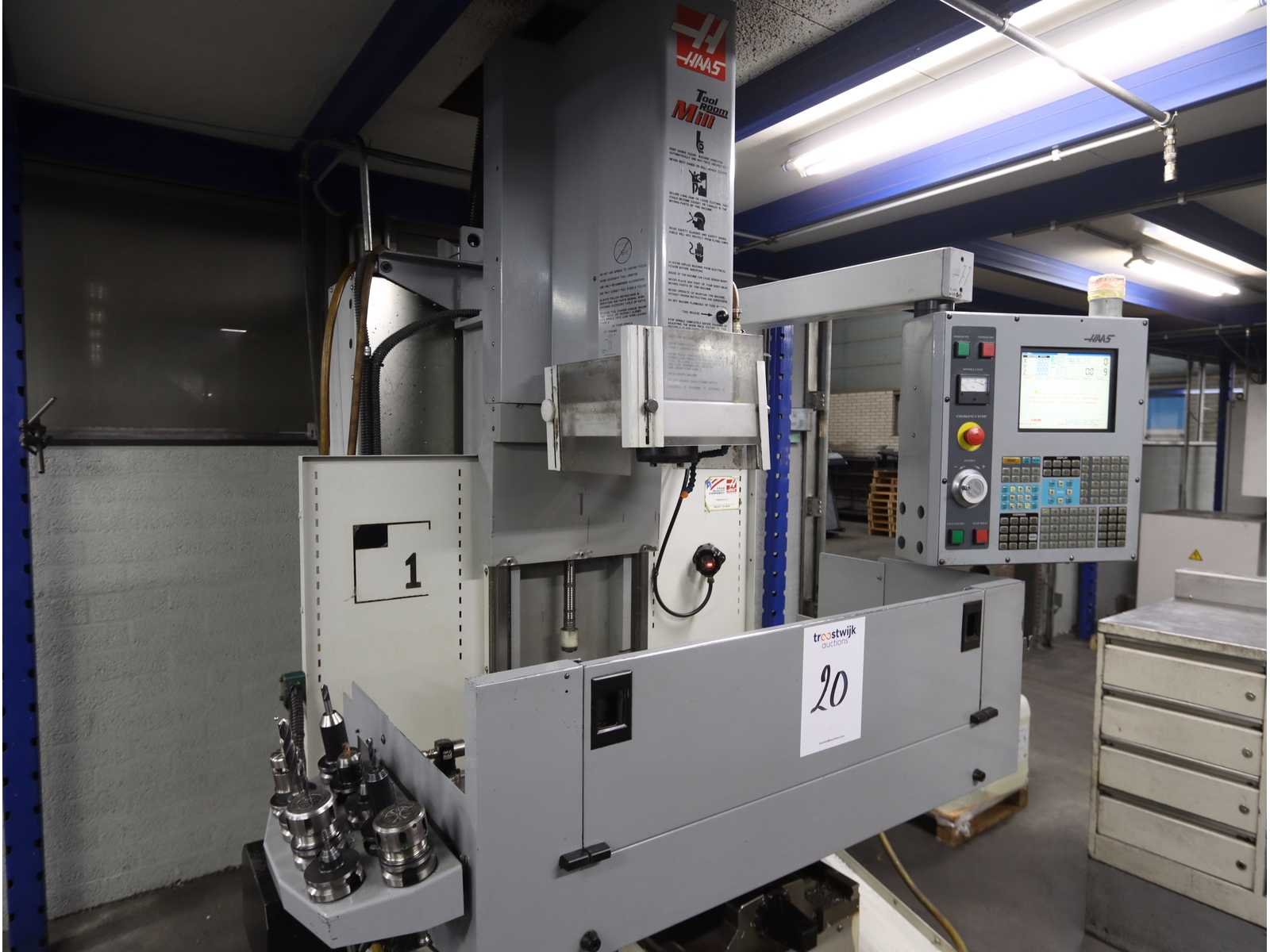V.v. “HAAS” CNC besturingspaneel Merk: Haas Type: TM-1HE Bouwjaar: 2005 Serienummer: 44666 Verplaatsing x-as: 762mm Verplaatsing y-as: 305mm Verplaatsing z-as: 254mm Opname: BT40 Snelheid tot n =: 4000rpm T-gleuf opspantafelafmeting L: 1050mm T-gleuf opspantafelafmeting B: 260mm Werkstuk gewicht max.: 206kg CNC-besturing, merk, type: Haas Motorvermogen (kW): 5.6kW Aansluiting: 400V Afmeting l: 1350mm Afmeting b: 1500mm Afmeting h: 2400mm