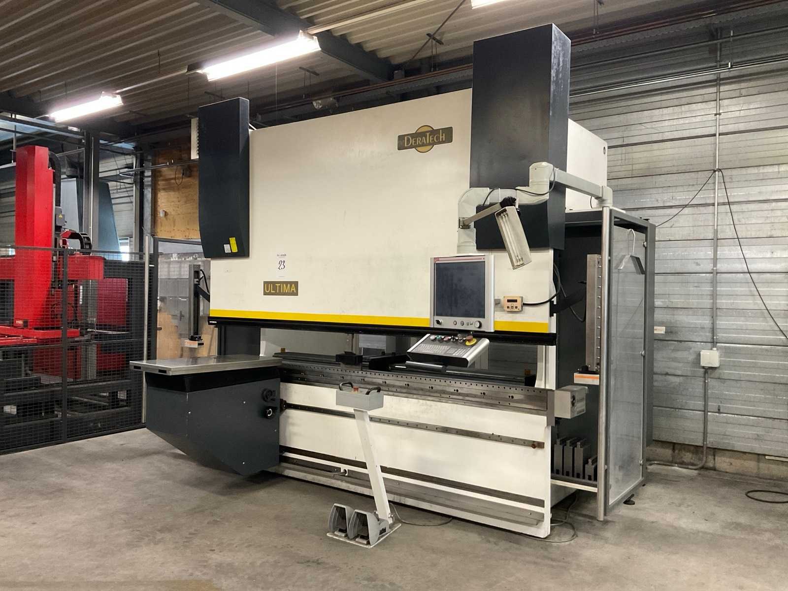 Afstand tussen frame: 2700mm, uitlading: 410mm, v.v. Wila new standard Pro Crowning system, Laserbeveiliging, Merk: DeraTech Type: Ultima UBM 100/3200 Bouwjaar: 2018 Capaciteit.: 100t Werklengte: 3200mm Aantal assen: 6 Voetbediening: true Achteraanslag elektrisch: true Achteraanslag bereik: 750mm CNC-besturing, merk, type: ESA; type S 560 Touch Aansluiting: 400V Afmeting l: 4200mm Afmeting b: 2300mm Afmeting h: 3150mm